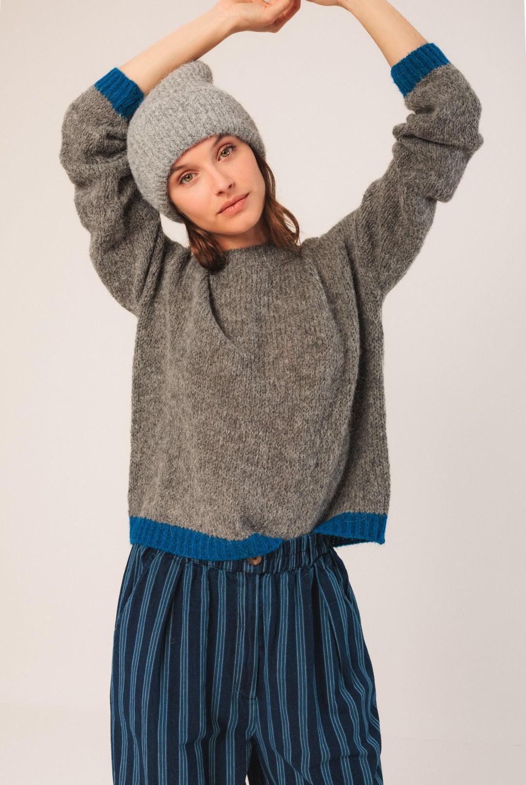 This sweater actually fits, BIG surprise, and I love it. Whoever designed it knew their stuff—it hangs perfectly, not too long for me, and the color is a warm grey with a beautiful textured weave in the body of the garment. It’s a forever classic in every way, and I’m so grateful it spoke to me. Thanks, Ex Voto.