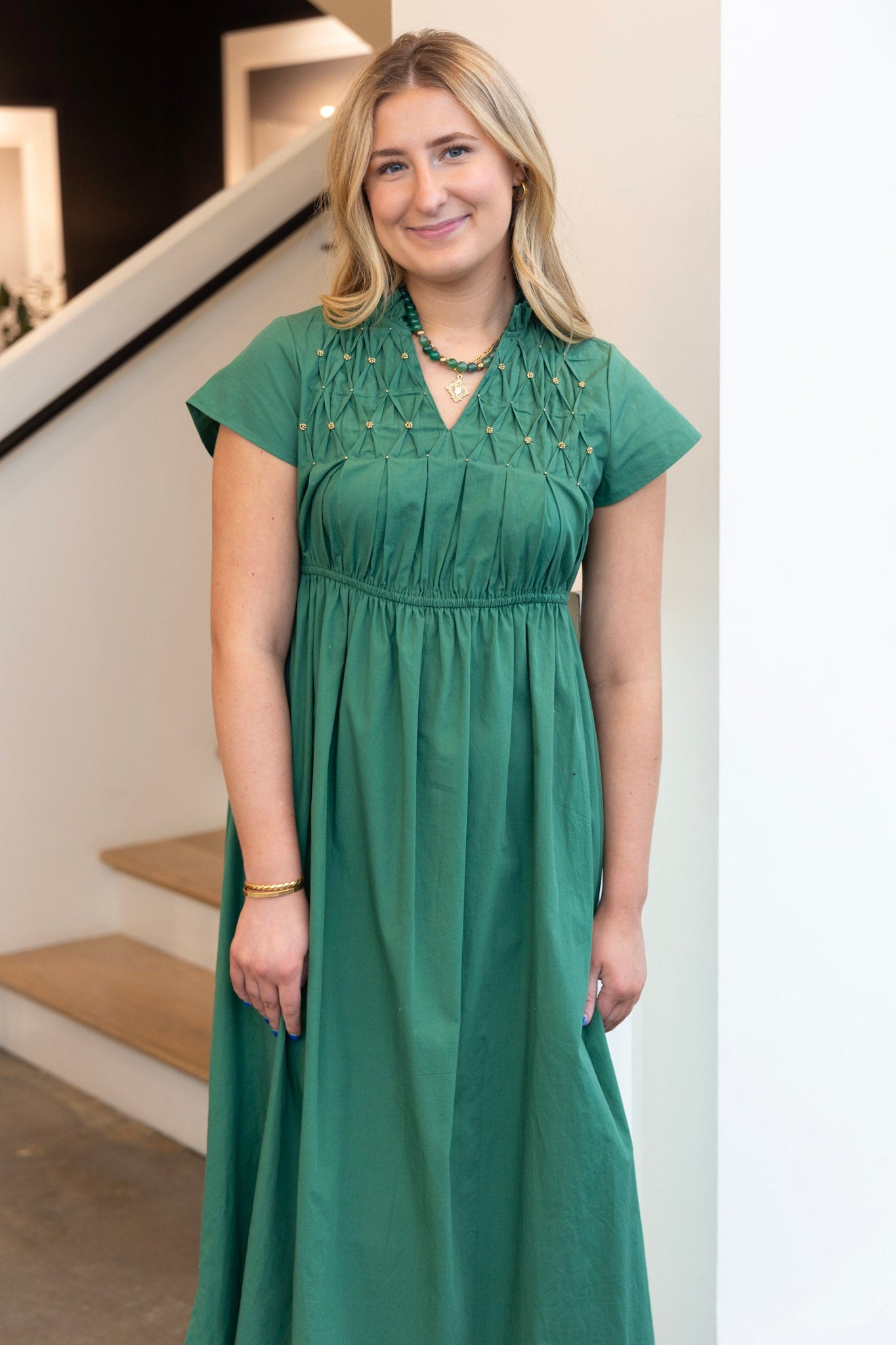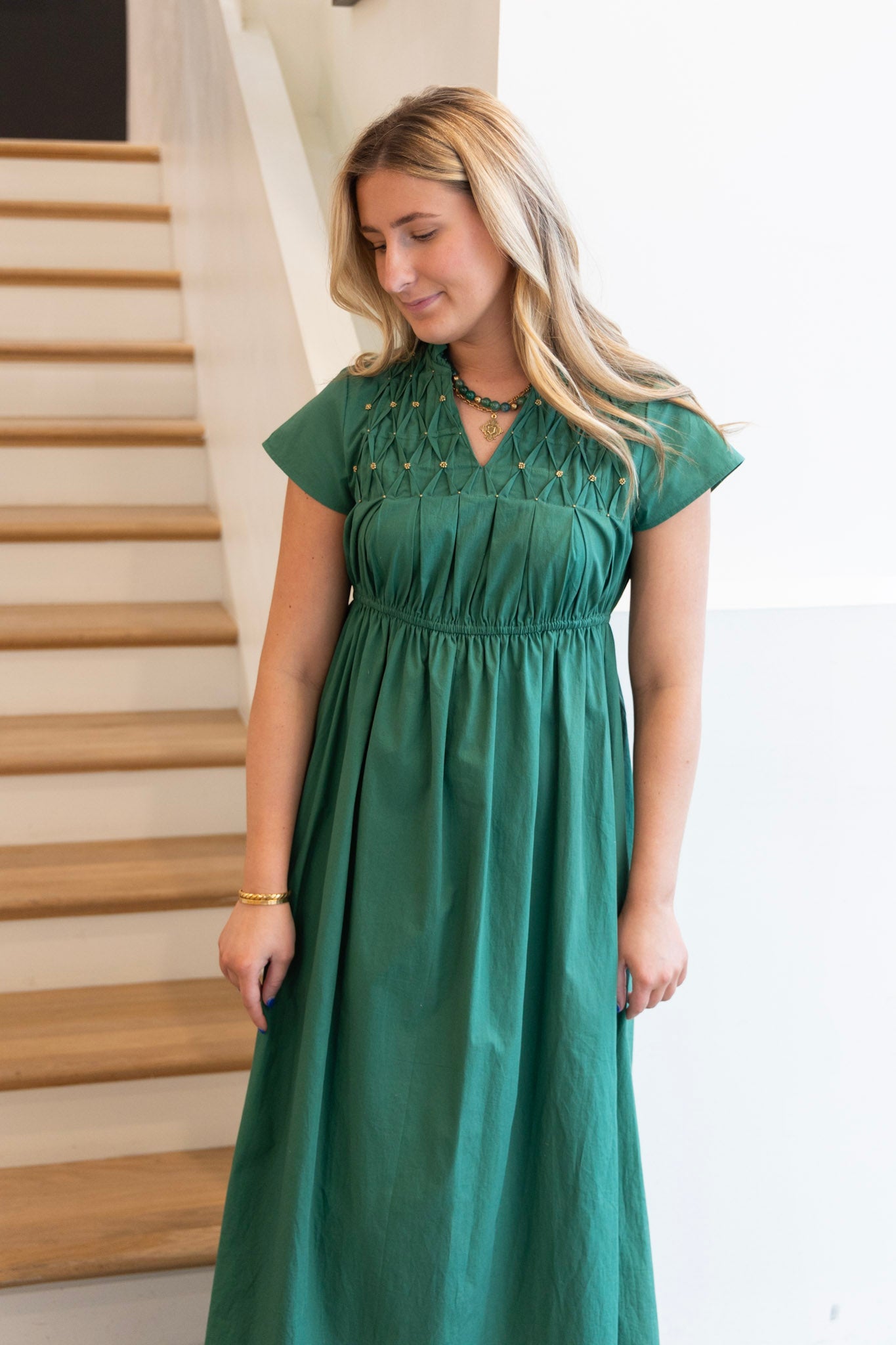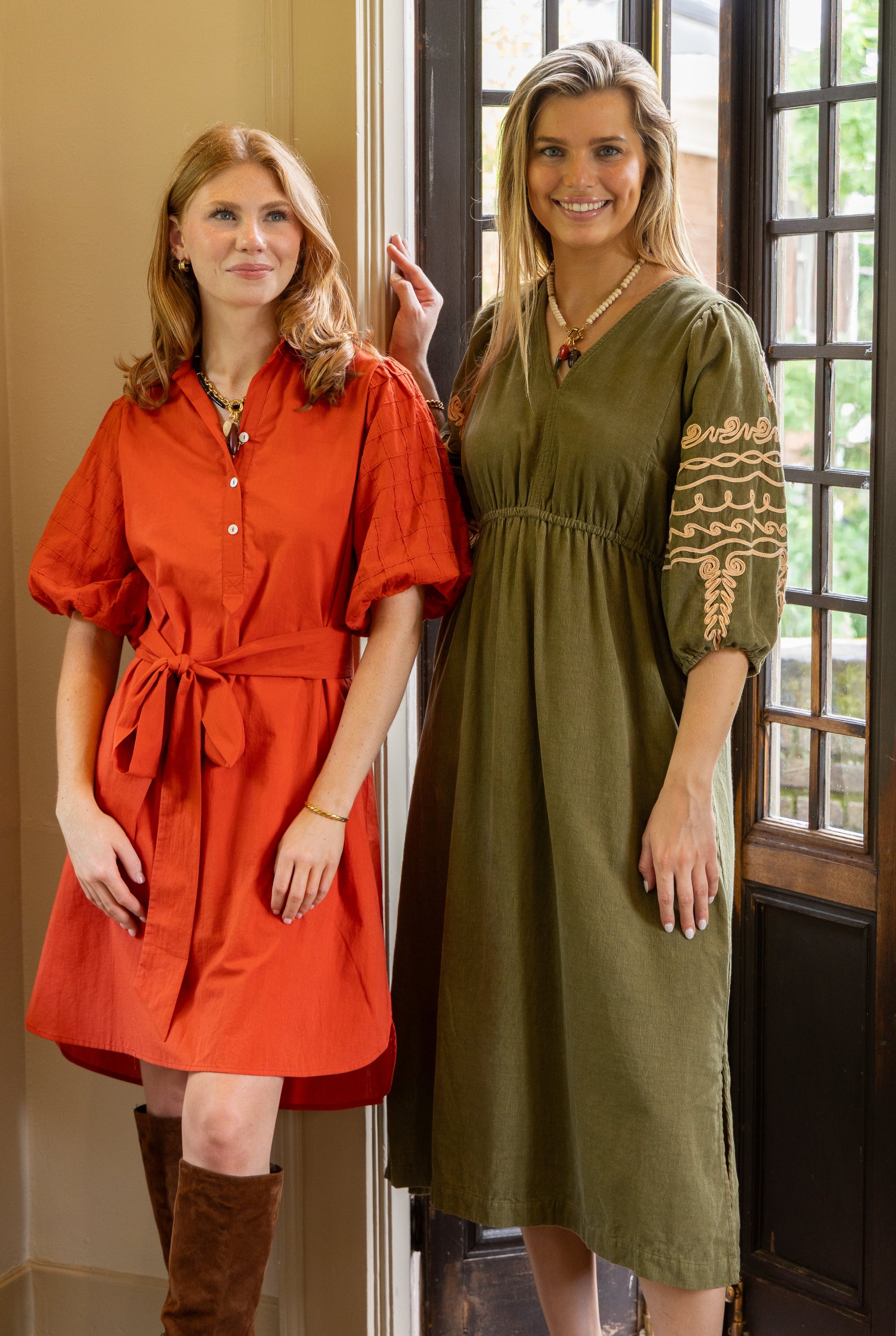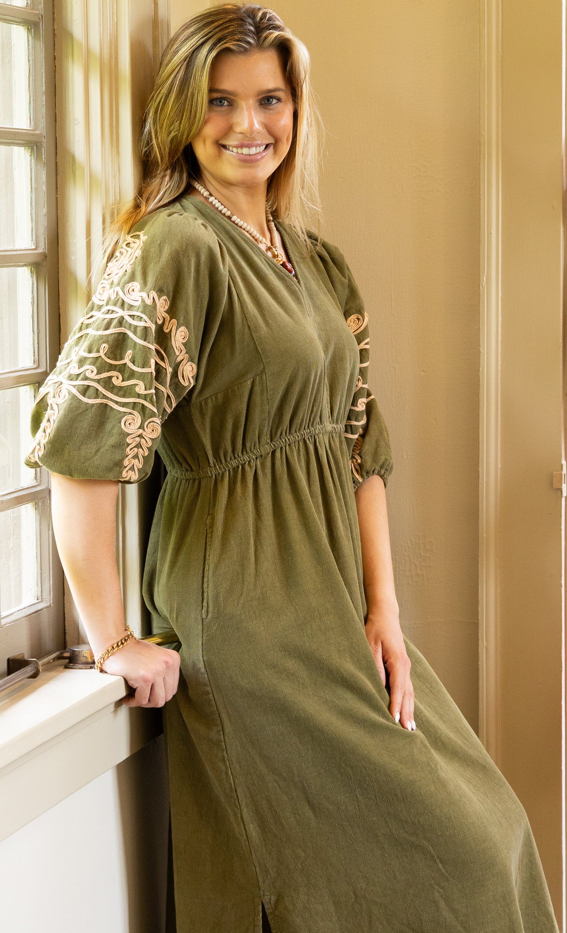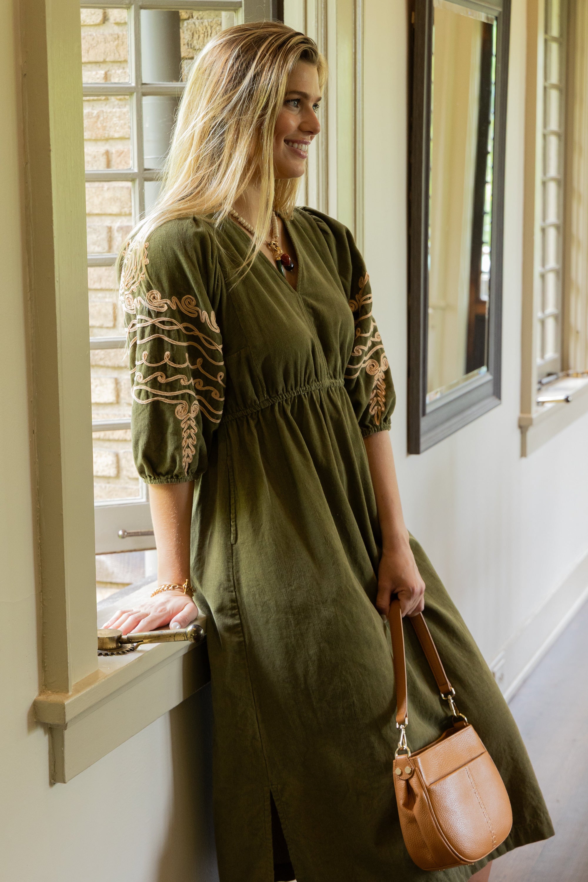 Phoebe Midi Dress in Moss Corduroy by ExVoto