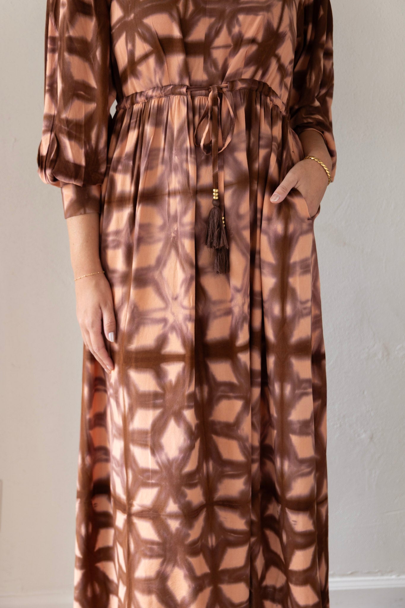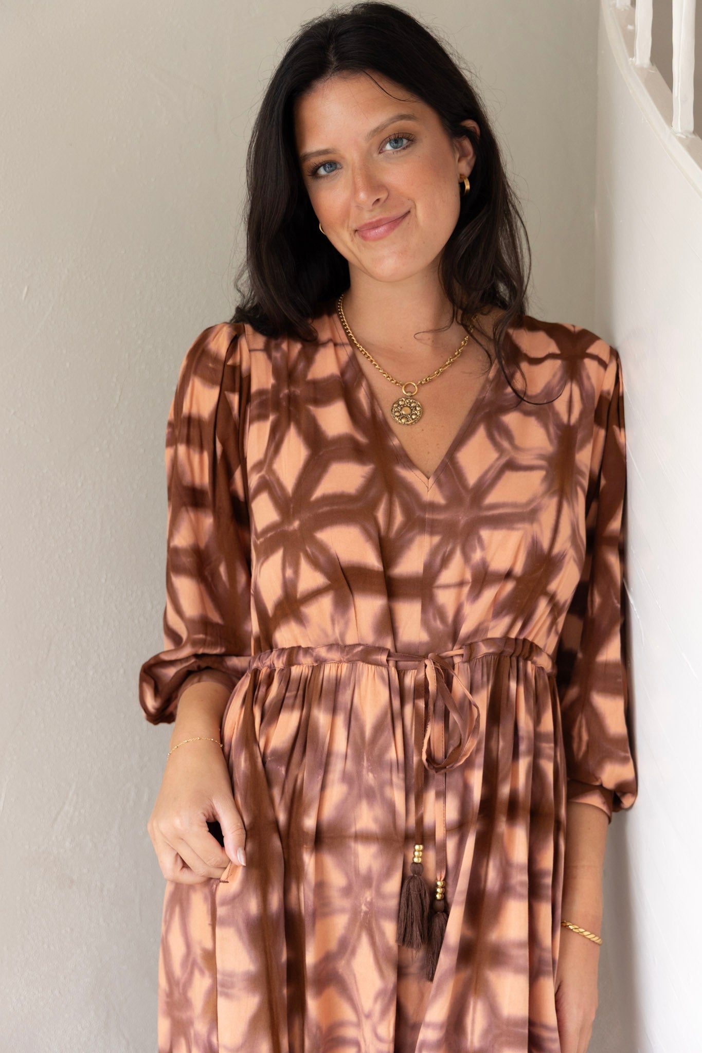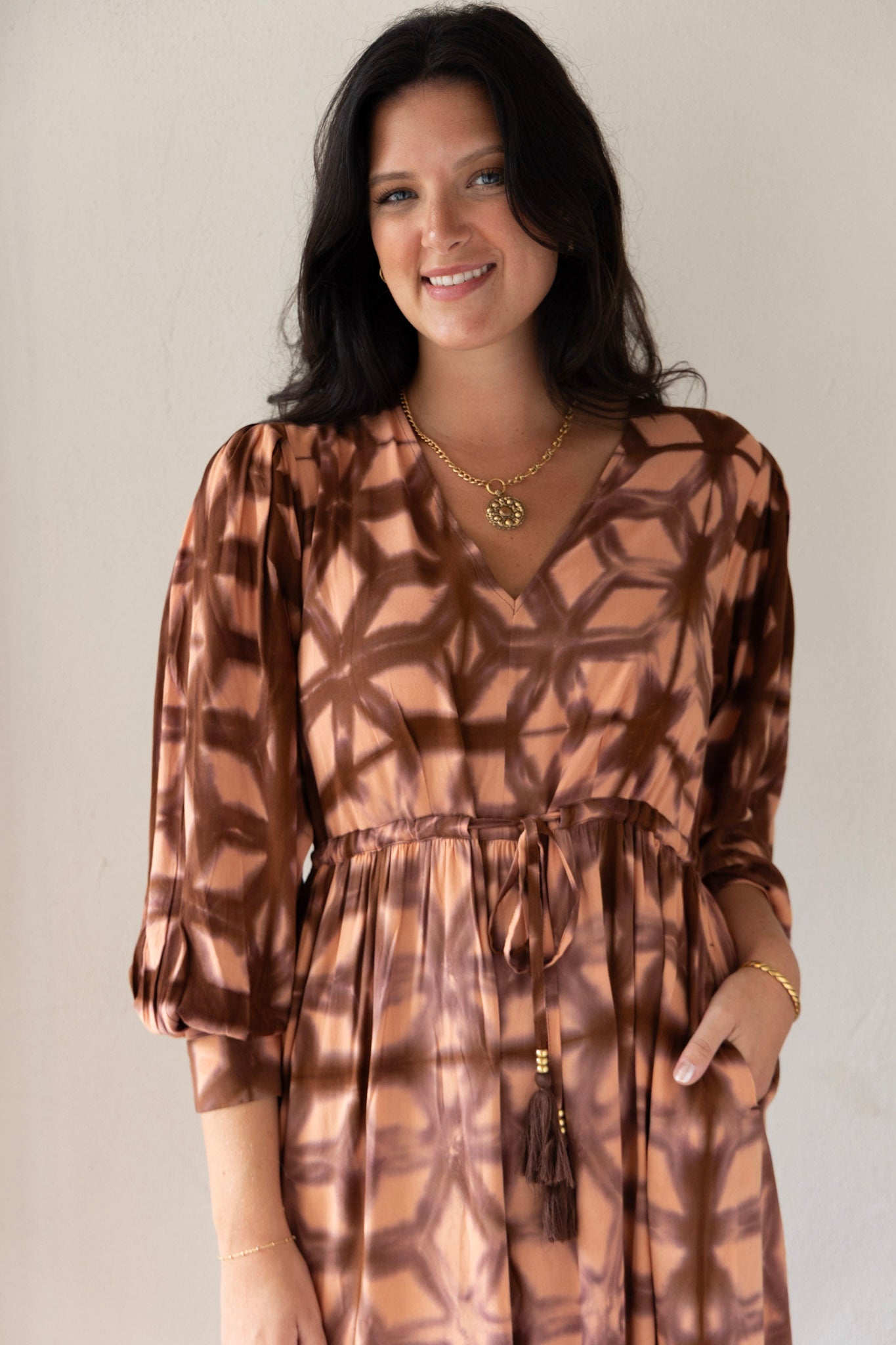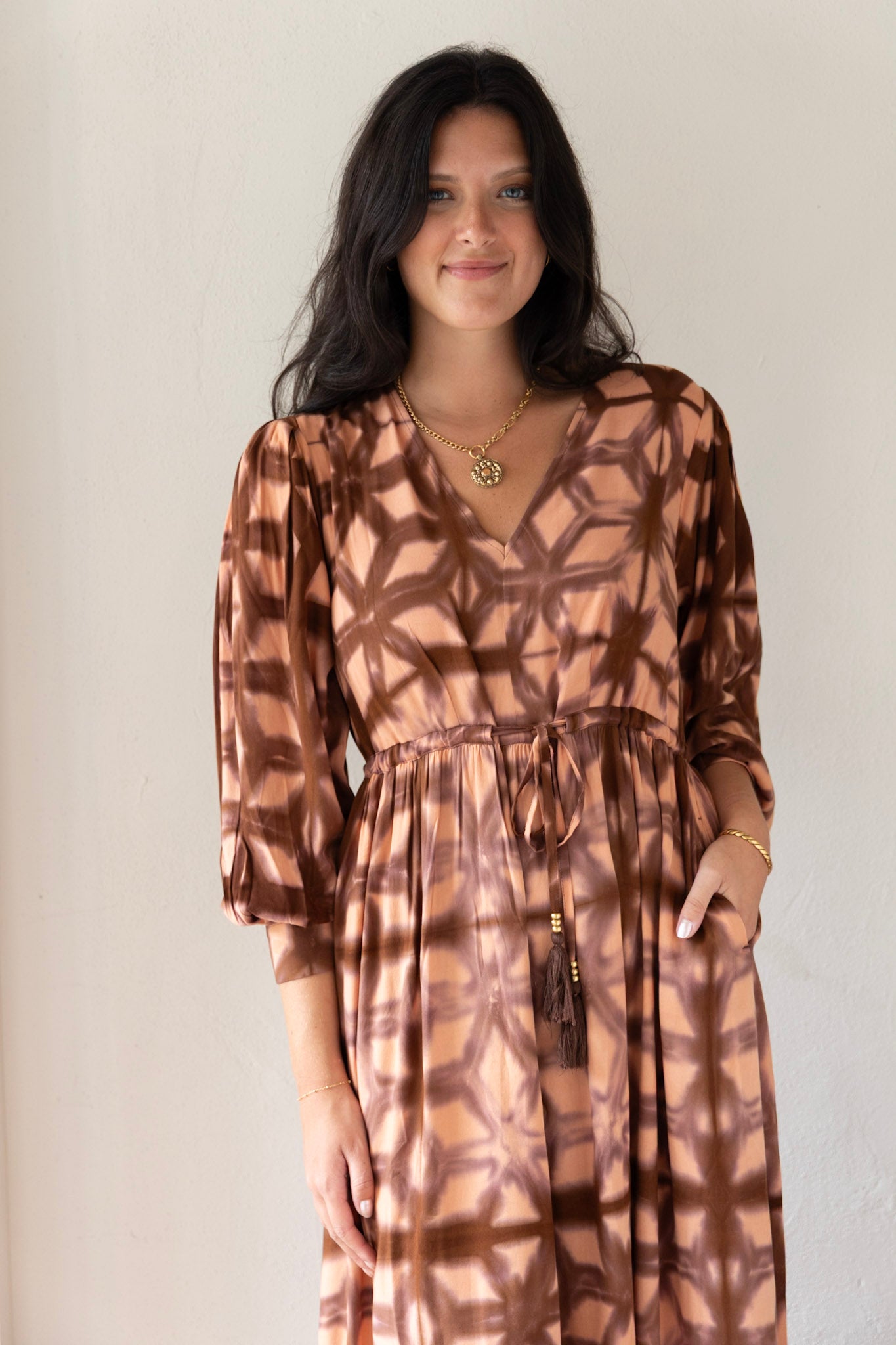 Ari Midi Dress in Cocoa Tie Dye by ExVoto