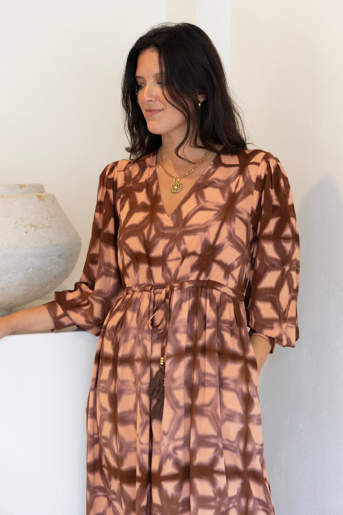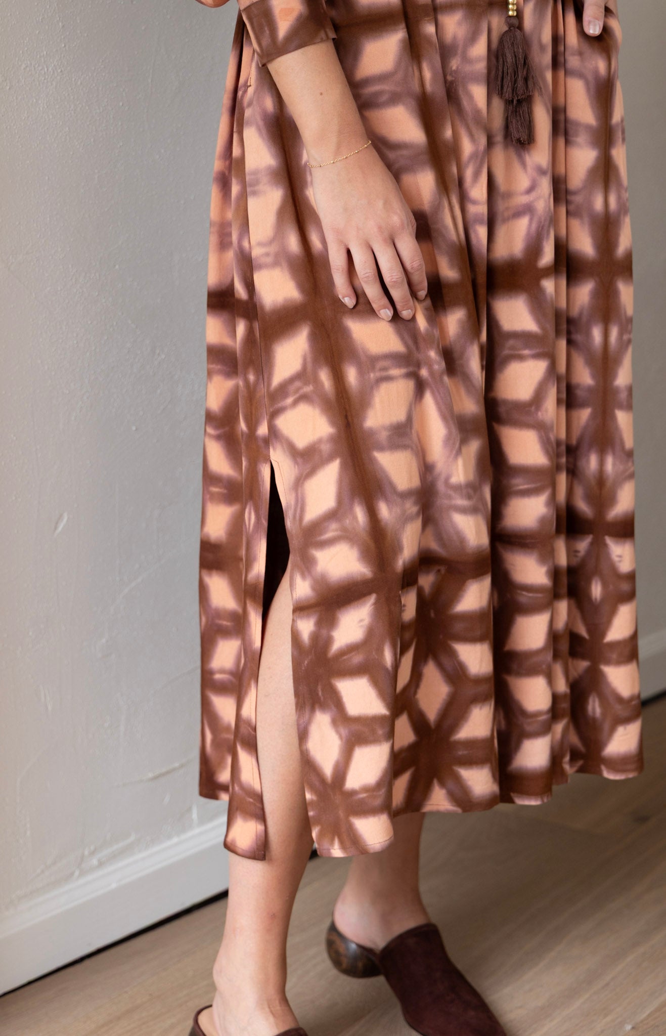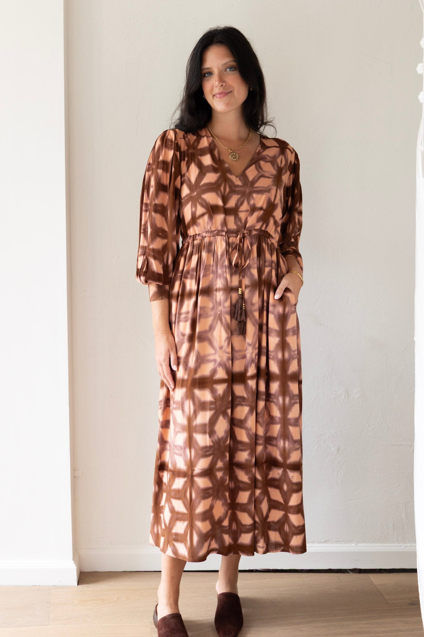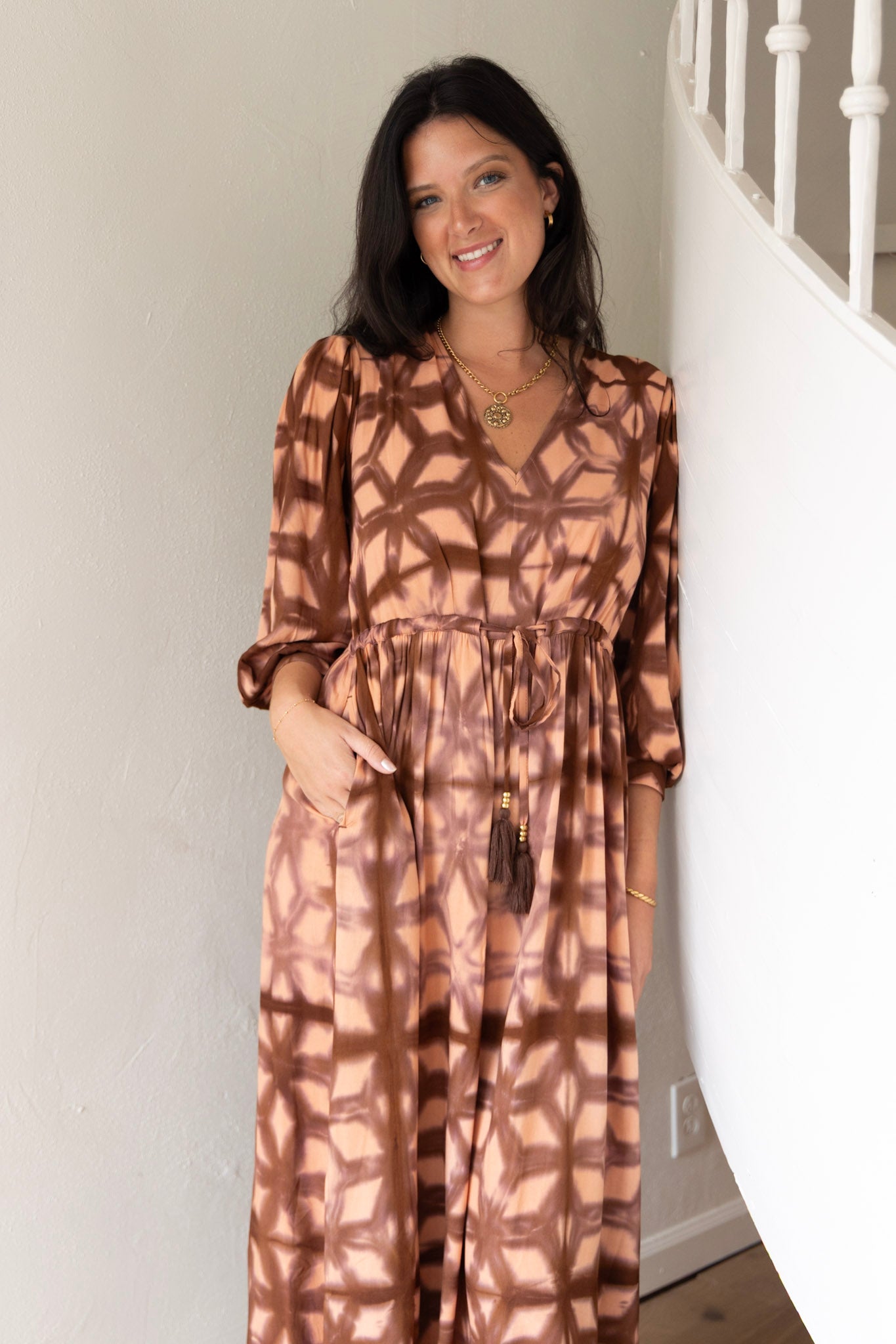 Ari Midi Dress in Cocoa Tie Dye by ExVoto