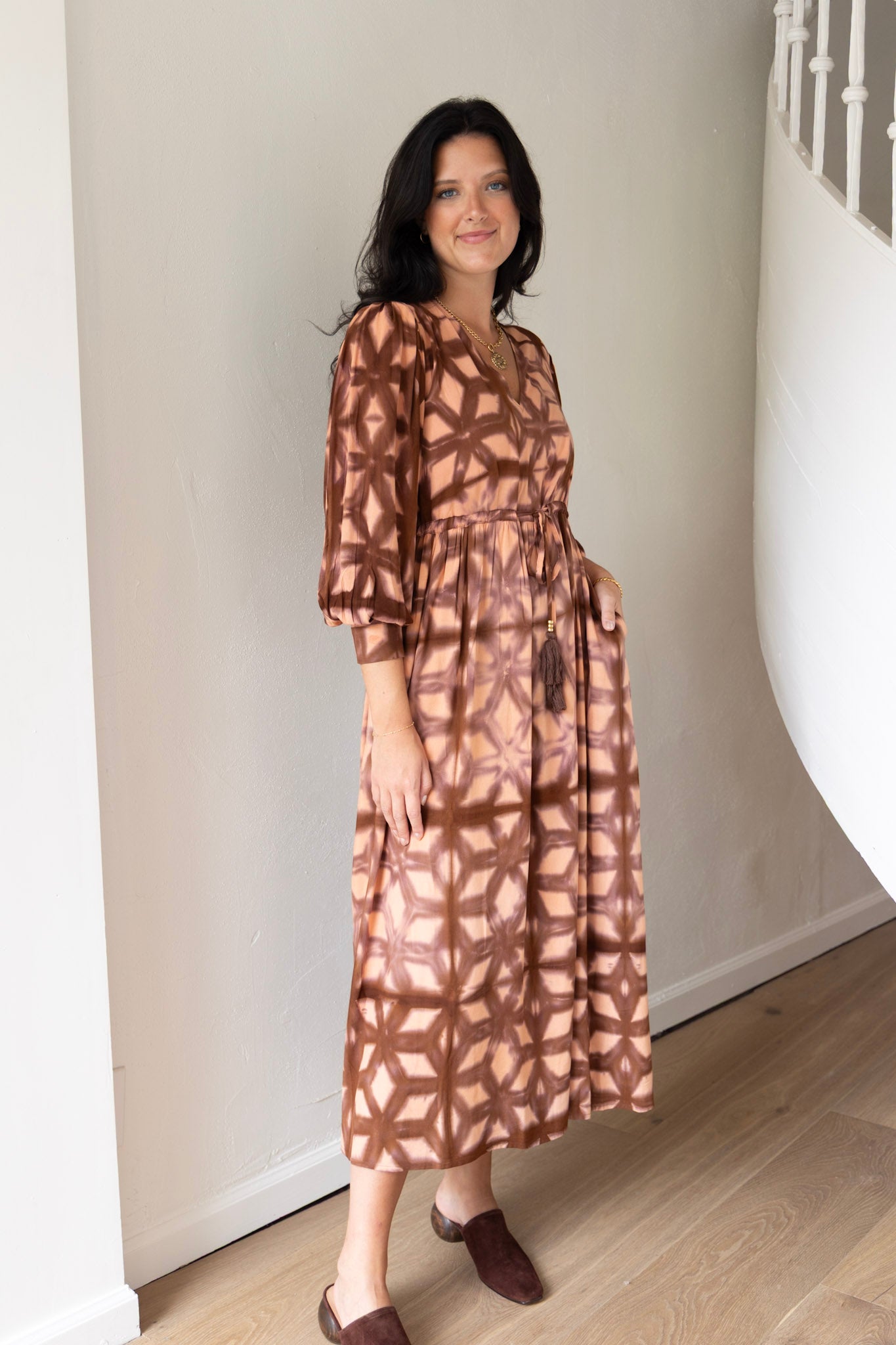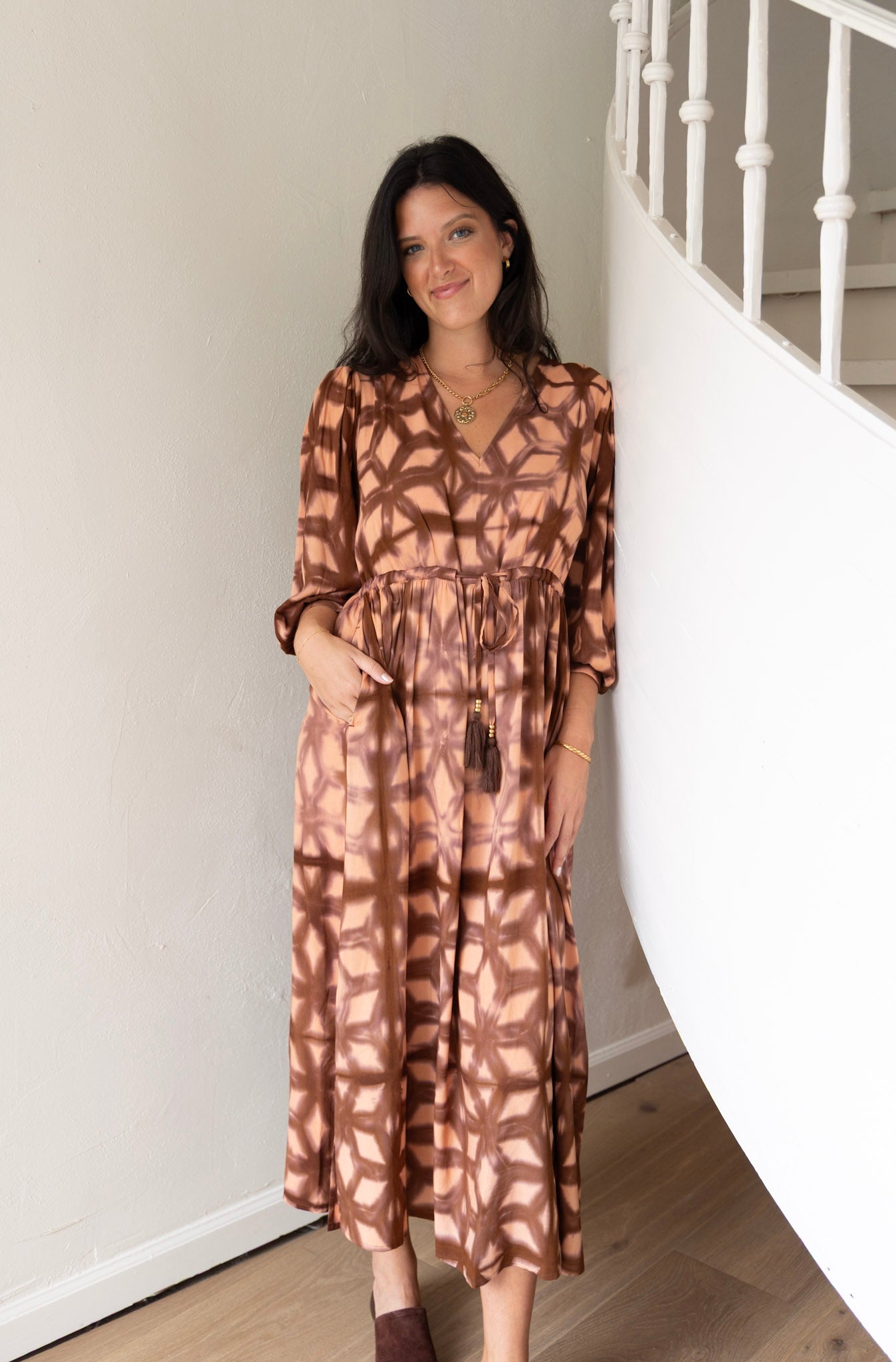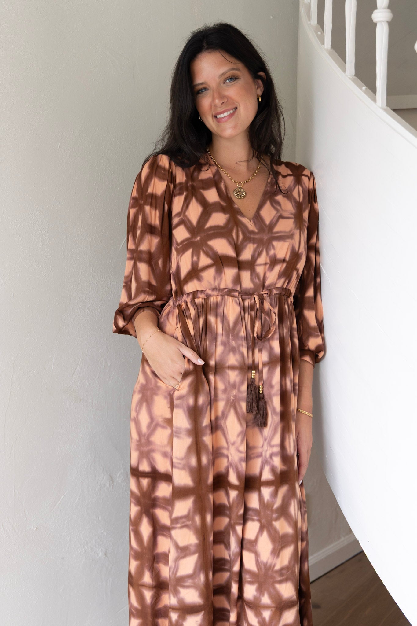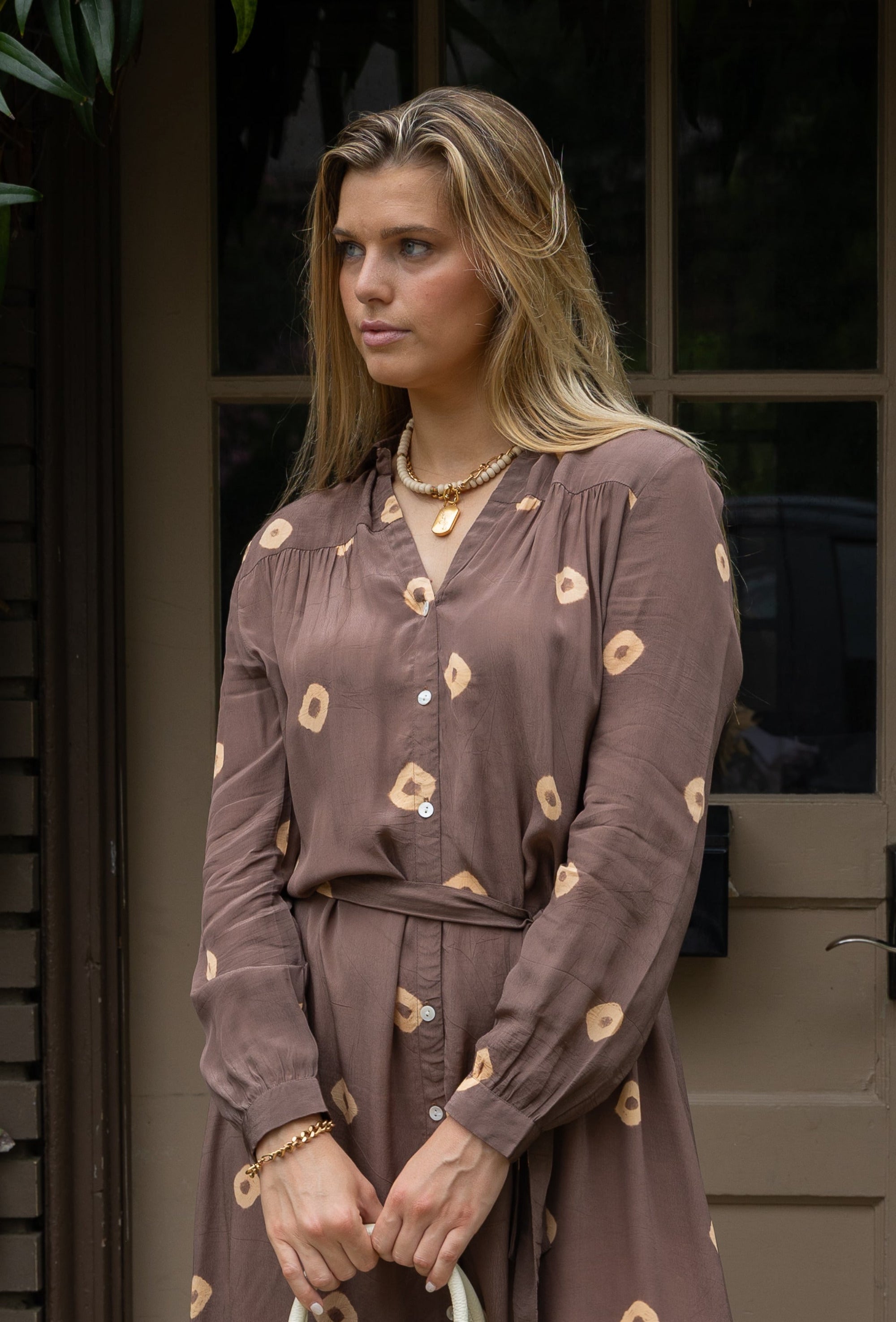 Ari Midi Dress in Cocoa Tie Dye by ExVoto