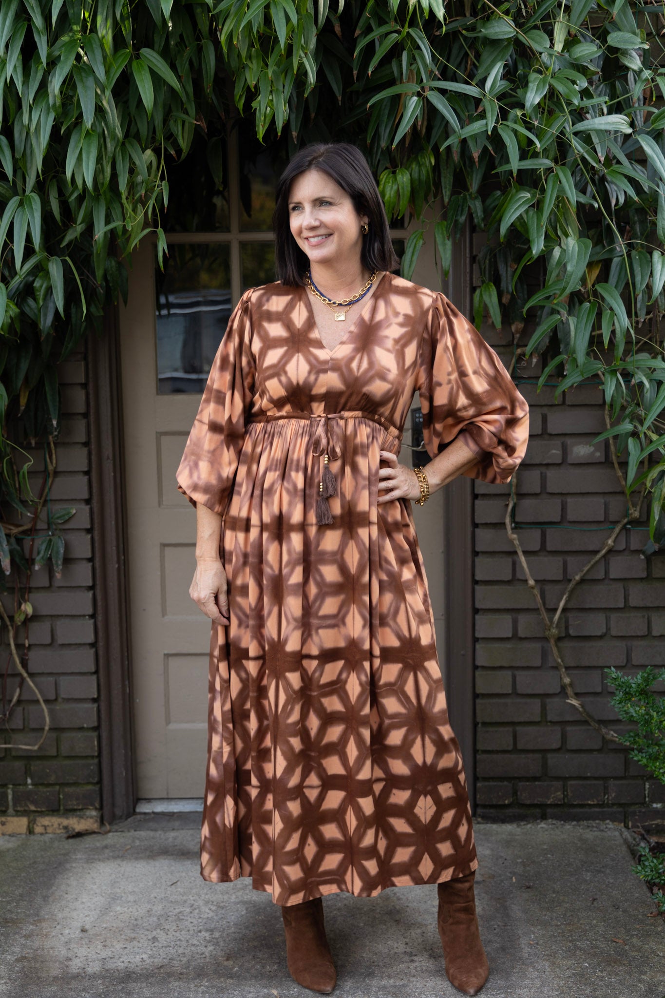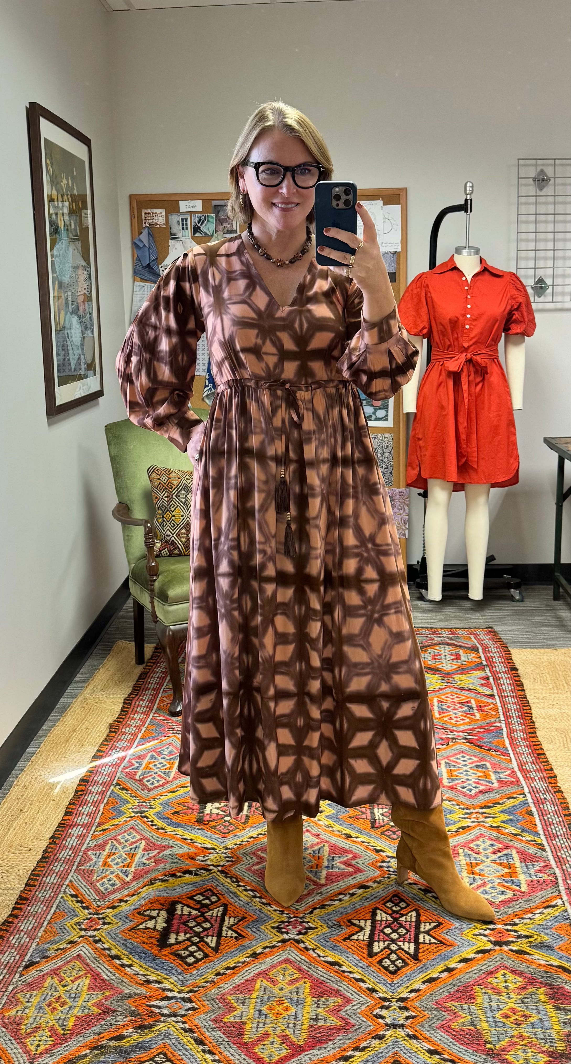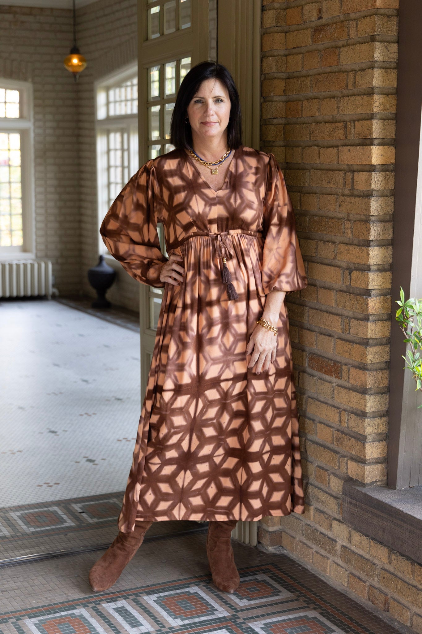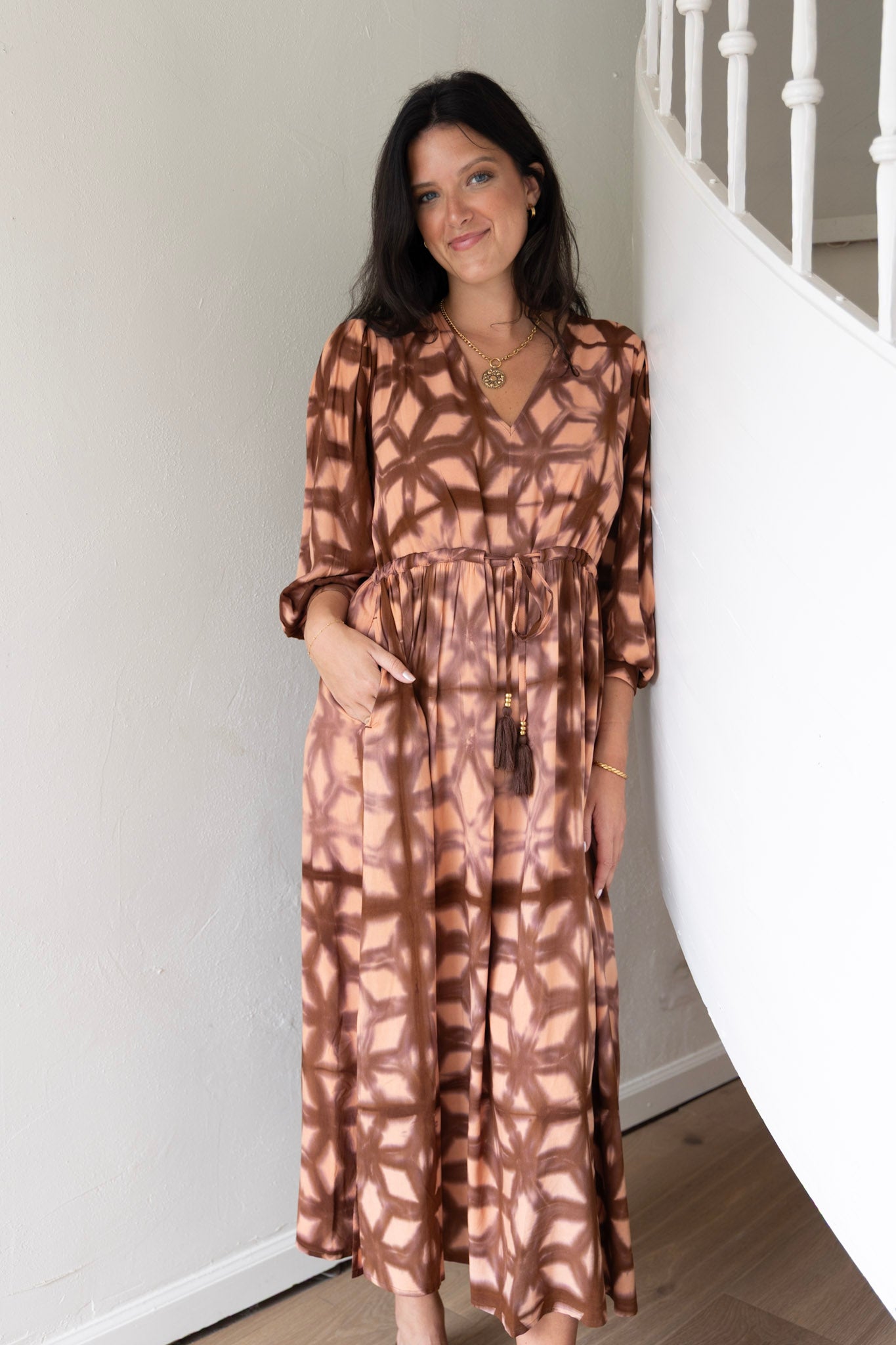 Ari Midi Dress in Cocoa Tie Dye by ExVoto