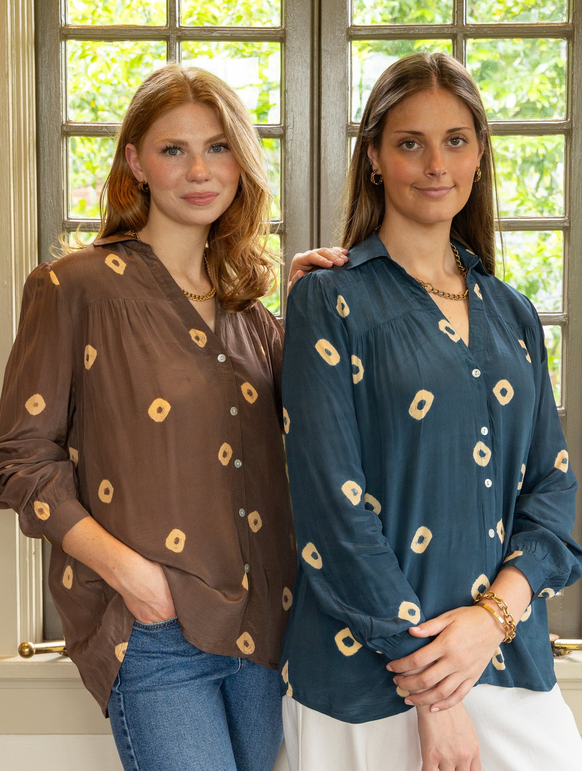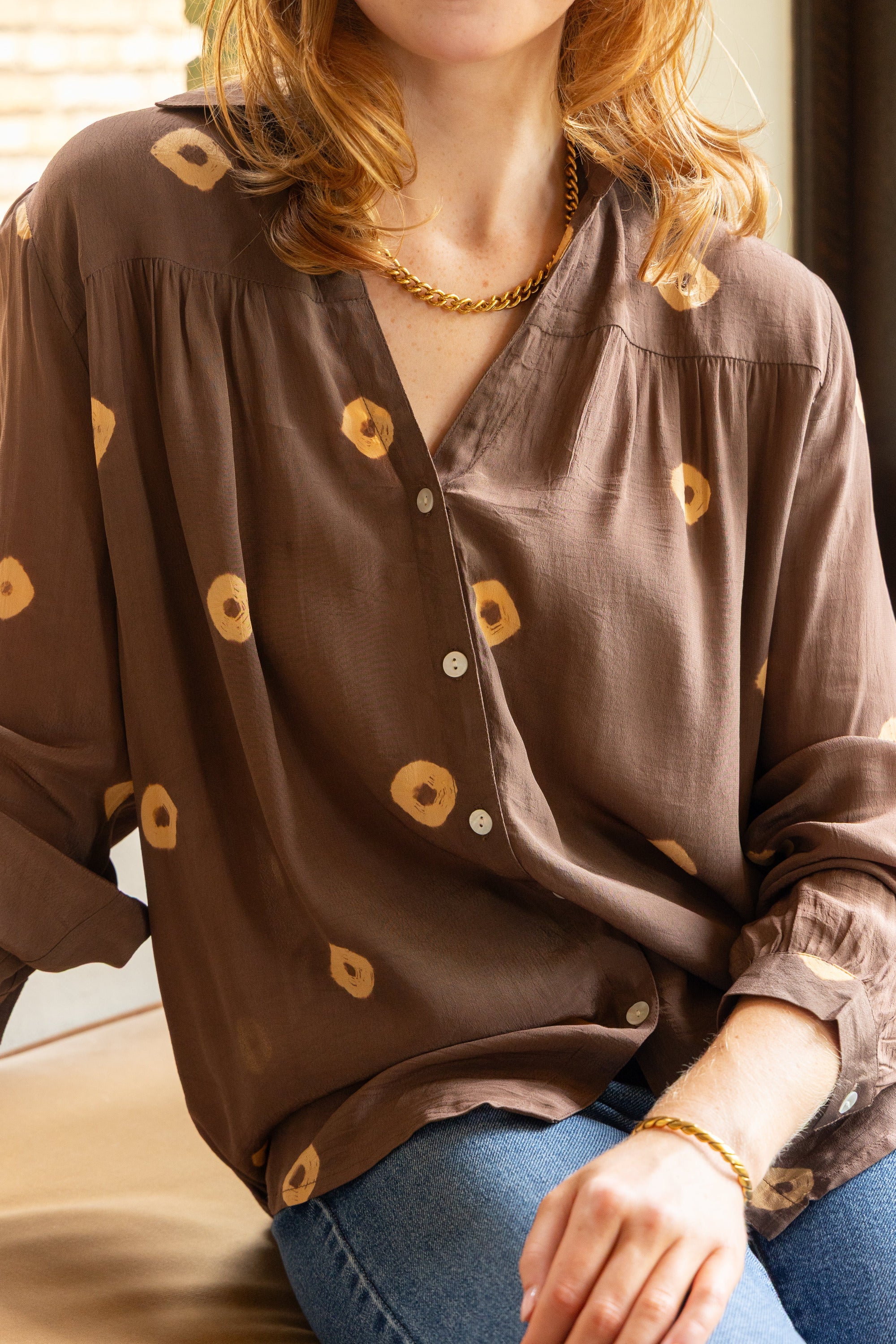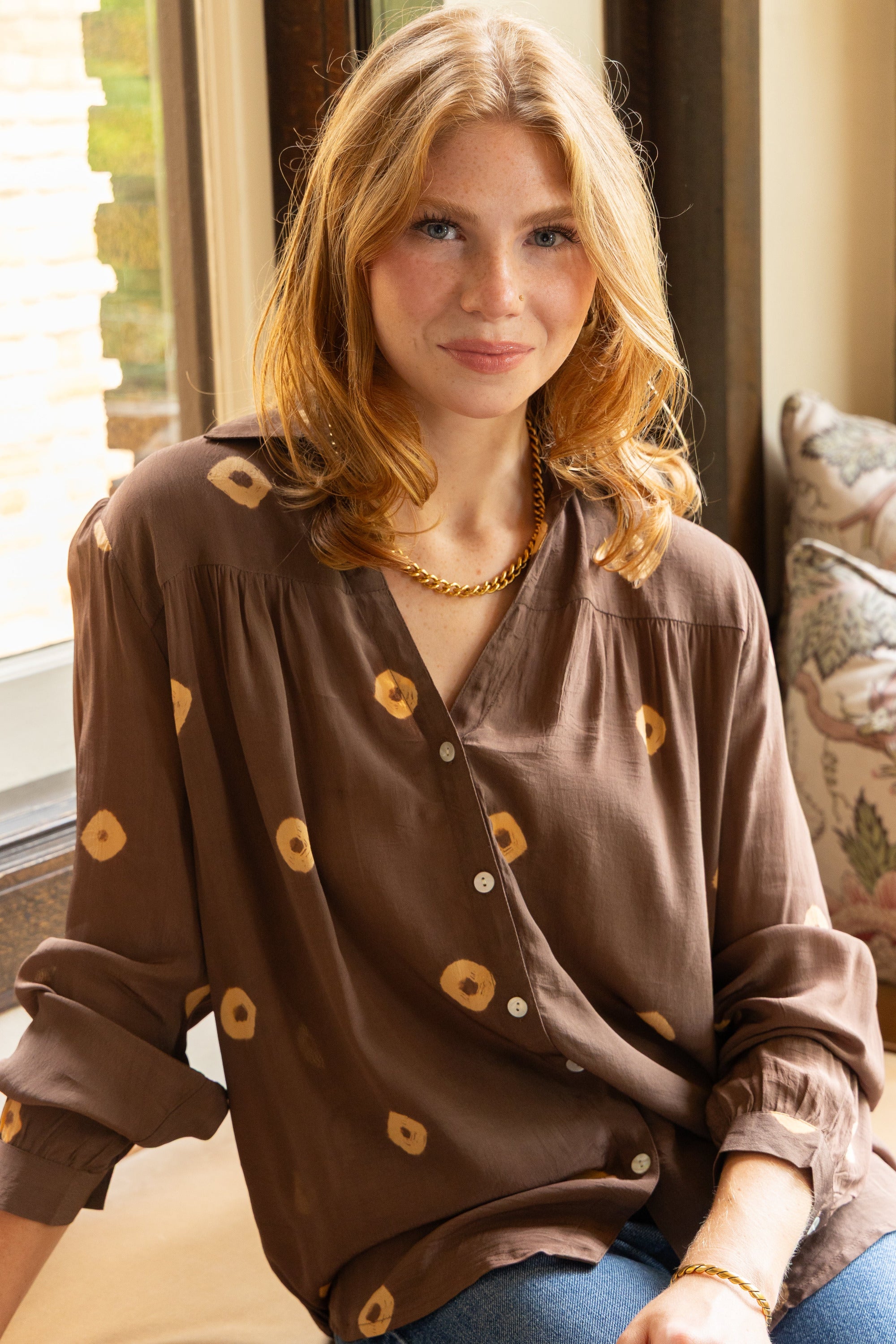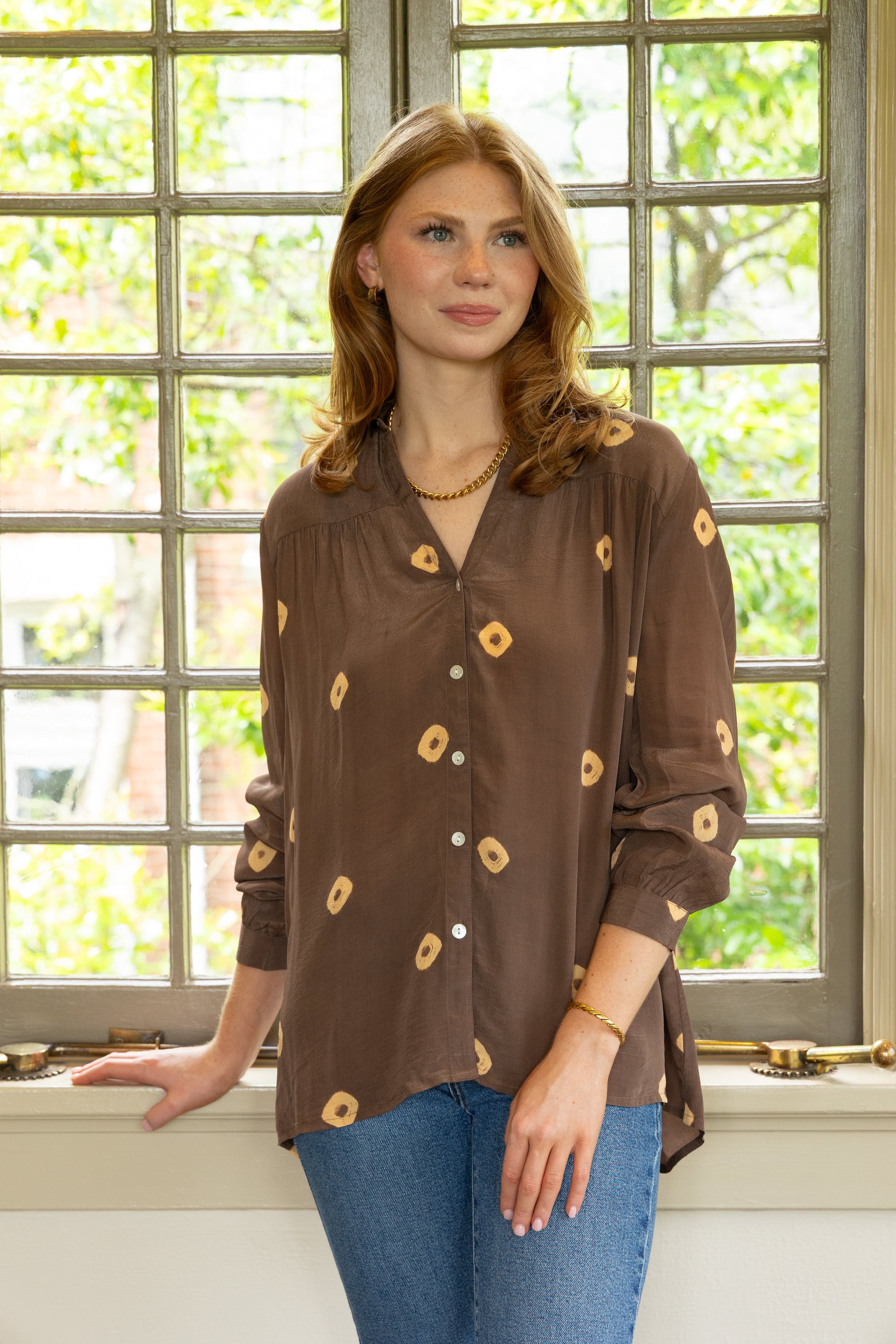 Lizzie Blouse in Chocolate Blockprint by ExVoto