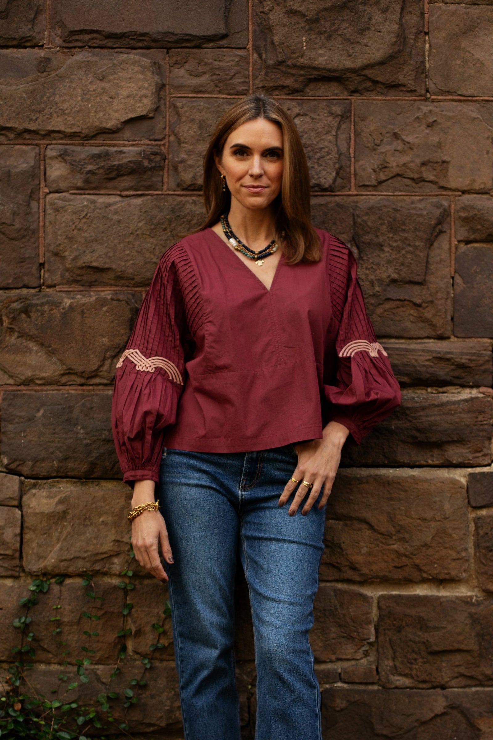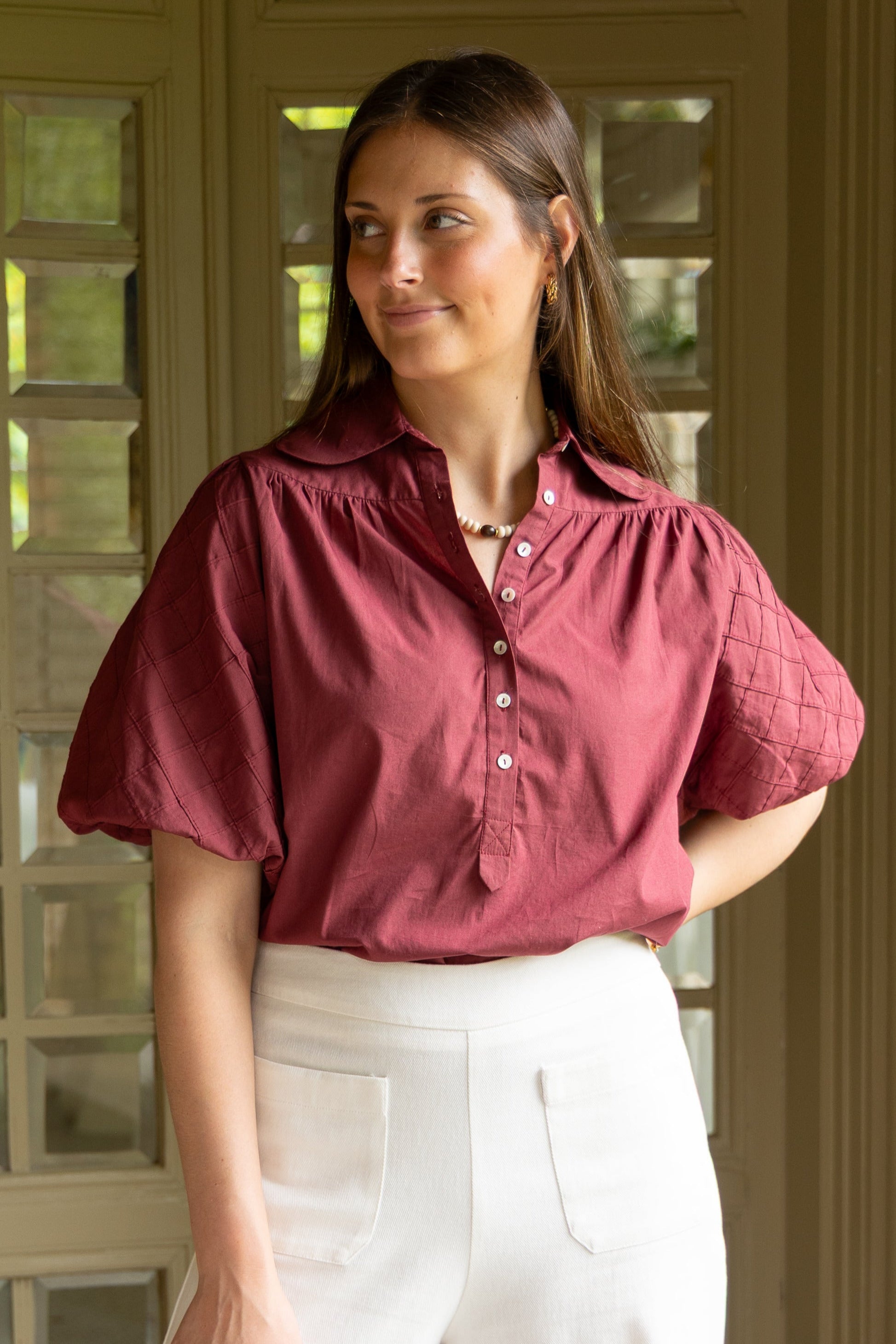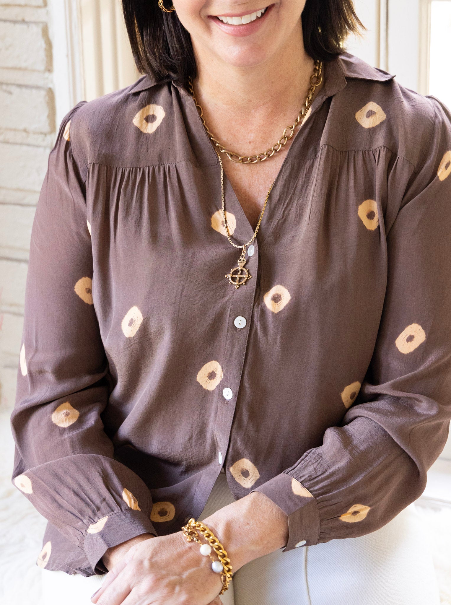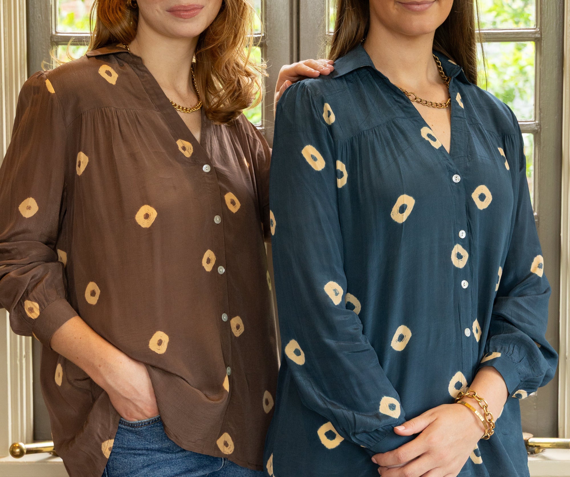Lizzie Blouse in Chocolate Blockprint by ExVoto