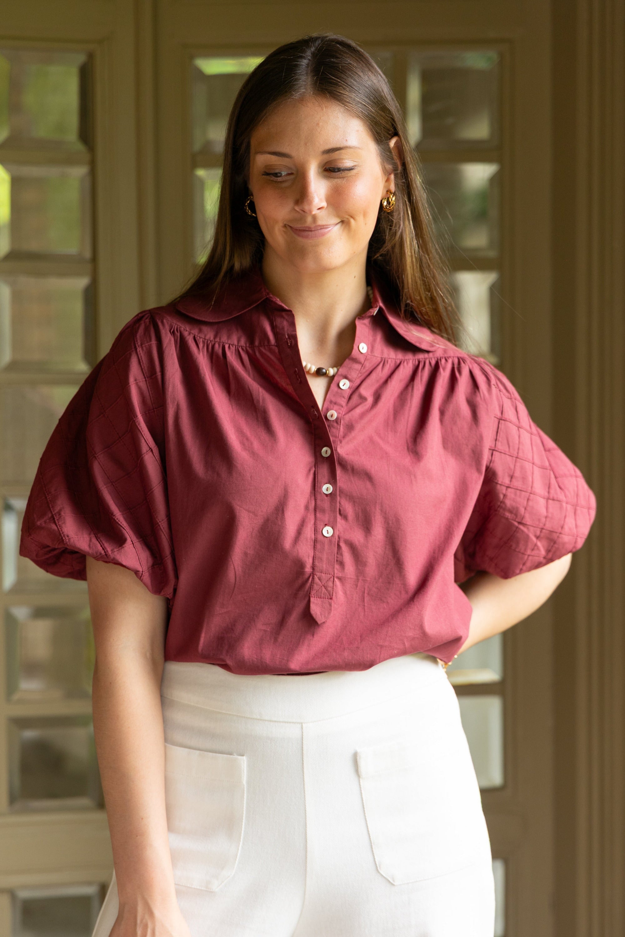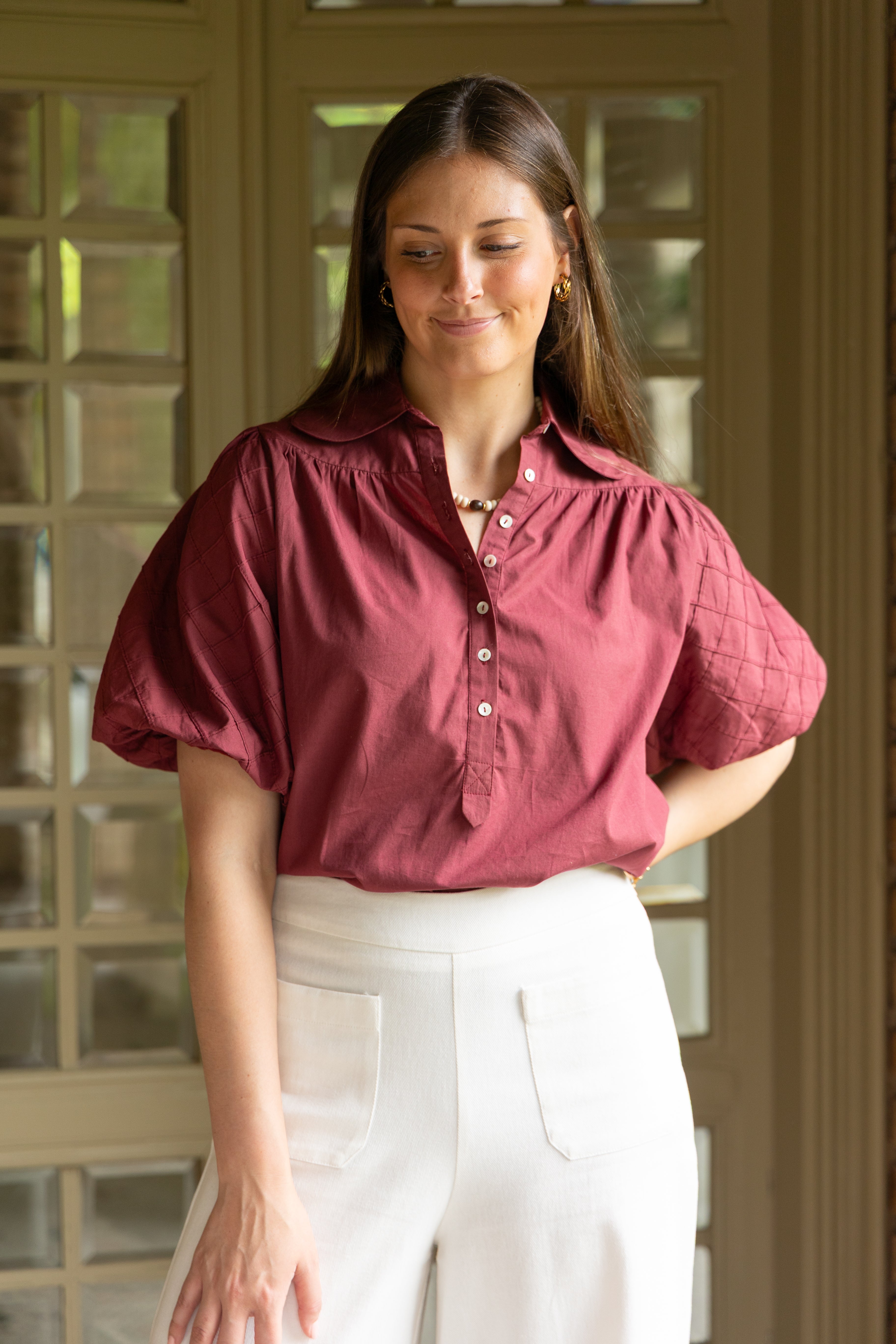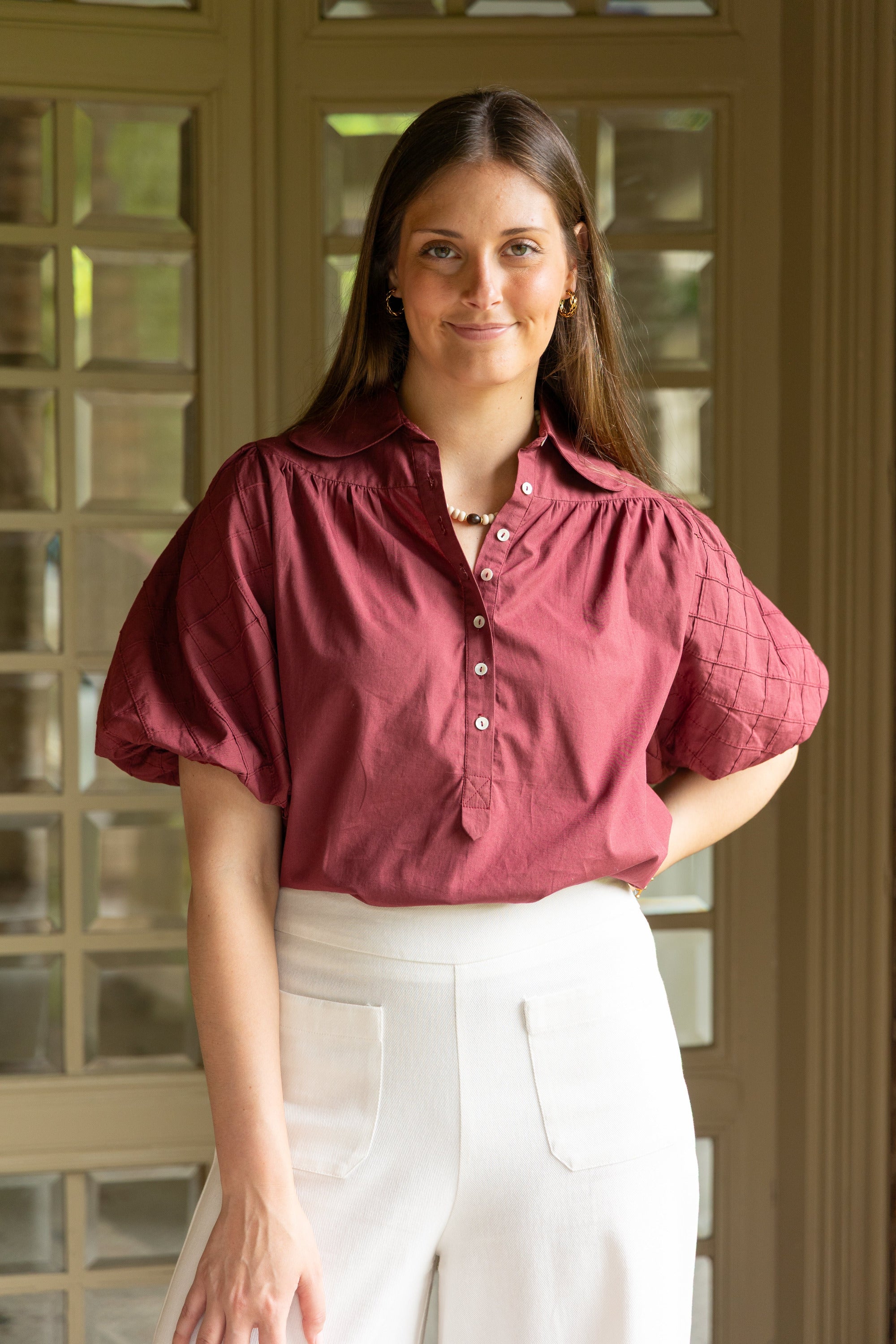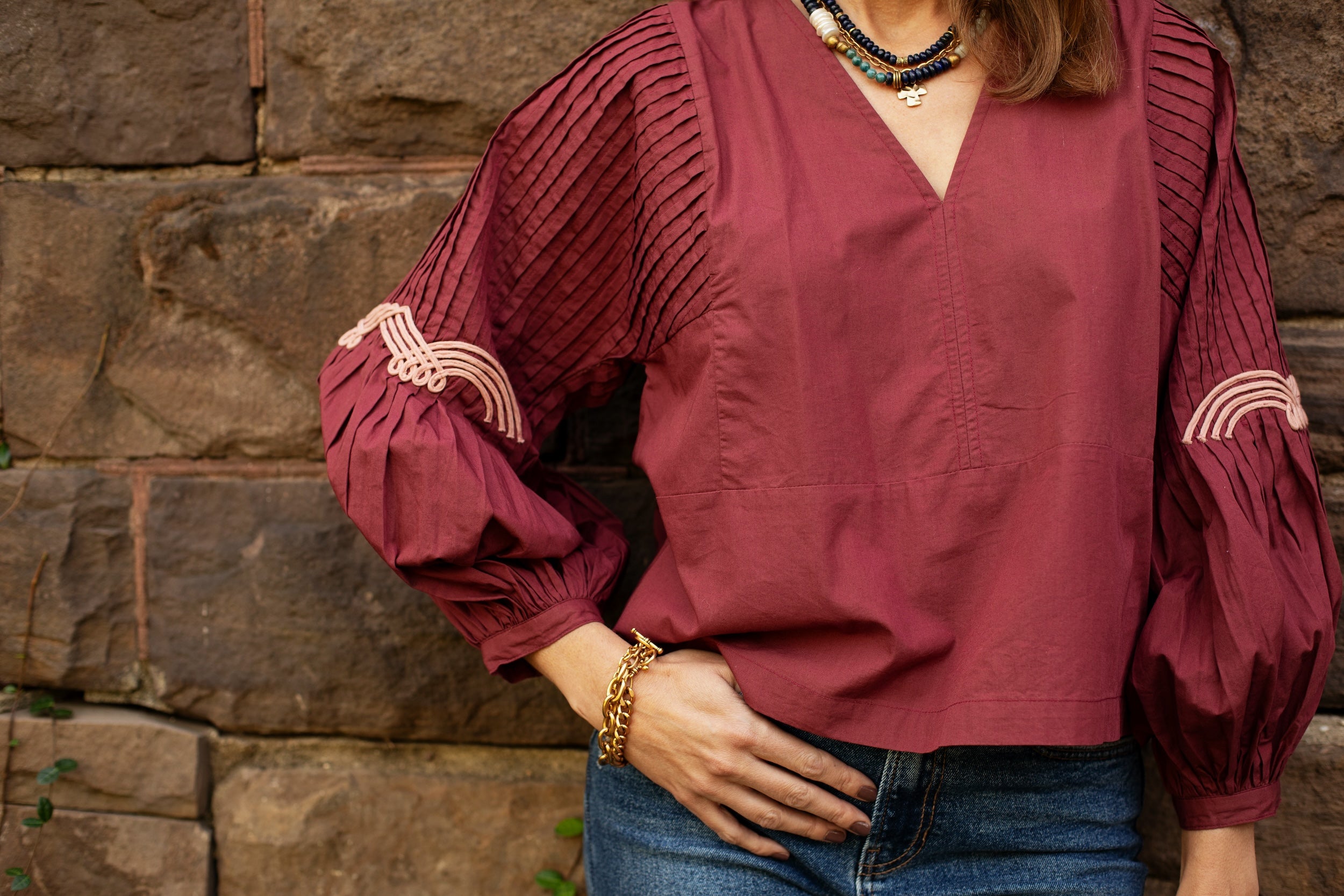 Lizzie Blouse in Chocolate Blockprint by ExVoto