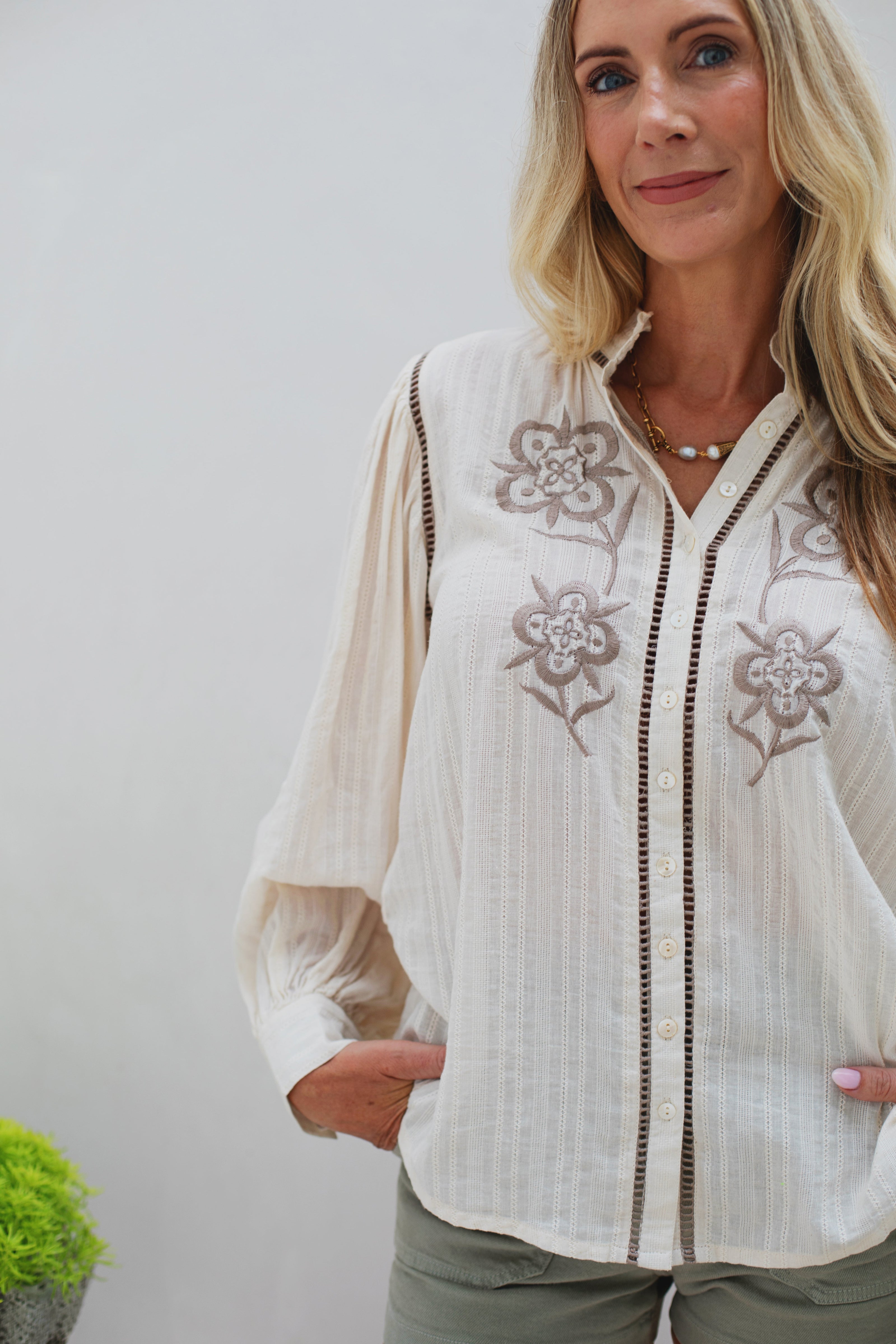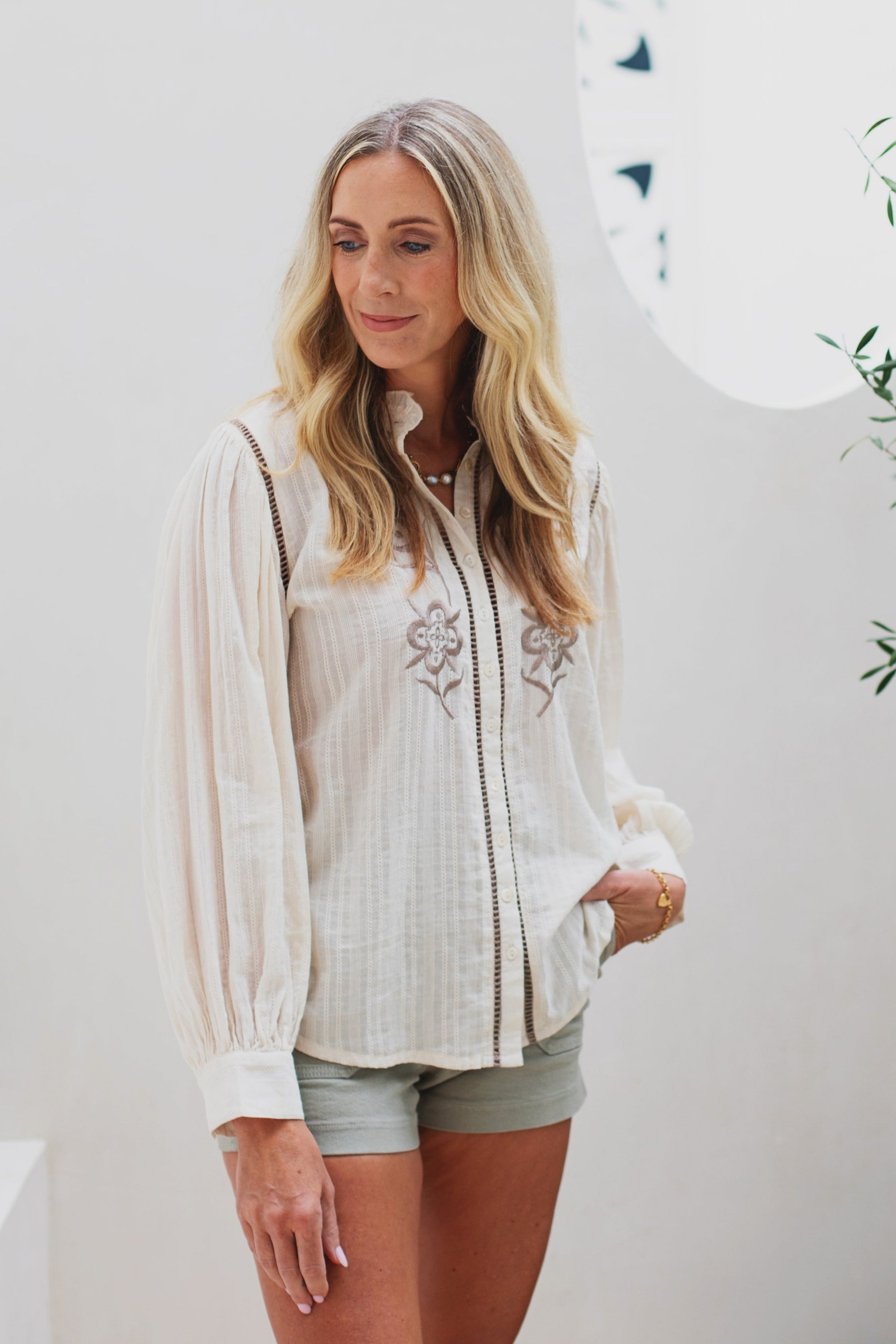 Harlow Embroidered Blouse in Ivory by ExVoto