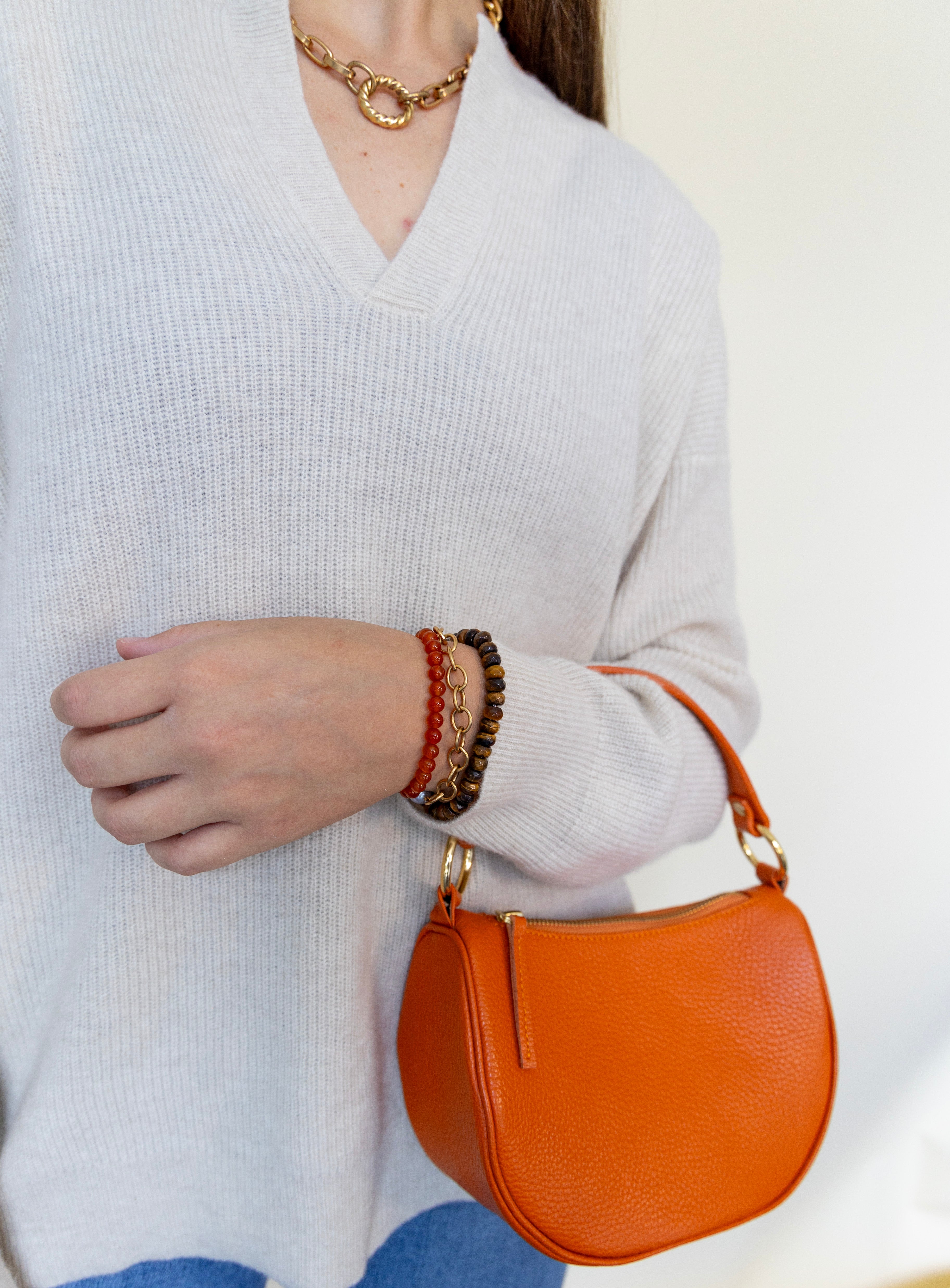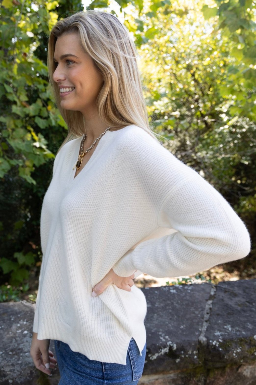 Lottie V-Notch Pullover Sweater in Pink by ExVoto