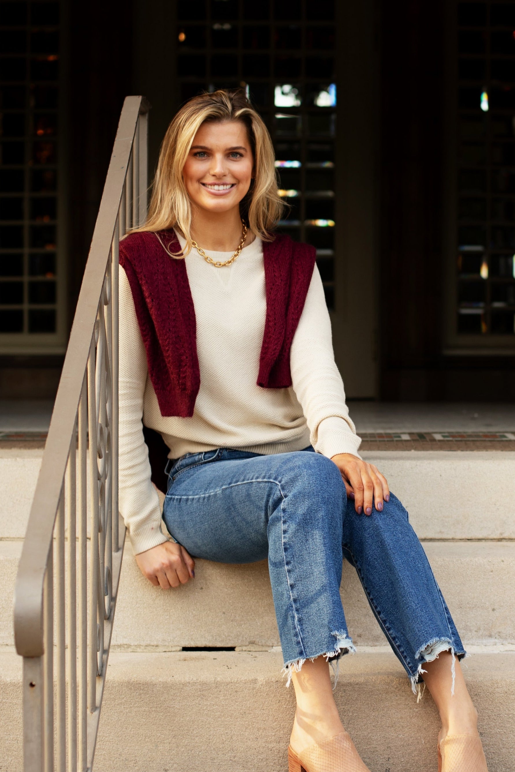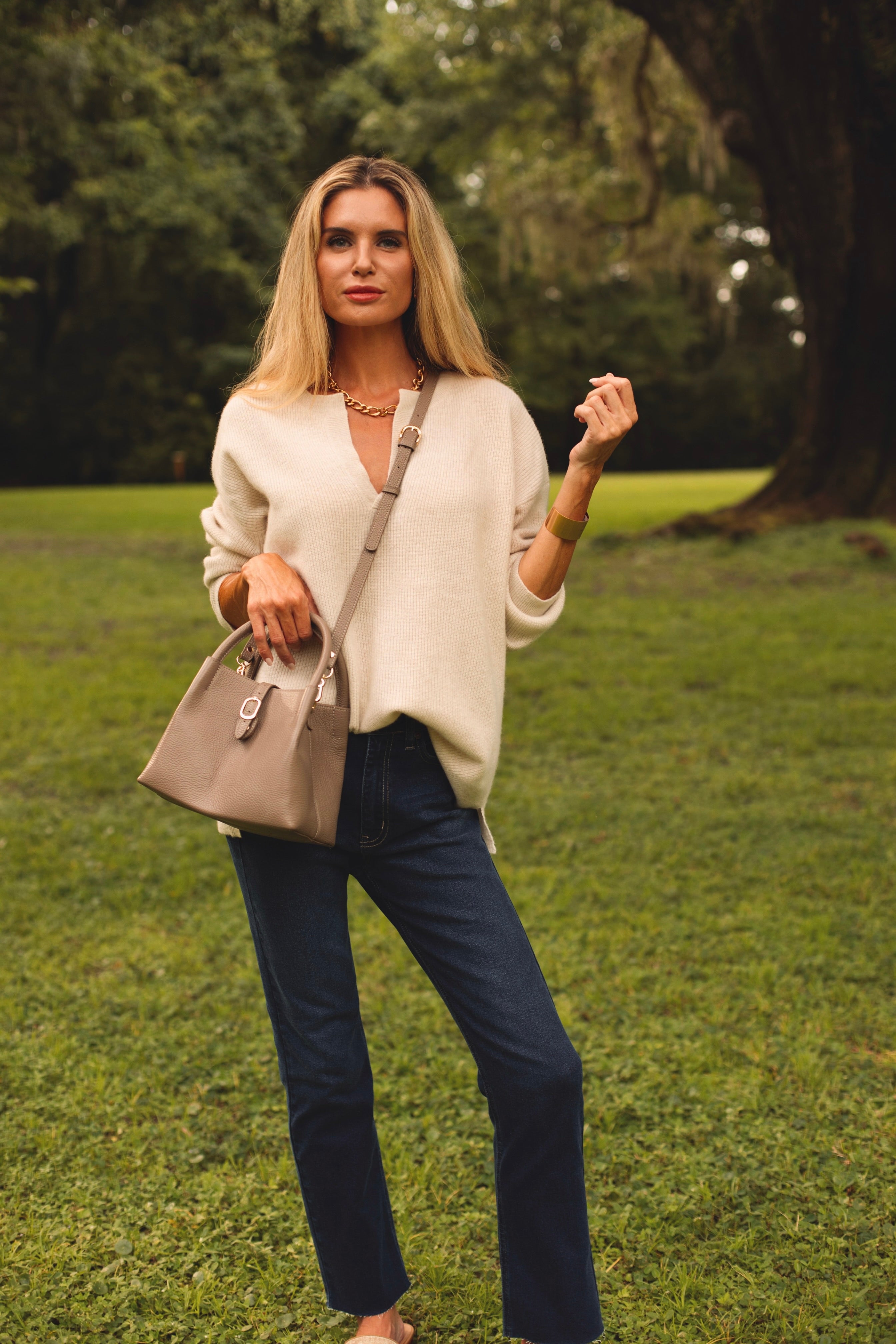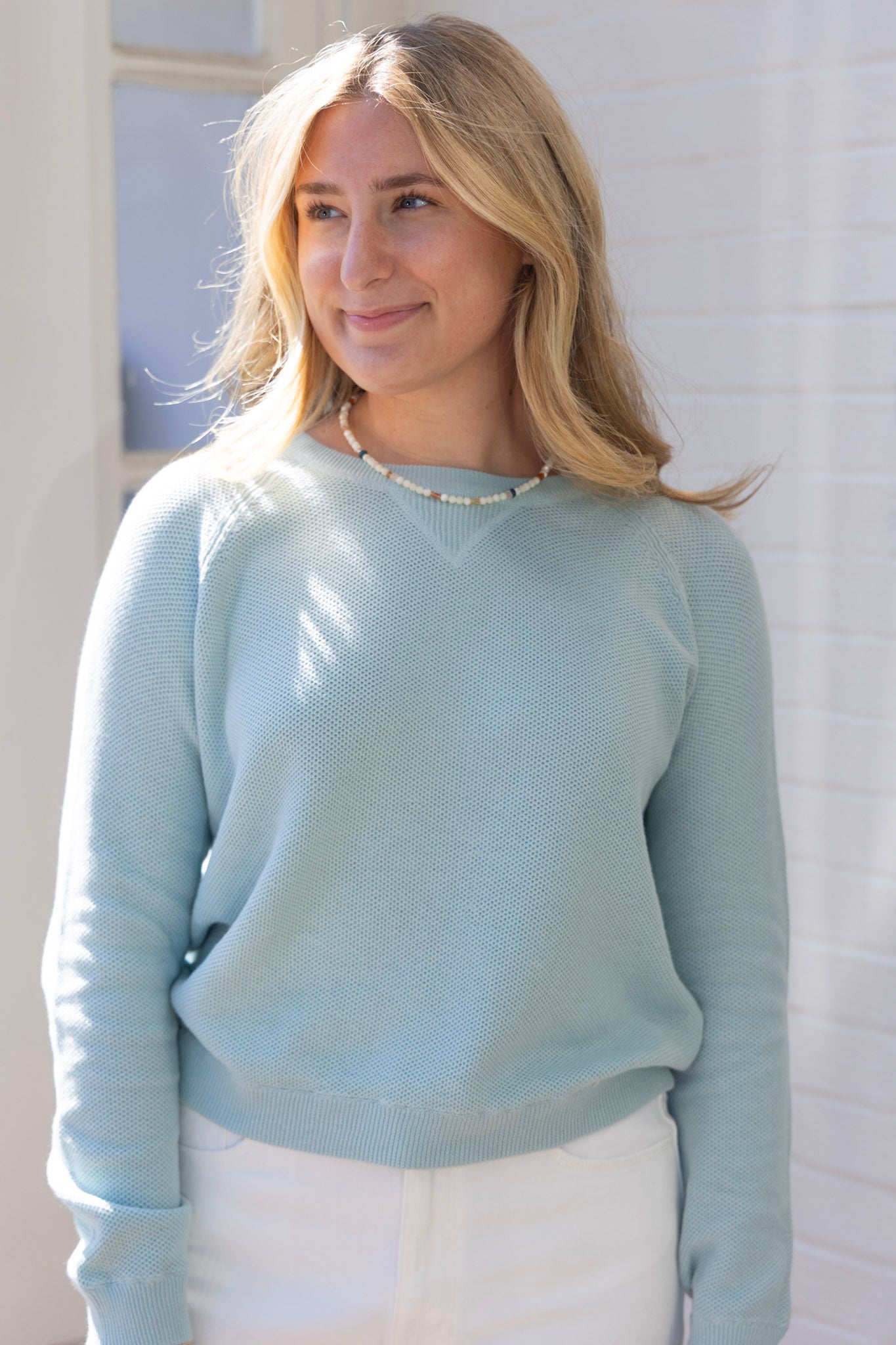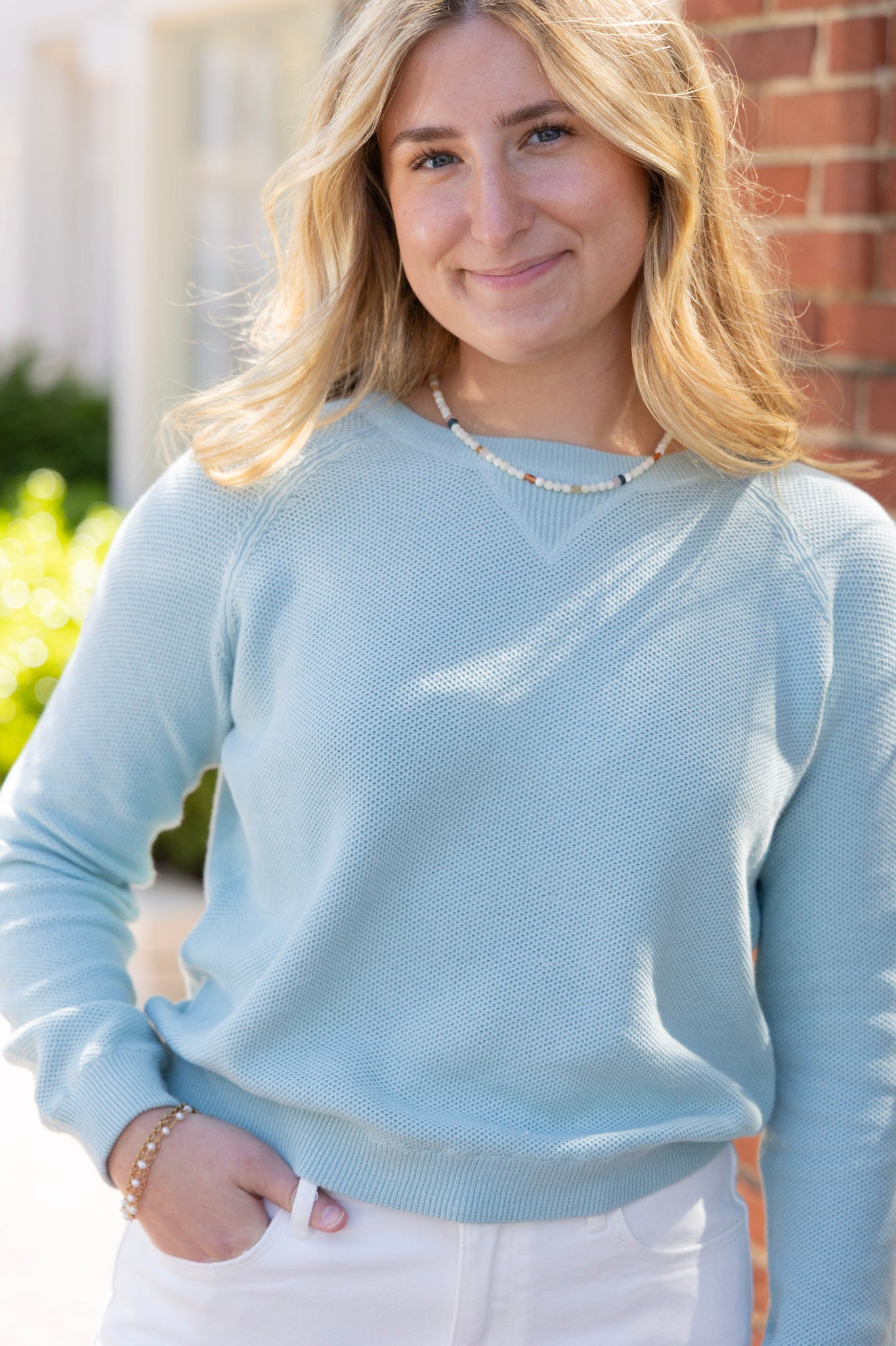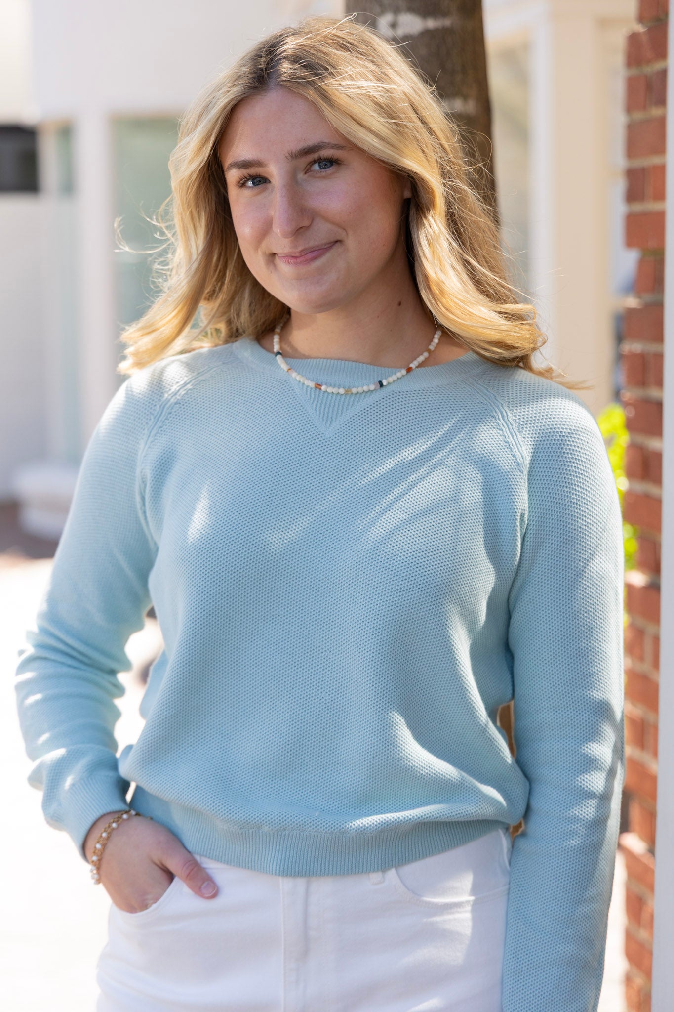 Lottie V-Notch Pullover Sweater in Light Blue by ExVoto
