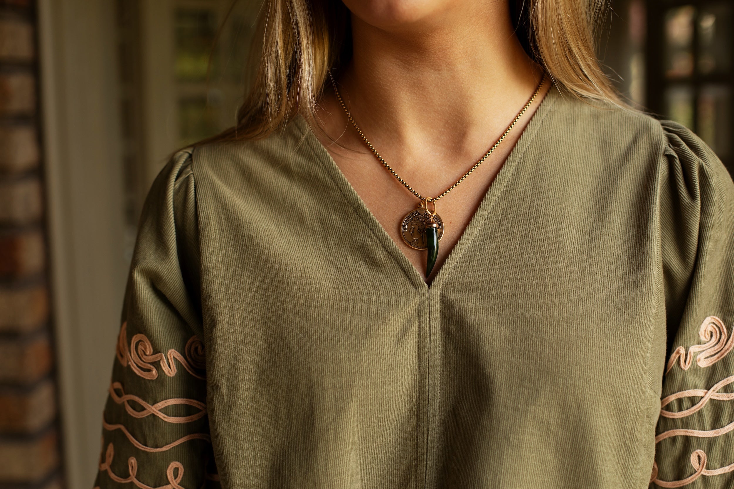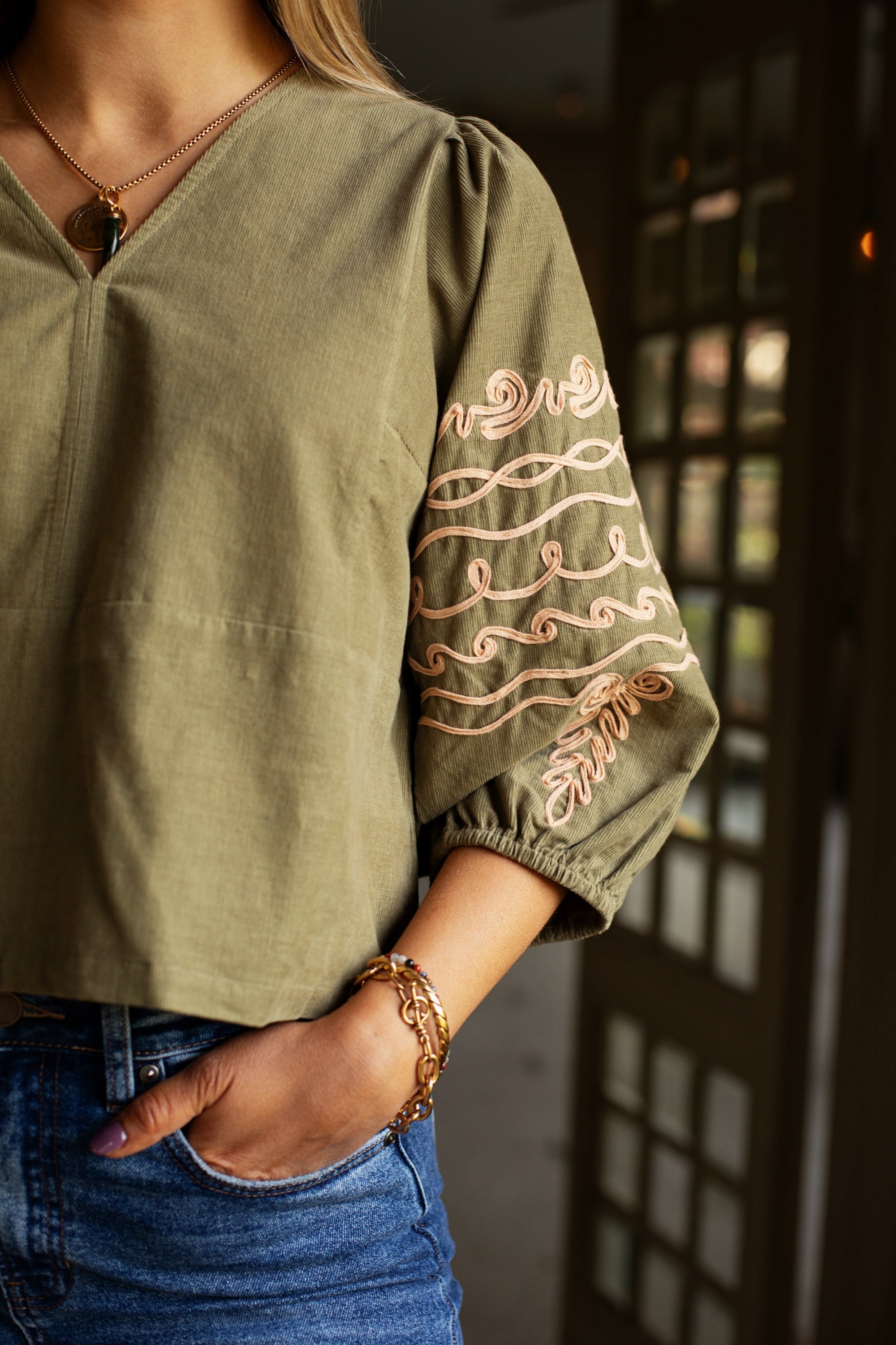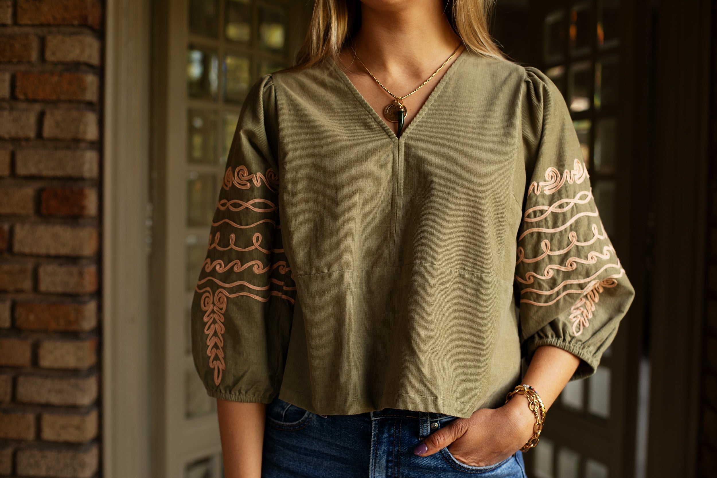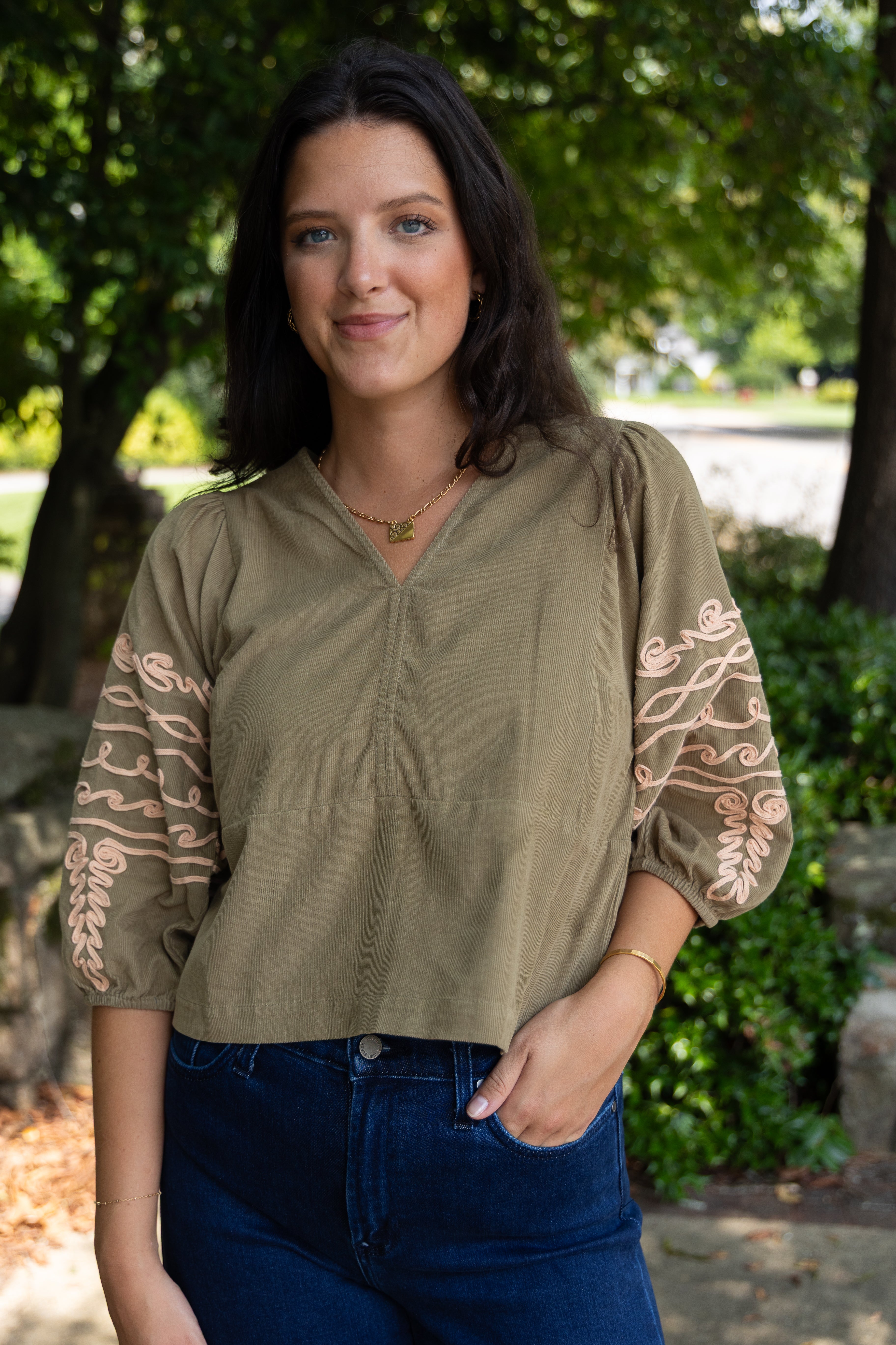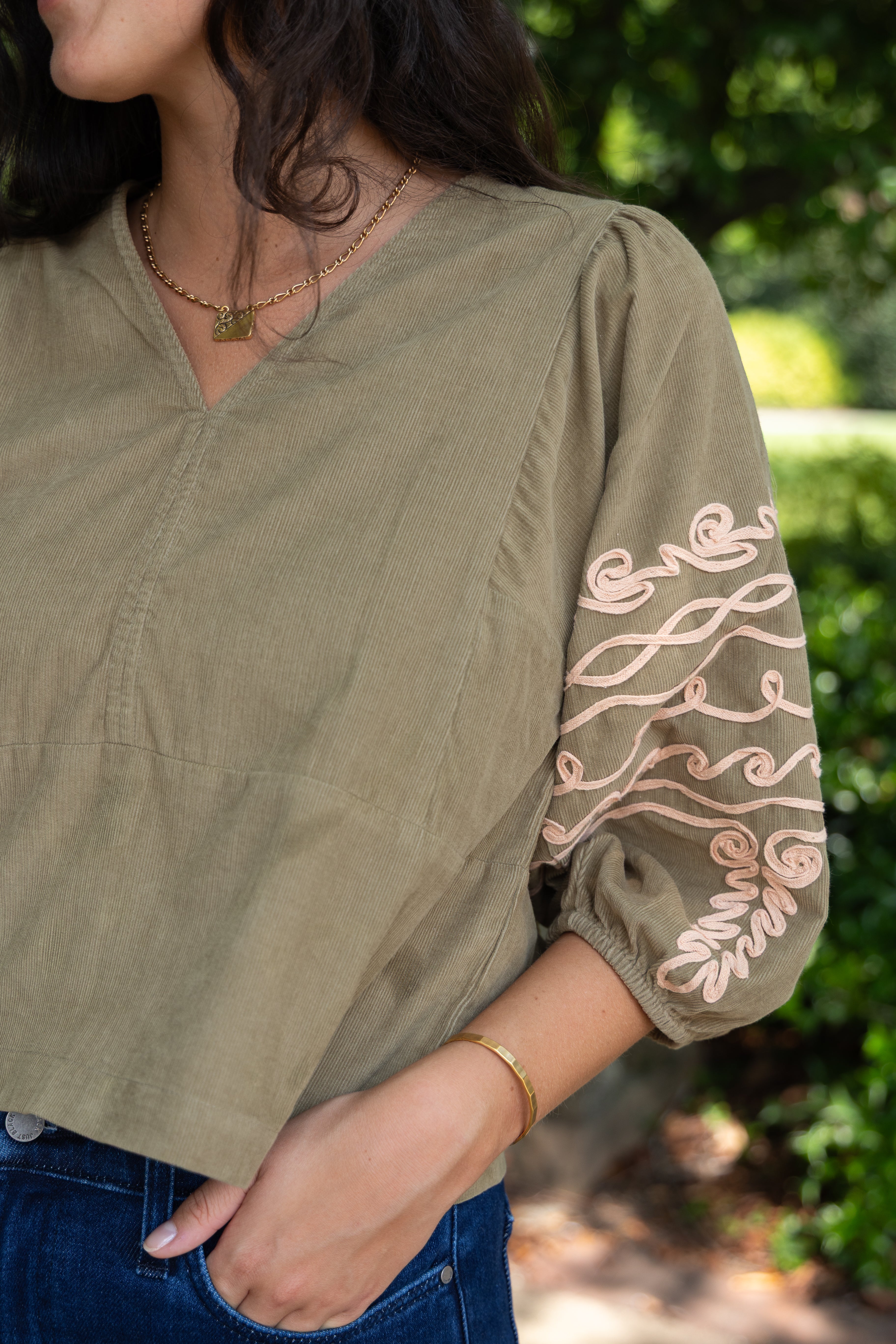 Phoebe Blouse in Moss Corduroy by ExVoto