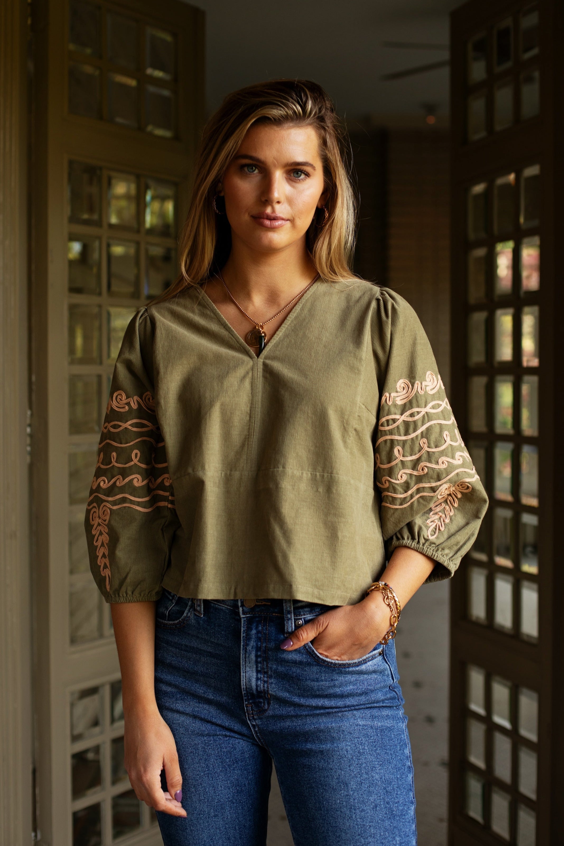 Daisy Embroidered Blouse in Arabesque by ExVoto