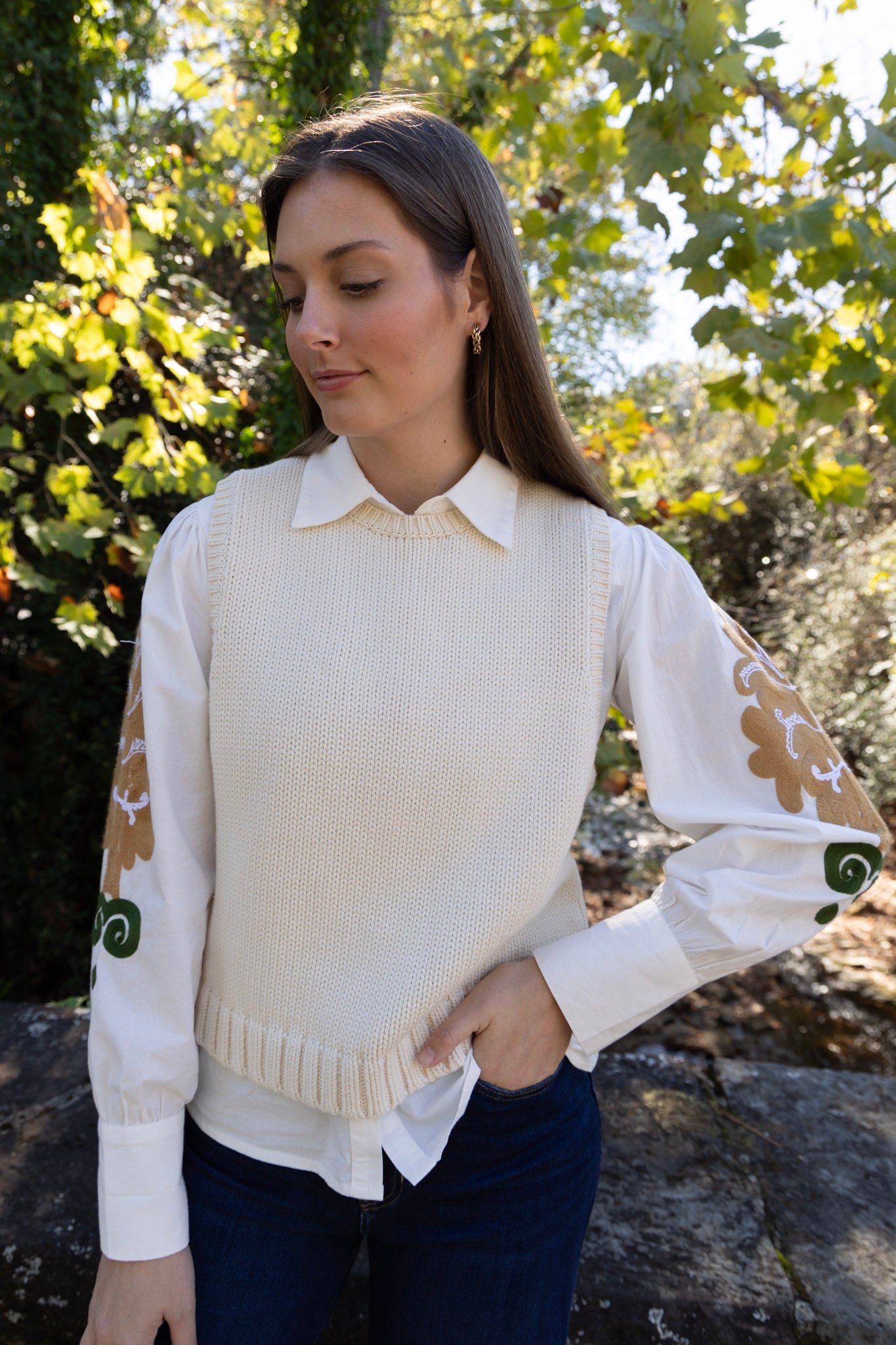 Harlow Embroidered Blouse in Ivory by ExVoto