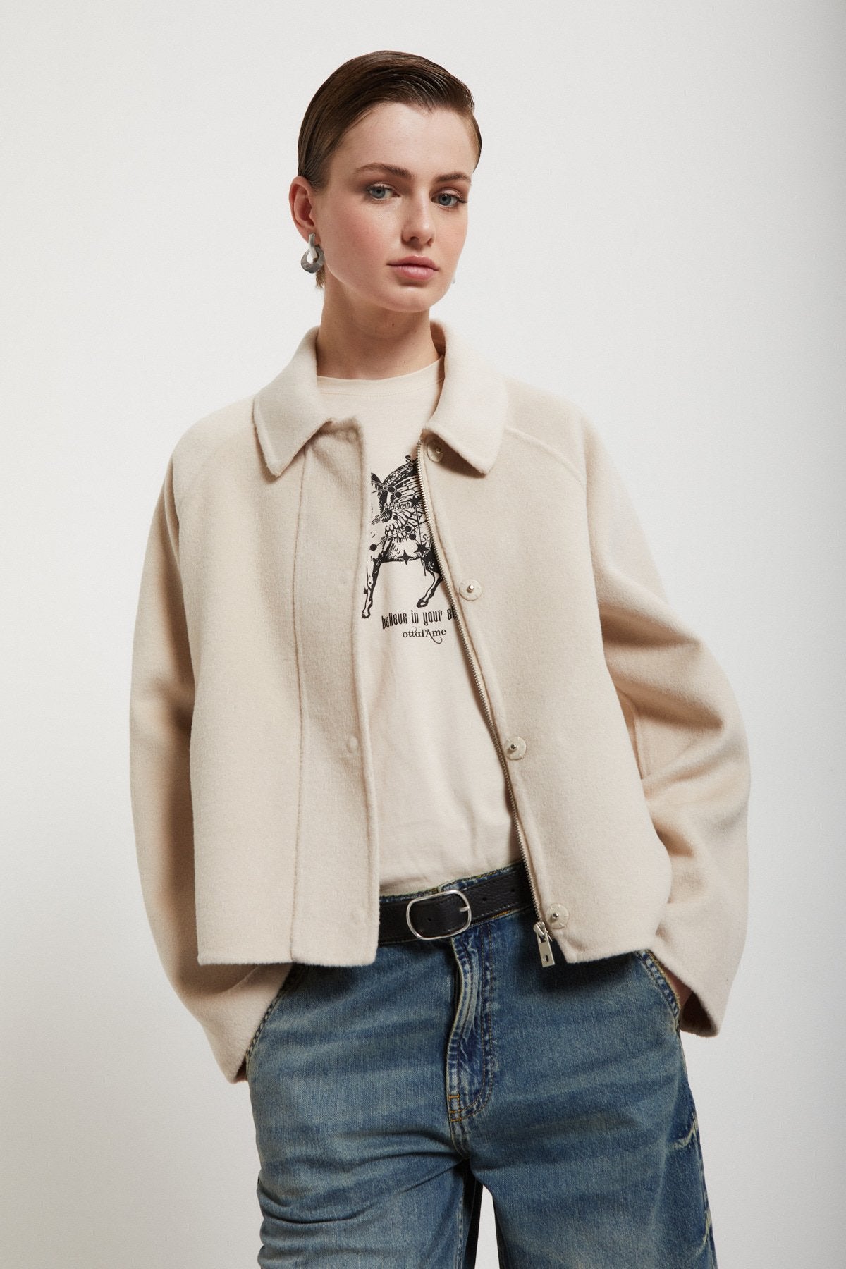 Cropped Wool Blend Jacket by Ottod'Ame (Chocolate Brown or Ecru)