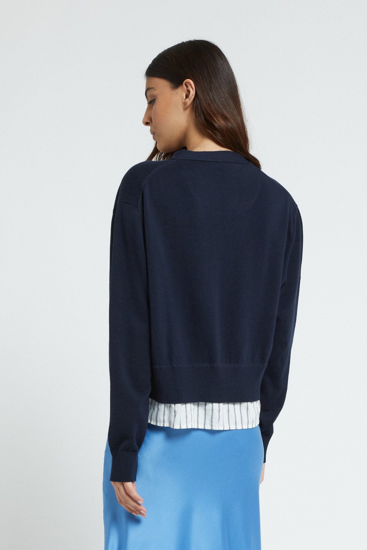 Button Front Ruffle Cardigan in Navy by Ottod'Ame