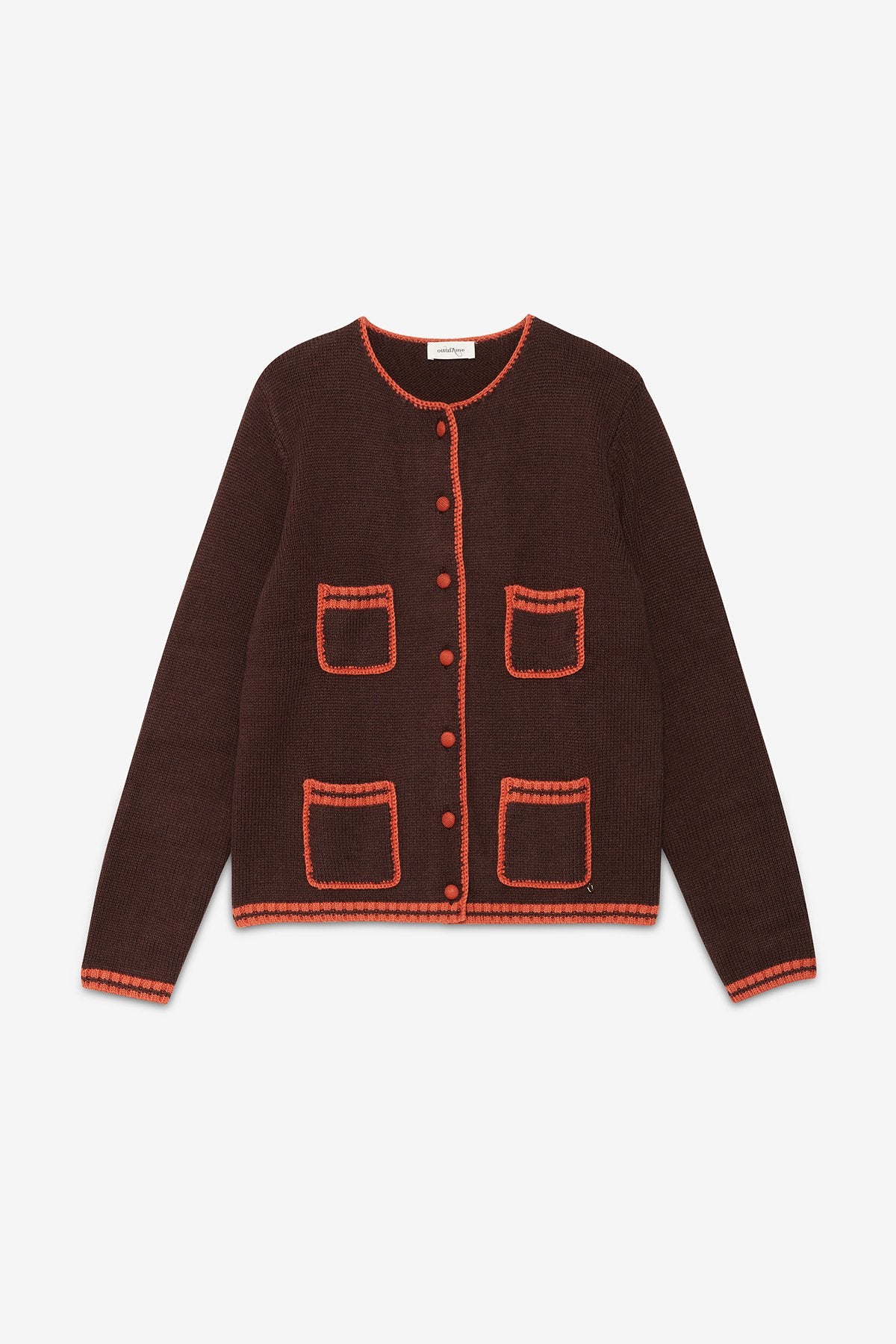 Pocket Front Cardigan in Brown by Ottod'Ame