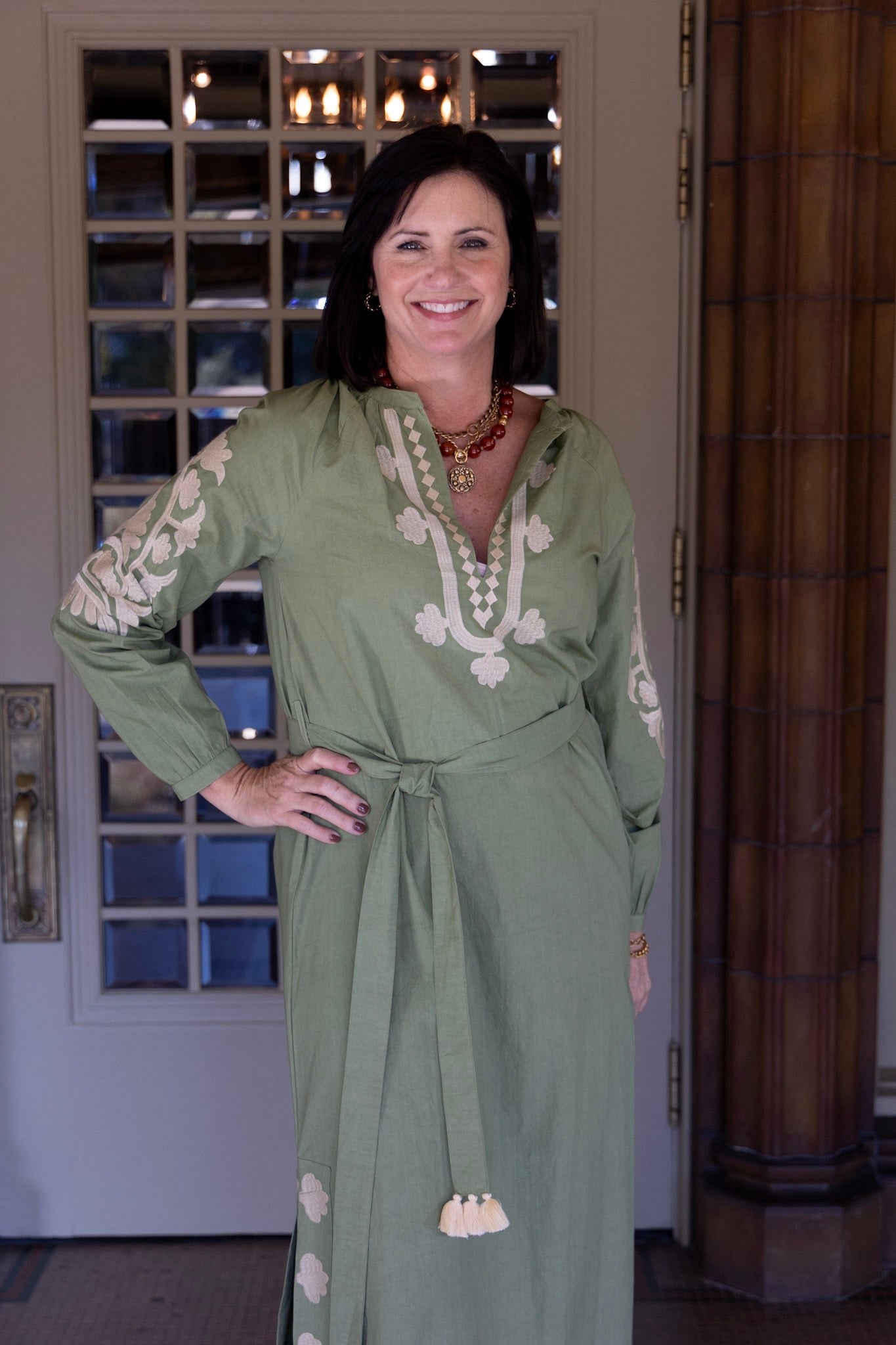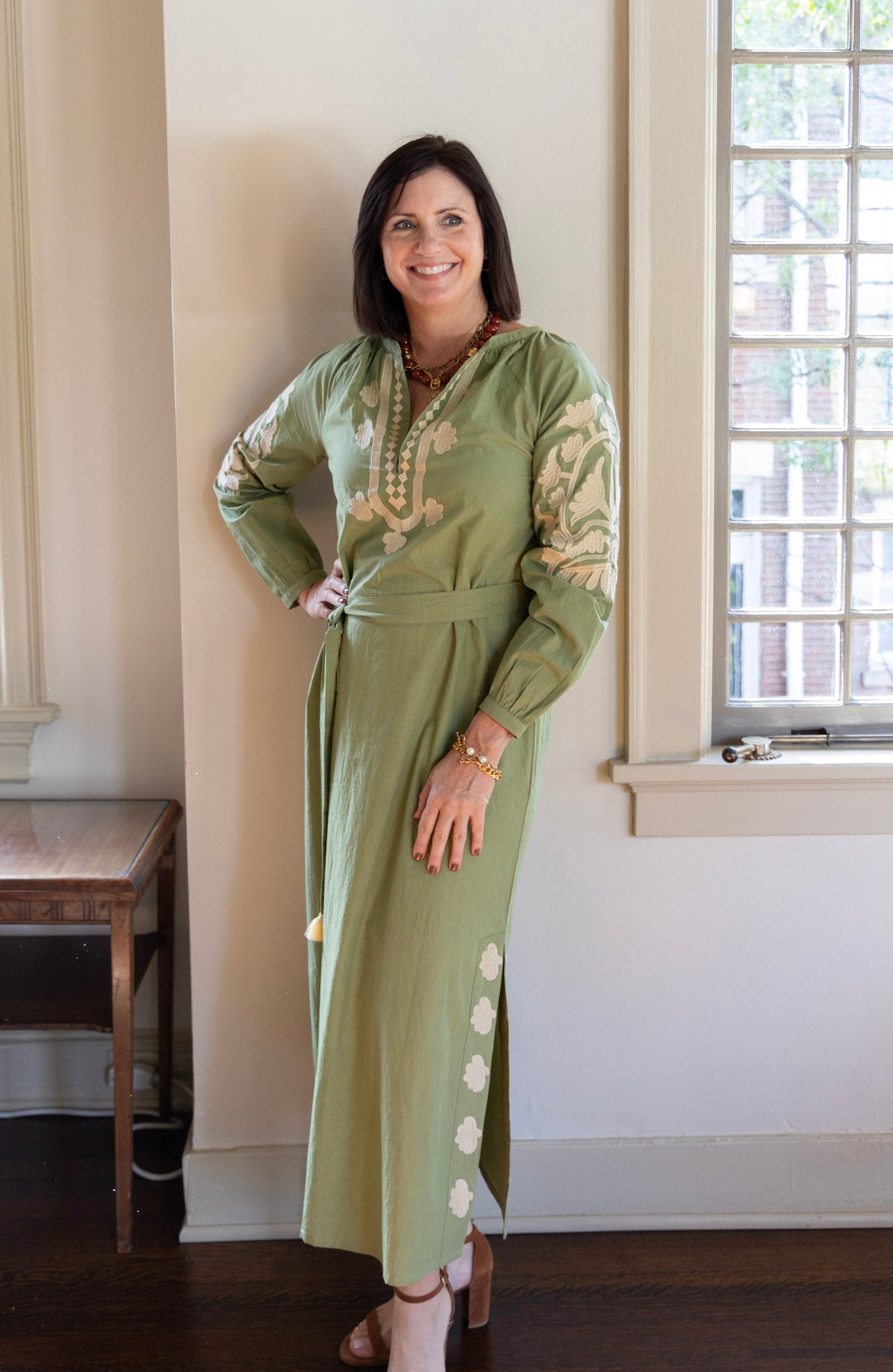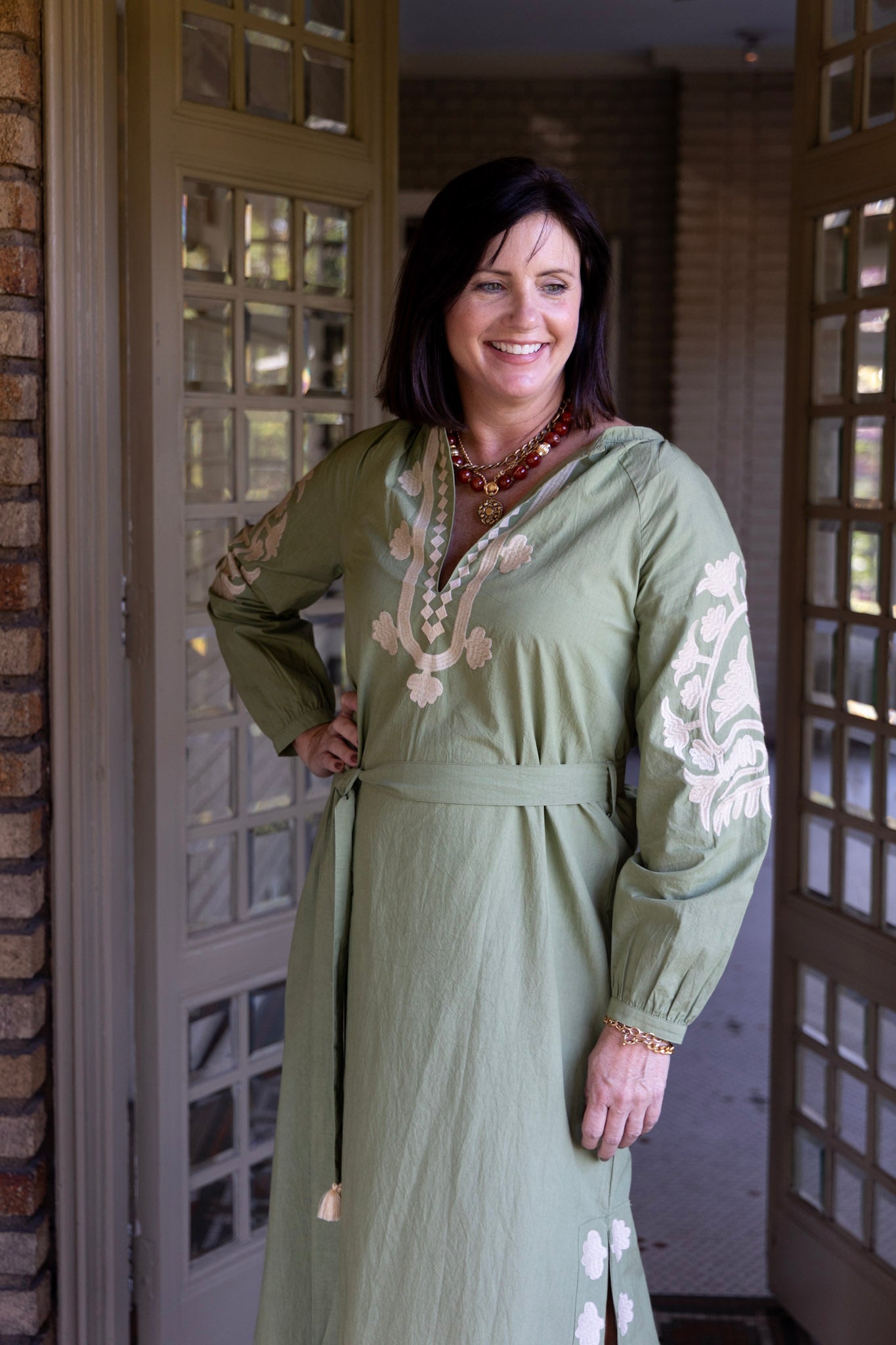 Jules Embroidered Caftan in Terrarium Moss by ExVoto