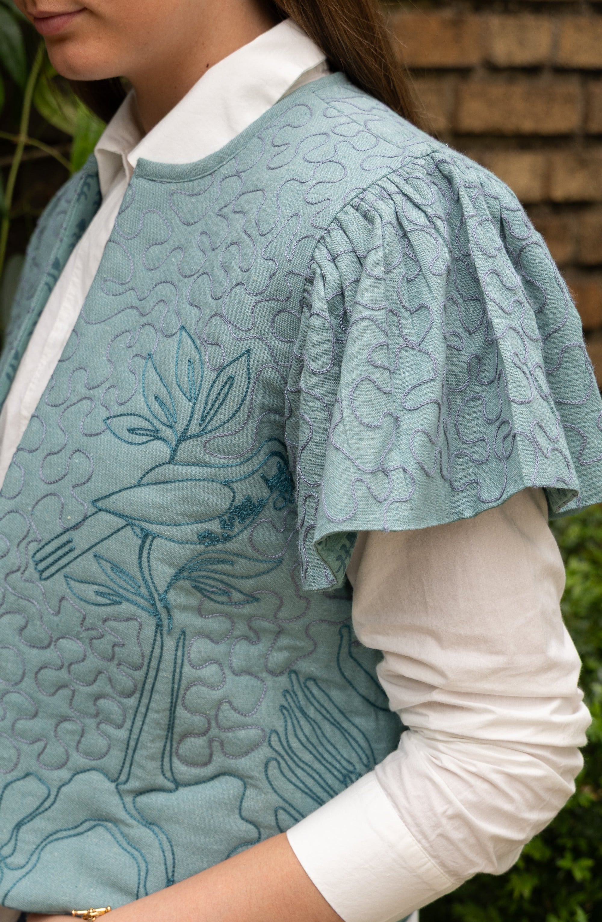 Cass Blouse in Seaborne with Embroidery by ExVoto