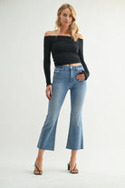 High Rise Cropped Flare Jean in Medium Denim