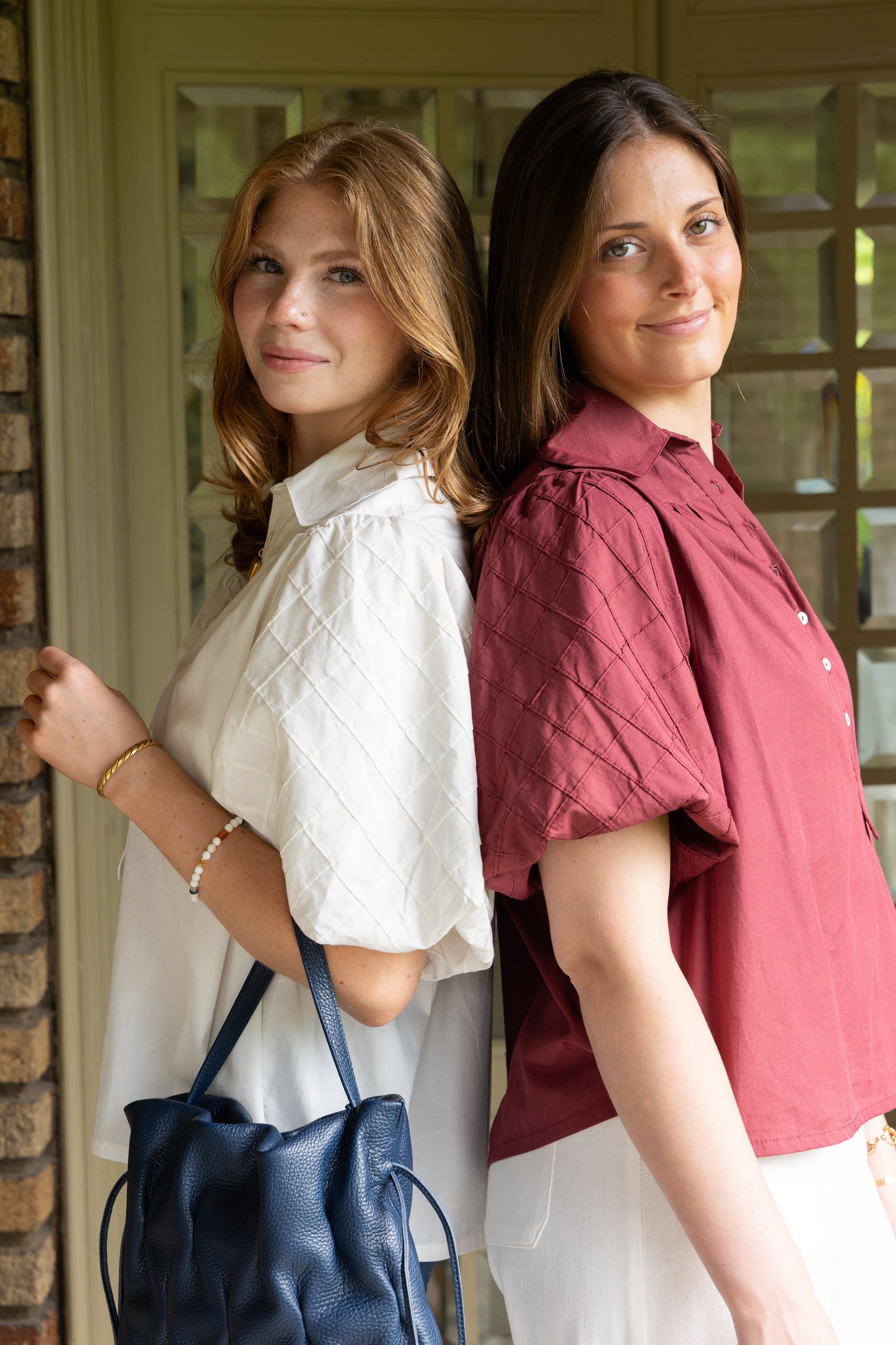 STYLE TIP: This timeless button-up blouse features a peter pan collar and puff sleeves with delicate pintuck details. Its timeless, crisp white color and breathable cotton makes it ideal for wearing year-round, especially in southern climates.