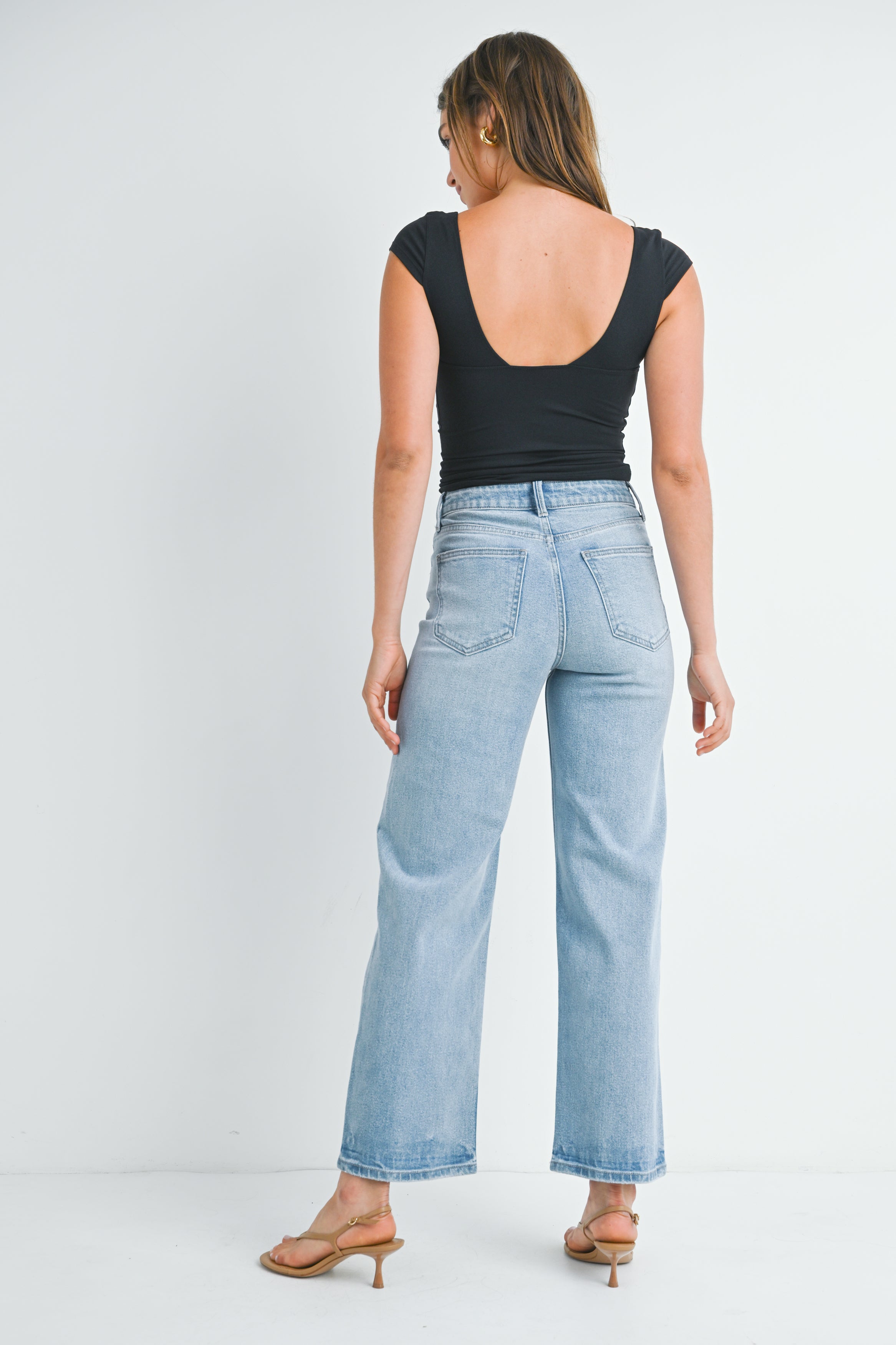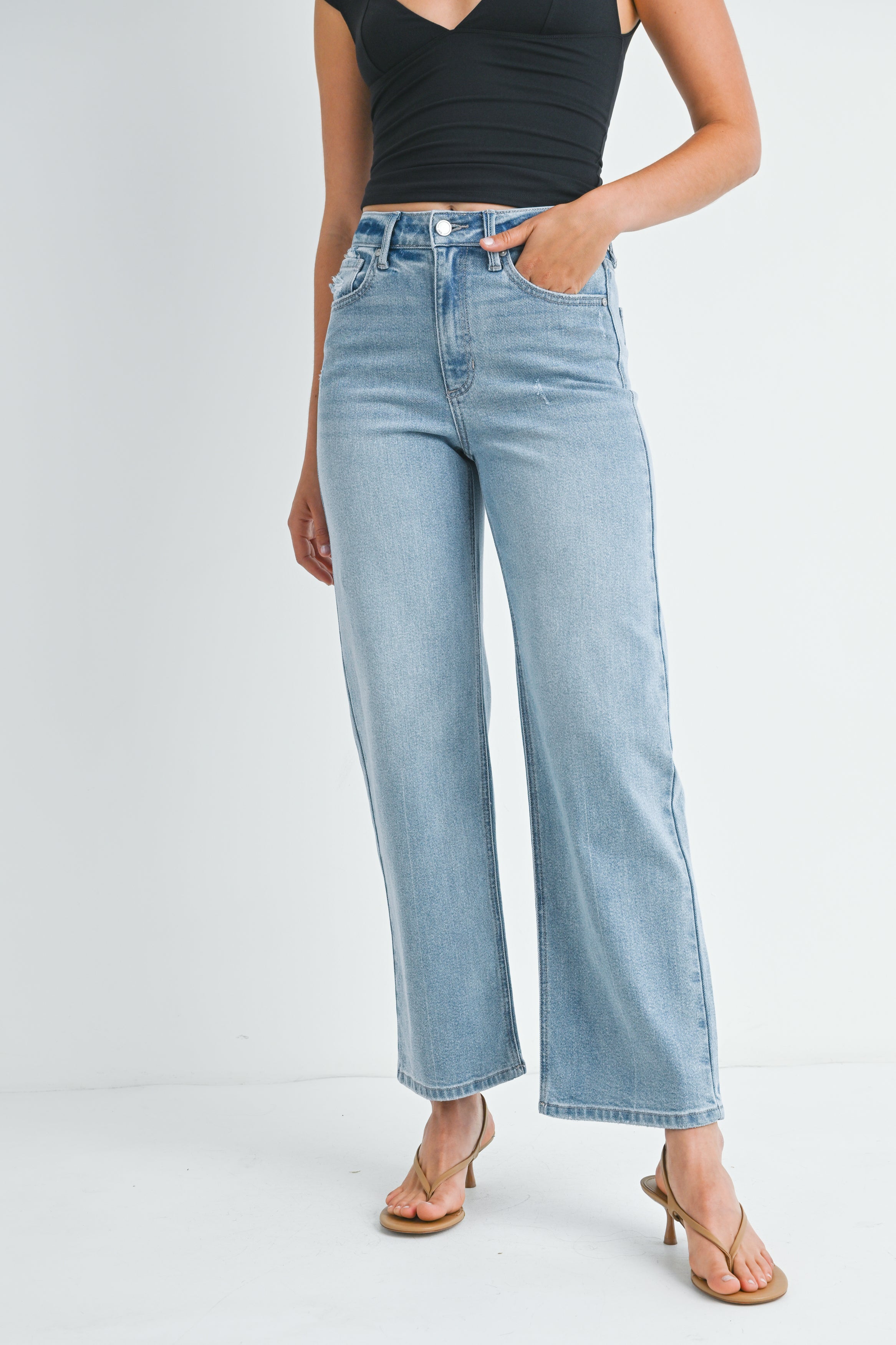 The perfect classic jean in a vintage light denim wash with a high rise and straight cut. This timeless silhouette flatters and elongates the leg while the straight leg offers versatile styling for any occasion. A wardrobe staple that pairs effortlessly with everything from tucked-in blouses to oversized sweaters.