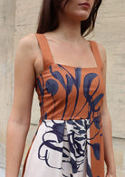 The Janie dress is made from cozy stretch poplin and boasts a dramatic, jaw-dropping silhouette. With a full skirt, incredible drape, and a smooth graphic print, it’s designed to turn heads and earn you endless compliments. And, of course, it has pockets! Adjustable straps with hand drawn wood buttons.