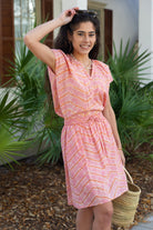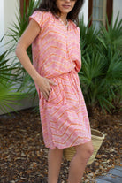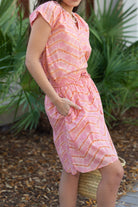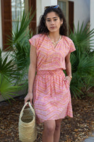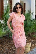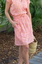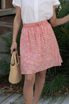 STYLE TIP: Comfortable and versatile, this mini skirt features a pink and ginger tie dye pattern with an elastic waistband, drawstring, and convenient pocket. The fully lined design and knee-length with side slit offers easy movement and coverage. Perfect with a white blouse or paired with the Allie Blouse in matching pink & ginger tie dye.