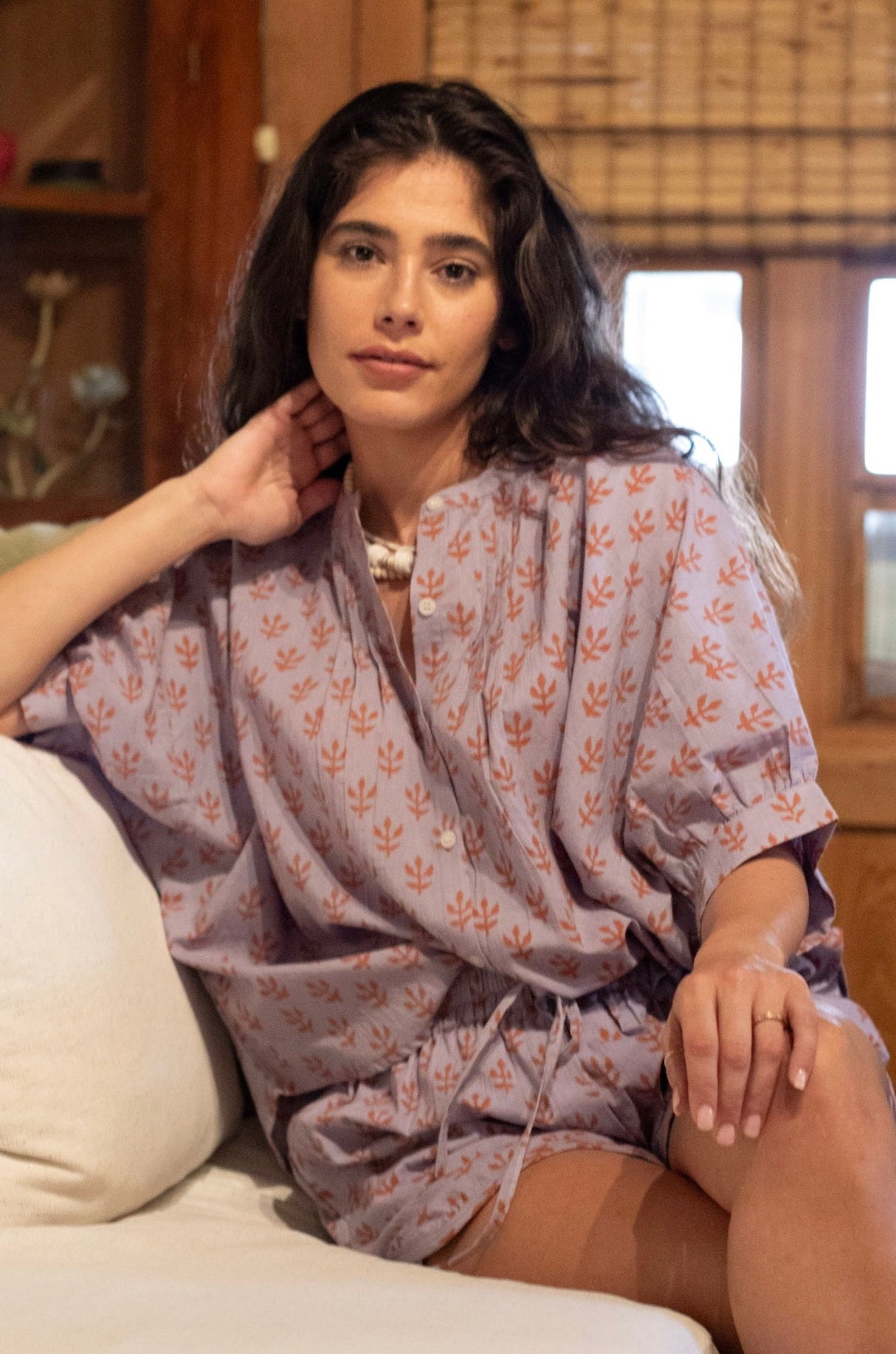 Poppy Blouse in Lavender & Ginger Blockprint by ExVoto