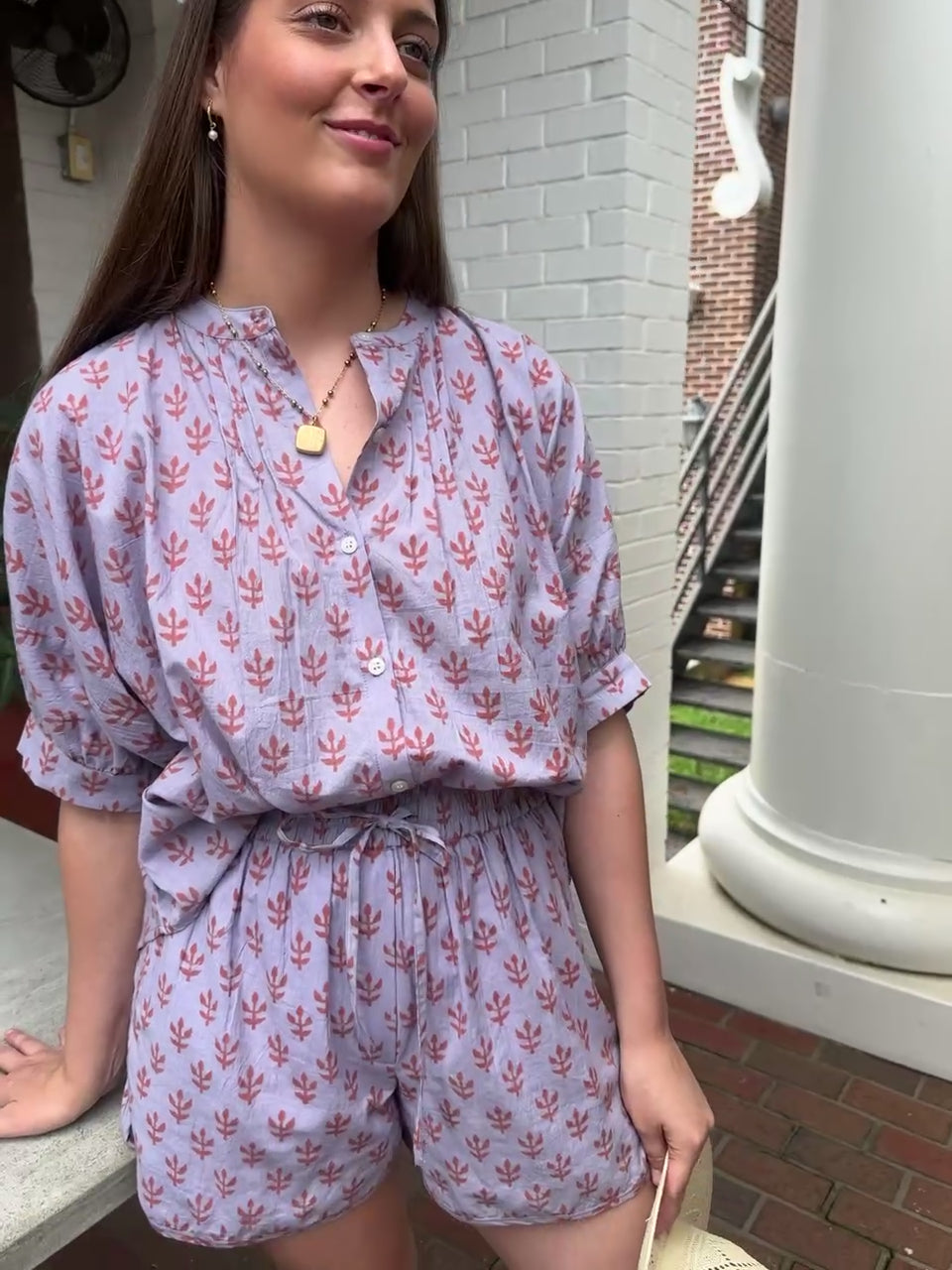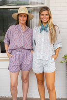 STYLE TIP: A versatile and comfortable blouse with a flattering one-size fit and a draped, relaxed silhouette. Lightweight cotton fabric and timeless design make it perfect for day to day wear! Wear untucked with shorts for a relaxed outing or French tucked with denim for a more tailored look! Pair with the matching Aiden Shorts for a set!