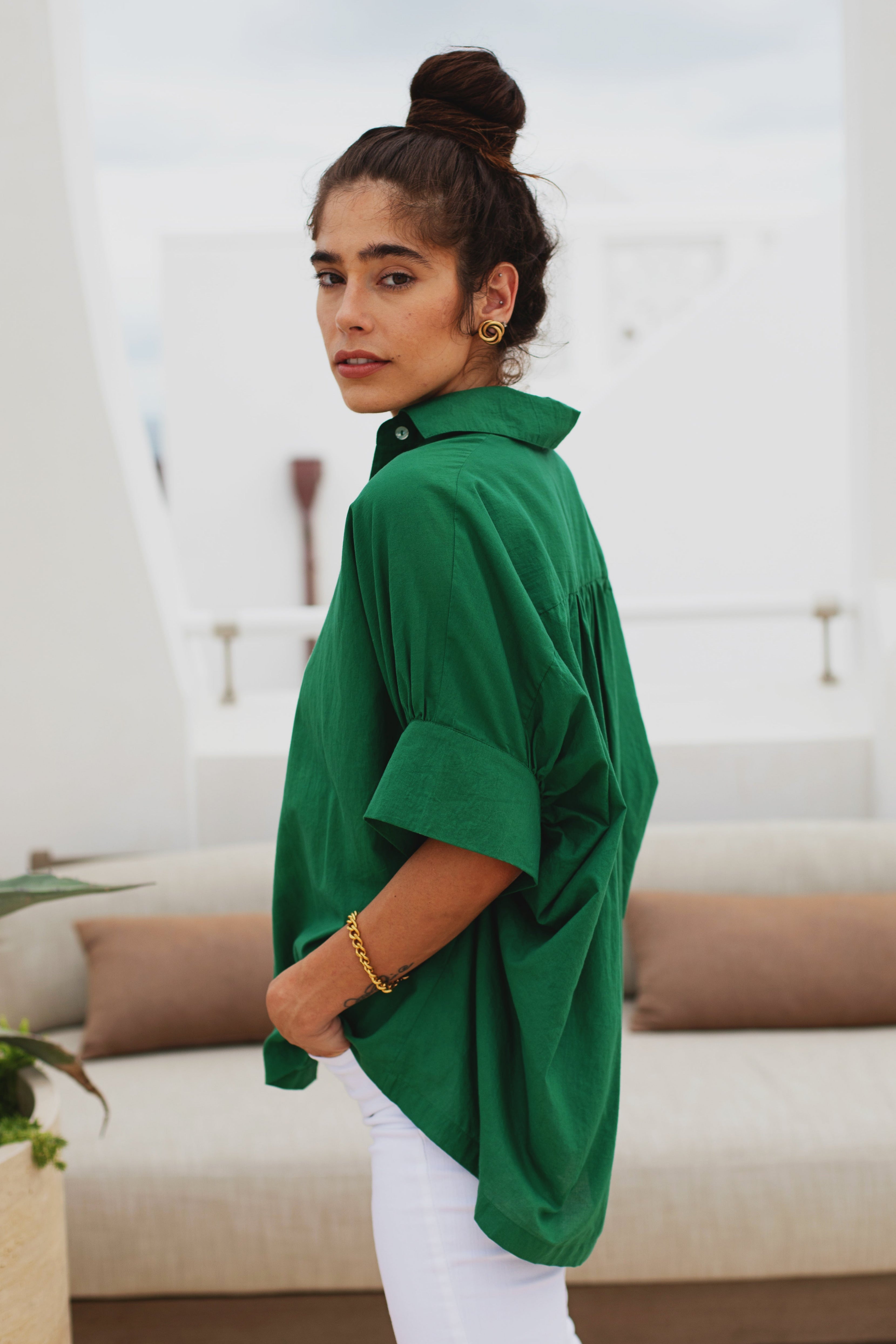 STYLE TIP: The Cass Blouse will be your go to blouse year round! With a slight high-low hem and wide cuff detail on the arm, this top is easy and breezy and will flow with you while wearing. French tuck for a more tailored look or wear untucked for an effortless but put together outfit! Pair with white denim and wedges for a night out or shorts and sandals for a more relaxed look!