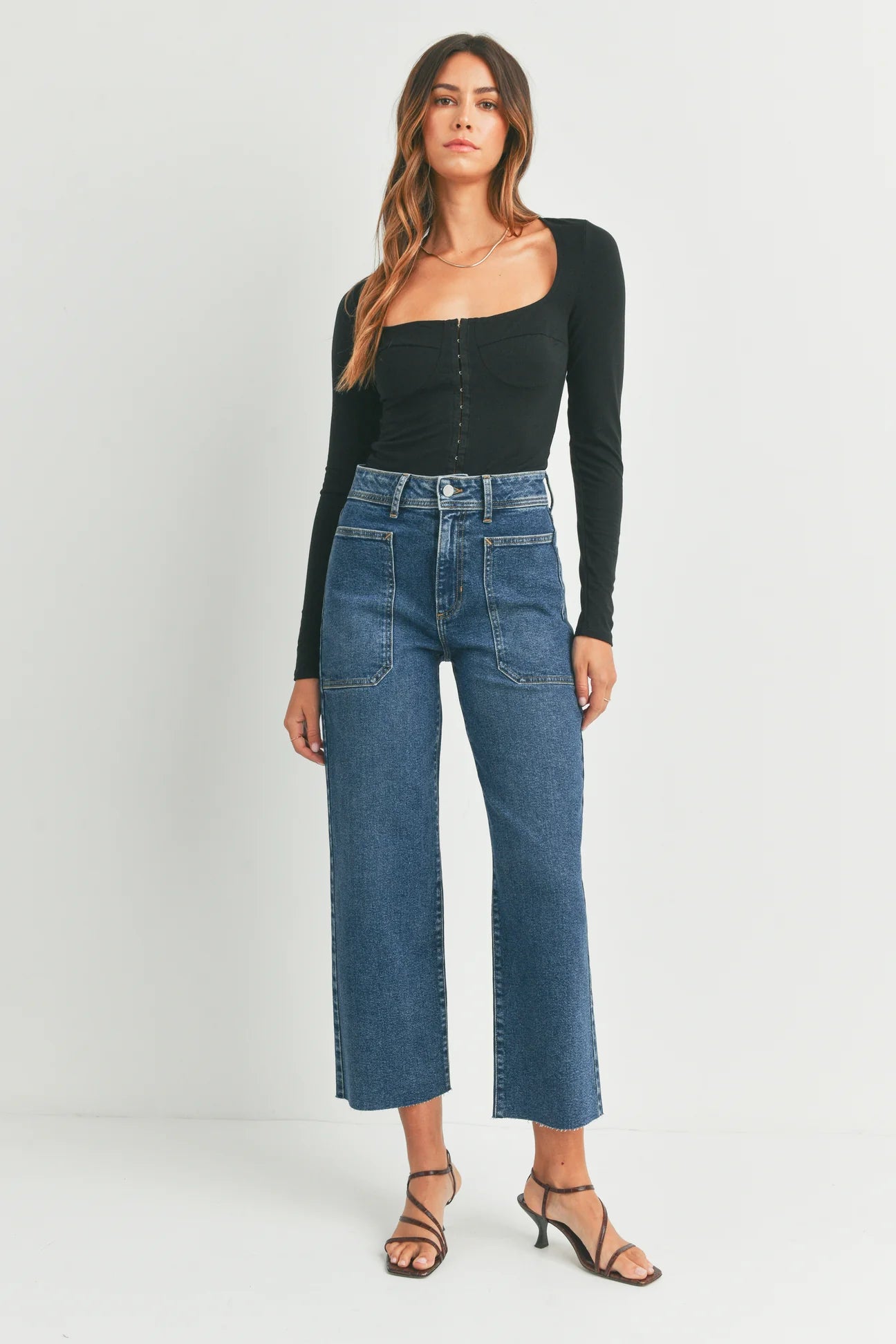 A fun and modern wide-leg jean that goes with everything and is multi-season. This is a customer and employee favorite style in a year round dark wash.