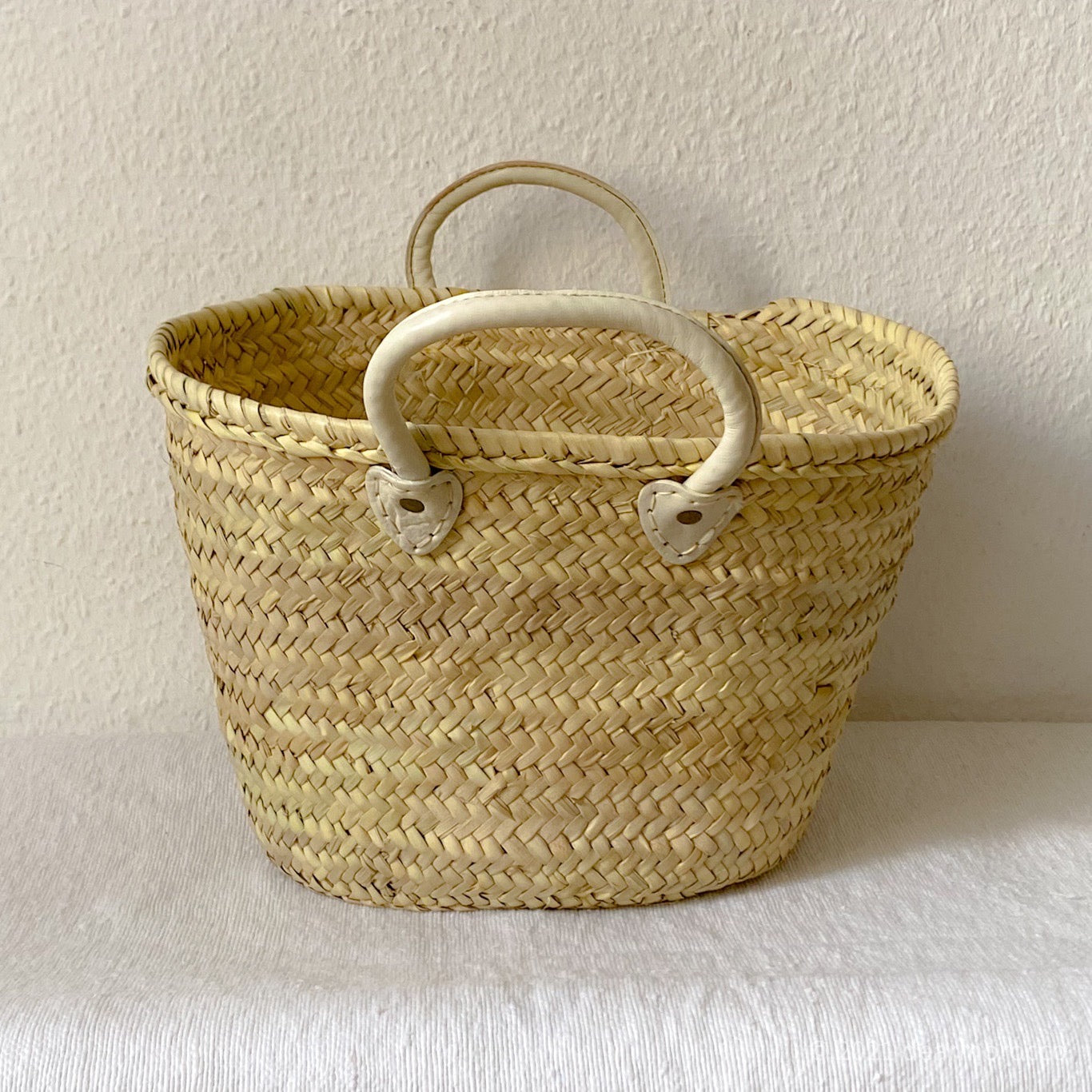 French Market Basket Tote with Bone Leather Handle