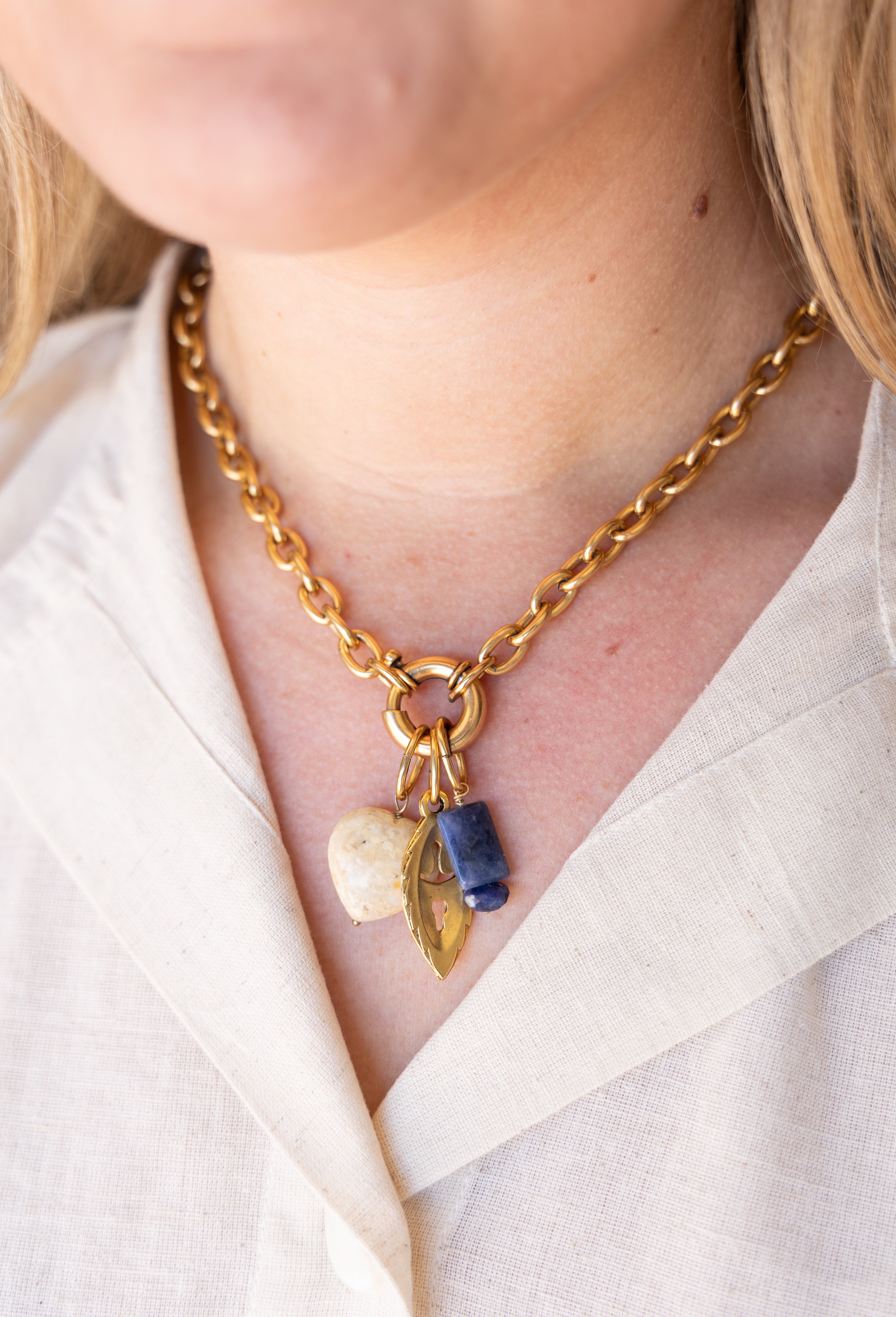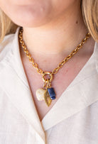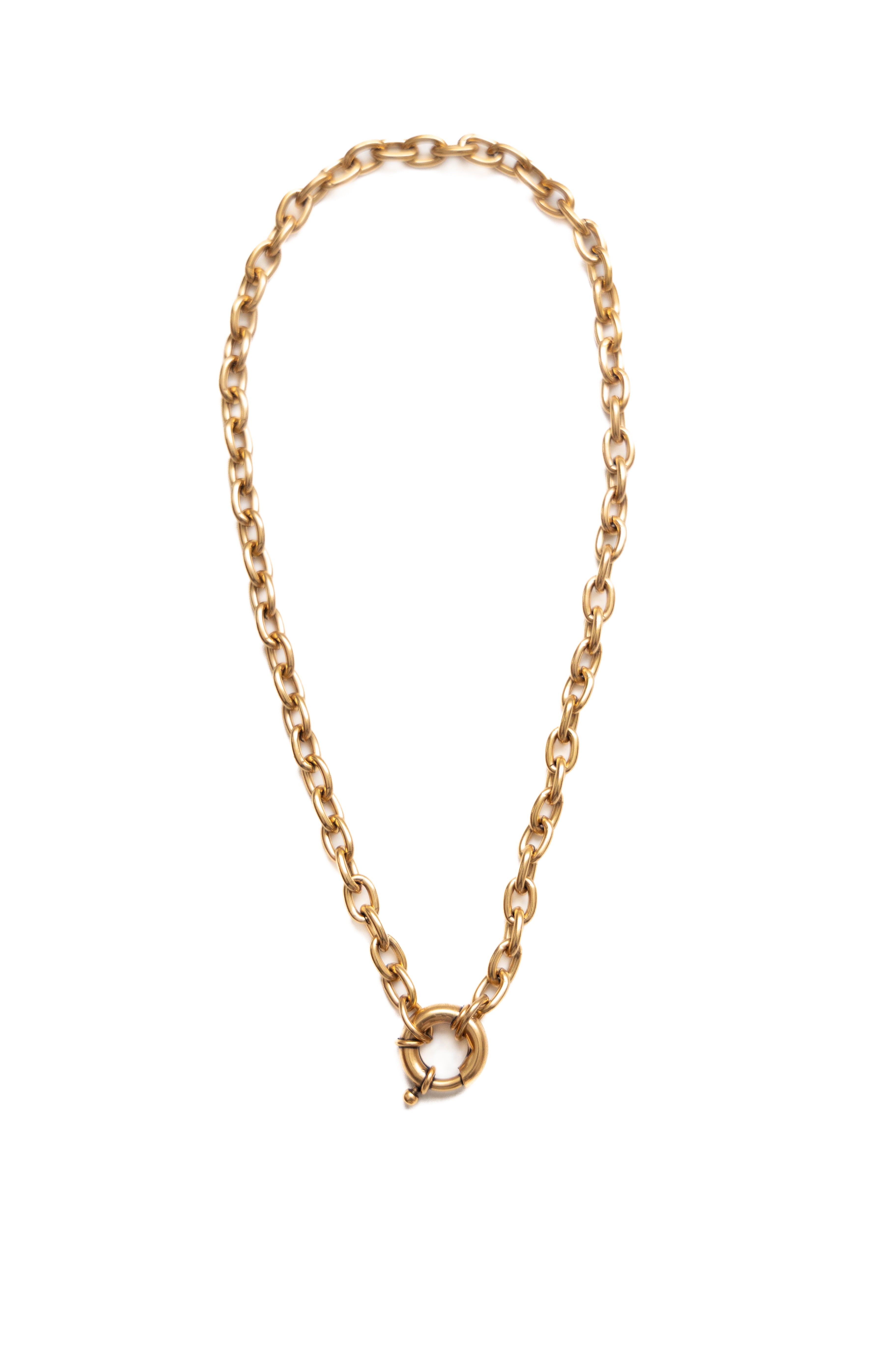 The Jenny Necklace with large clasp closure. Plated in premium 18K gold, which is resistant to tarnishing with proper care, allows for extended wear.