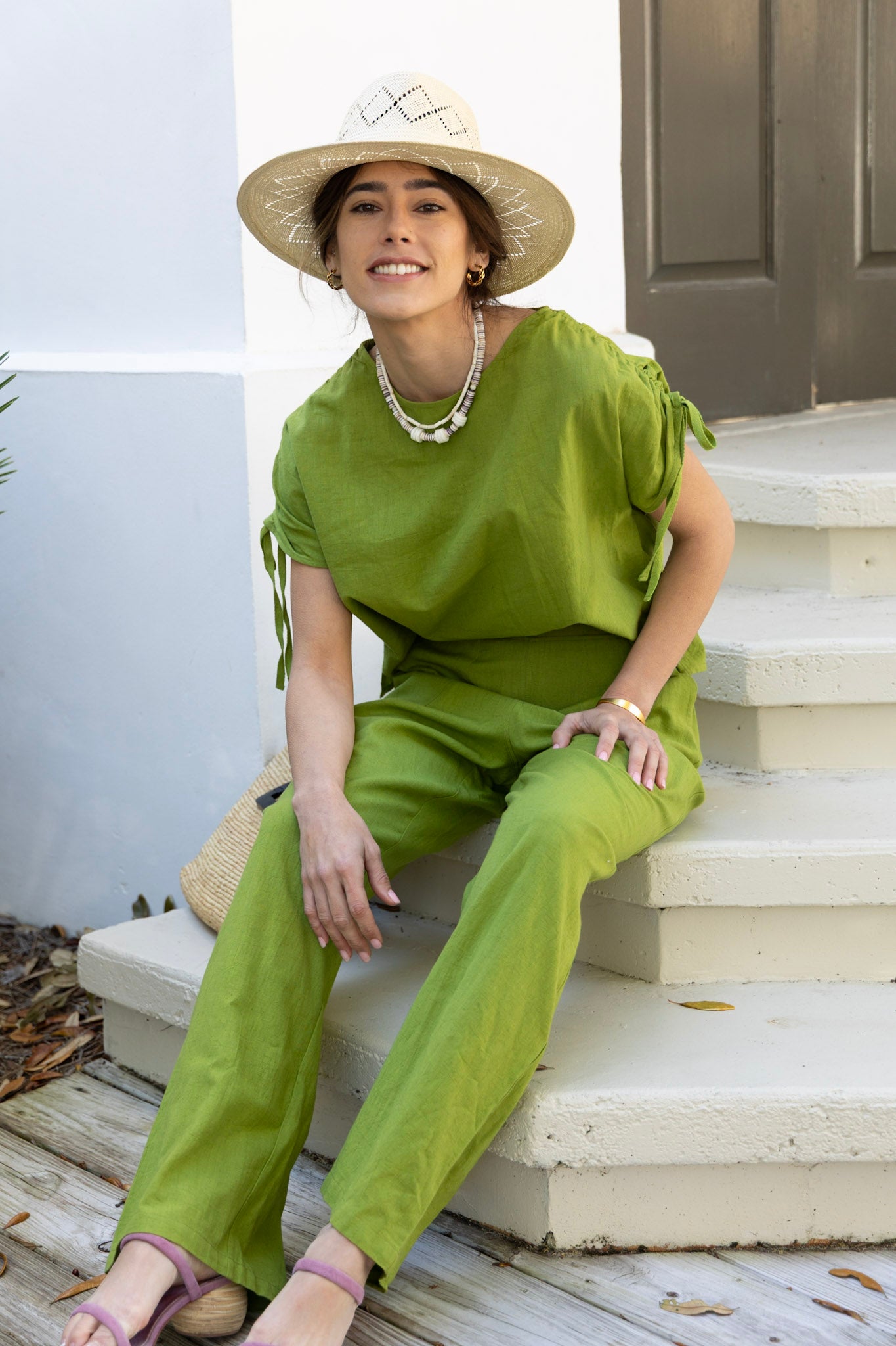Scotty Linen Trouser in Leaf Green by ExVoto