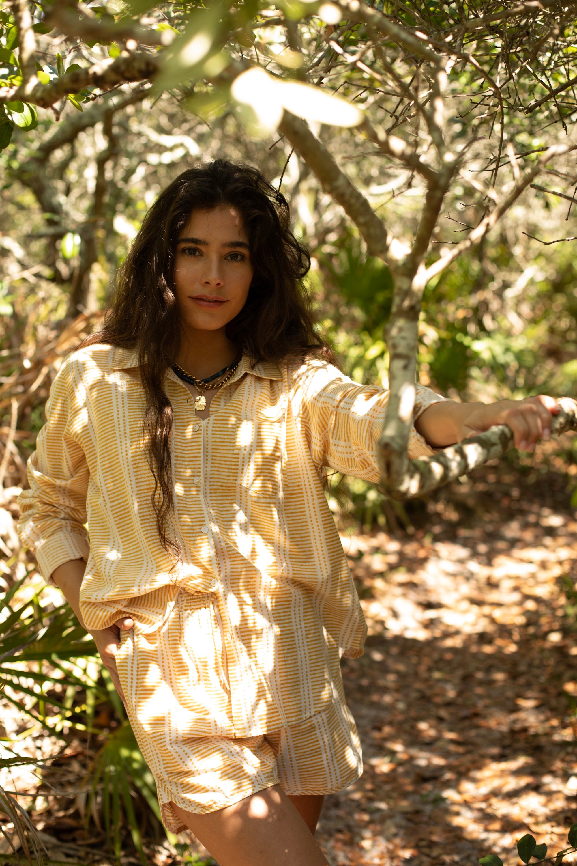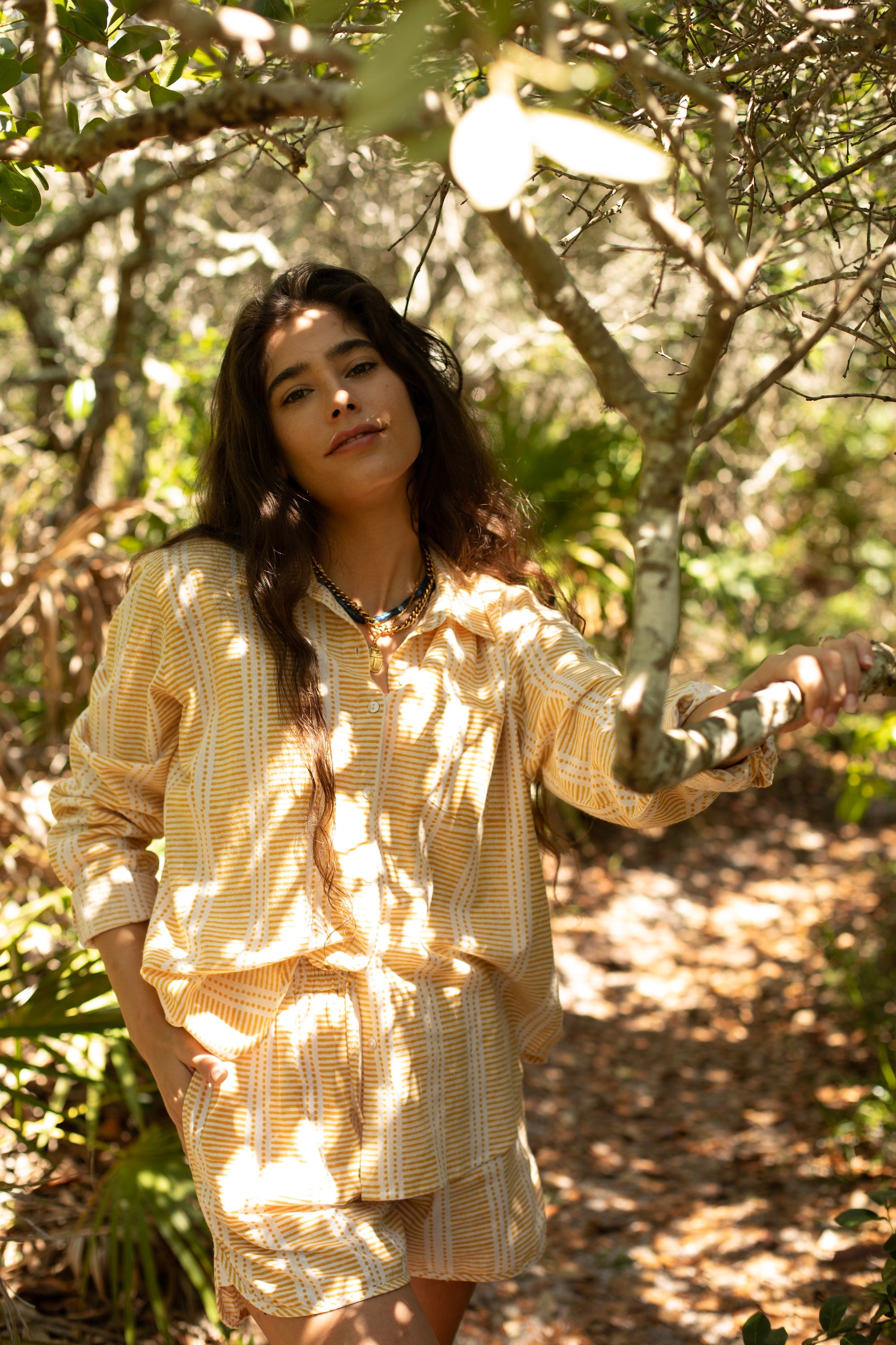 Aiden Shorts in Amber Yellow Blockprint by ExVoto