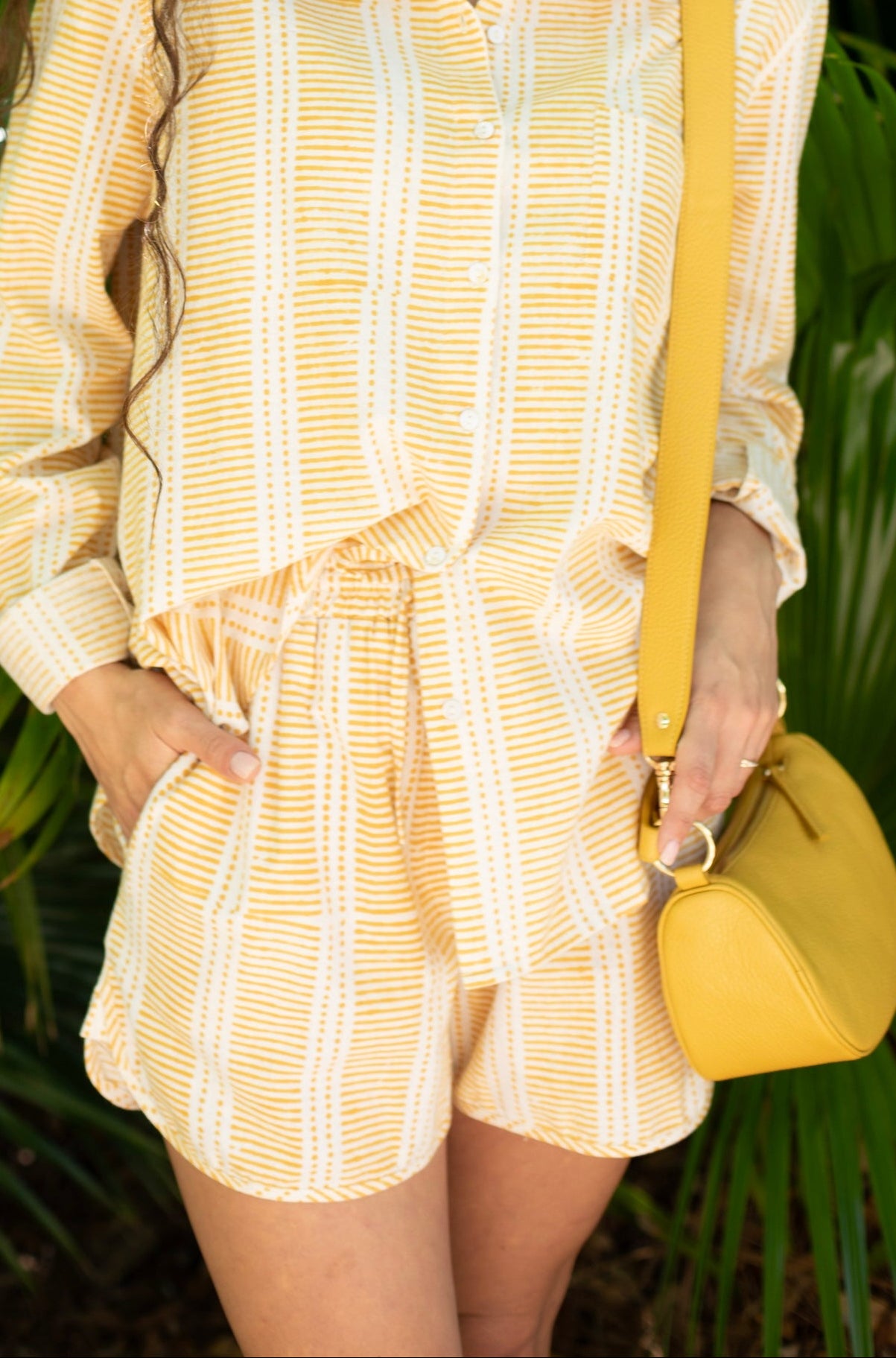 STYLE TIP: These shorts feature an elastic waist with a tie string detail for enhanced comfort. Suitable for casual outings or beach days, they can be paired with the Sage Button Front Shirt in a matching blockprint for the full look!