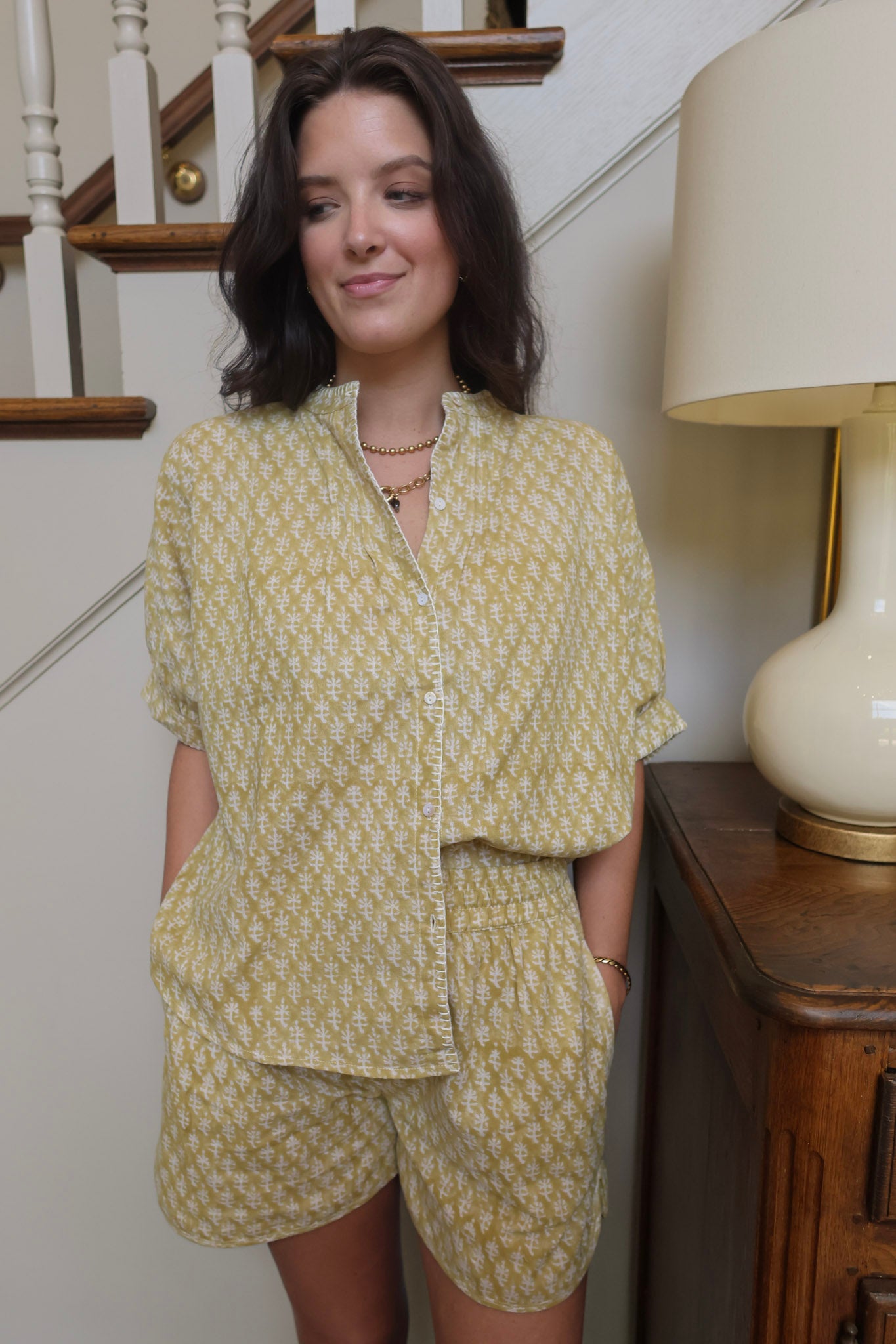 STYLE TIP: With a 12" high rise and 3.5" inseam, these shorts are a great length and have such an easy fit with elastic waist and tie string detail. A perfect pairing with the Poppy Blouse in Doe Blockprint!