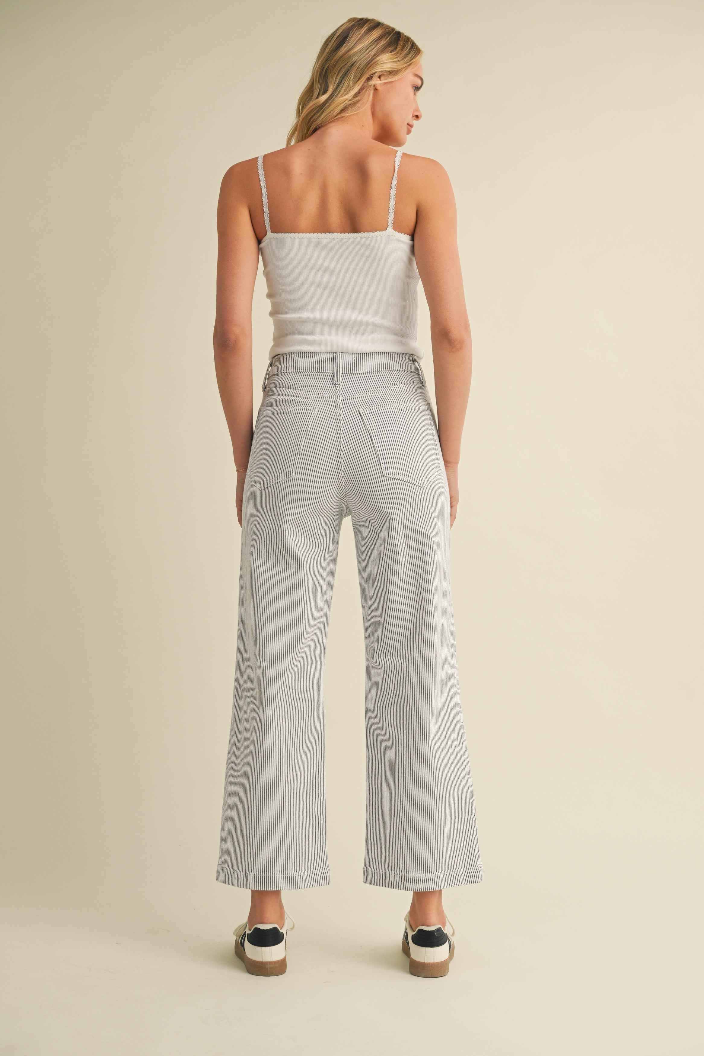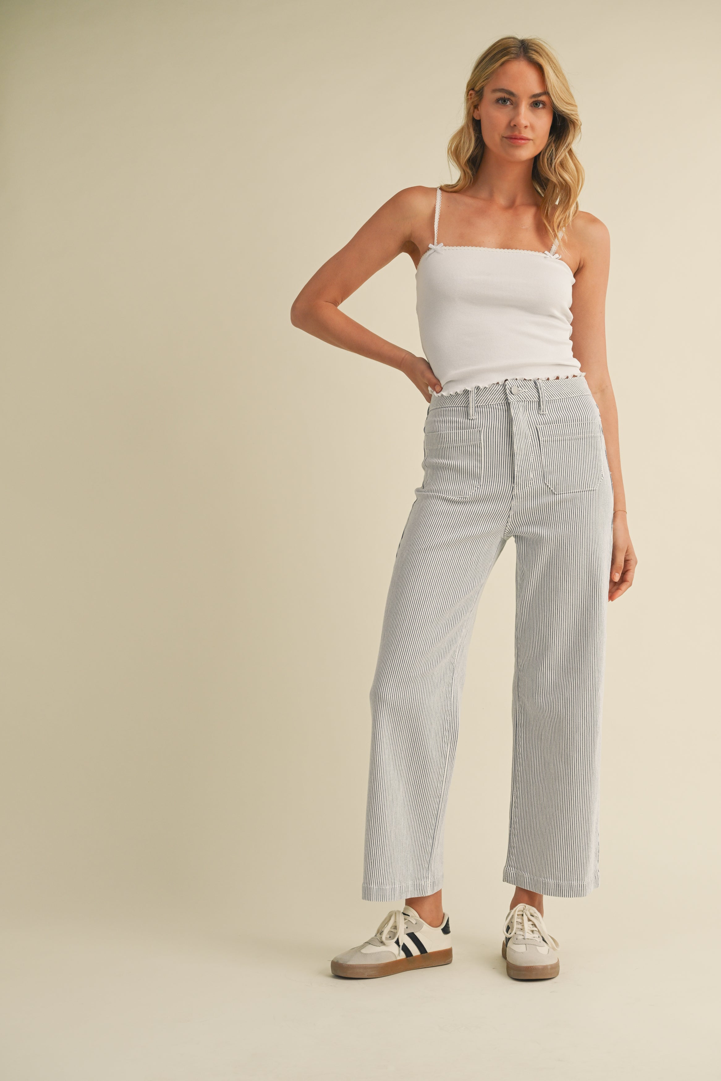 Stripes meet sophistication in this effortless wide-leg wonder. Featuring a classic stripe pattern and a handy front patch pocket, it's the perfect piece to bridge your winter wardrobe into spring style. Comfortable, versatile, and undeniably chic—this is the bottoms upgrade you didn't know you needed.