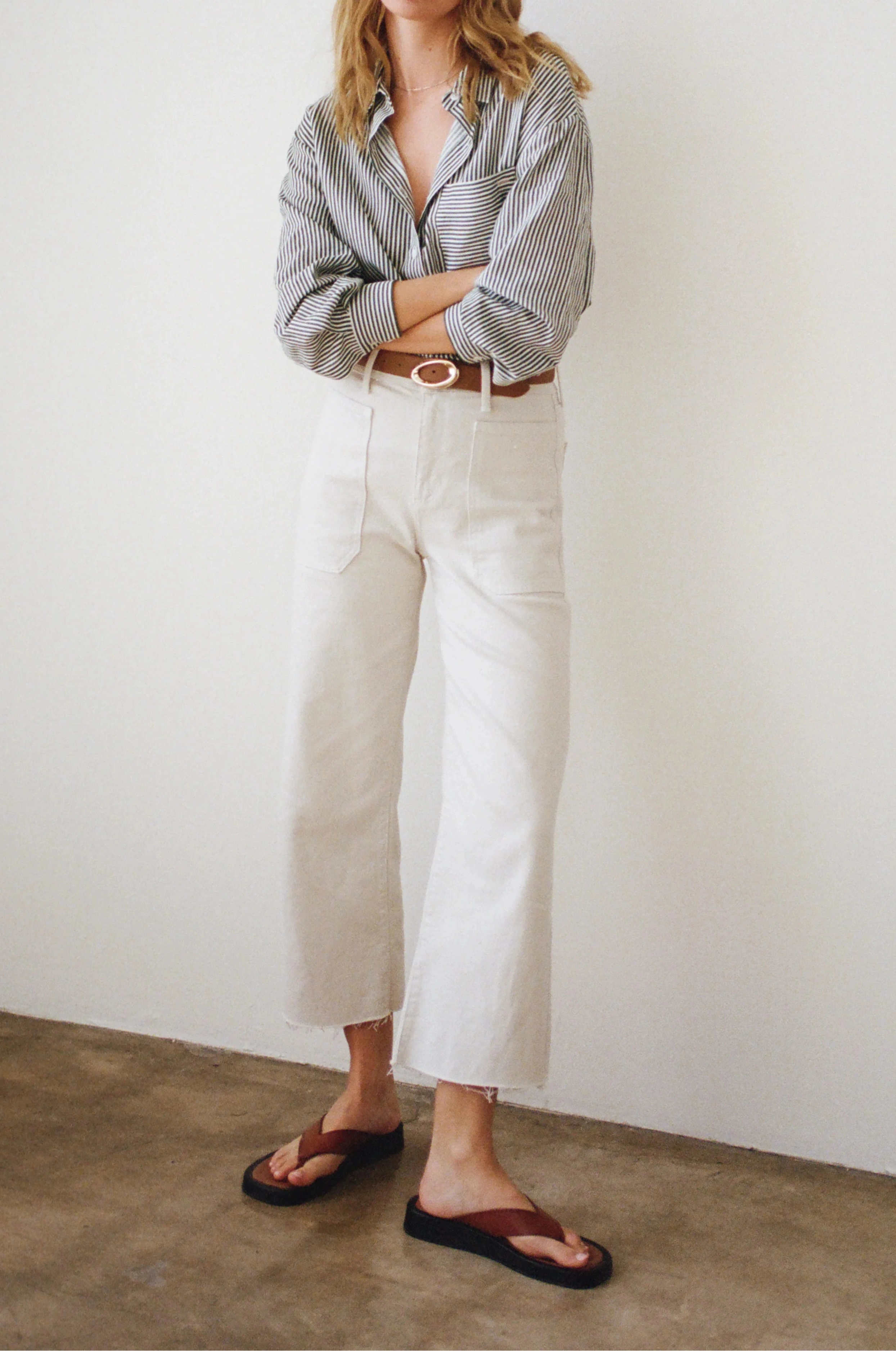 Utility Cargo Pocket Wide Leg Jean in Sea Salt