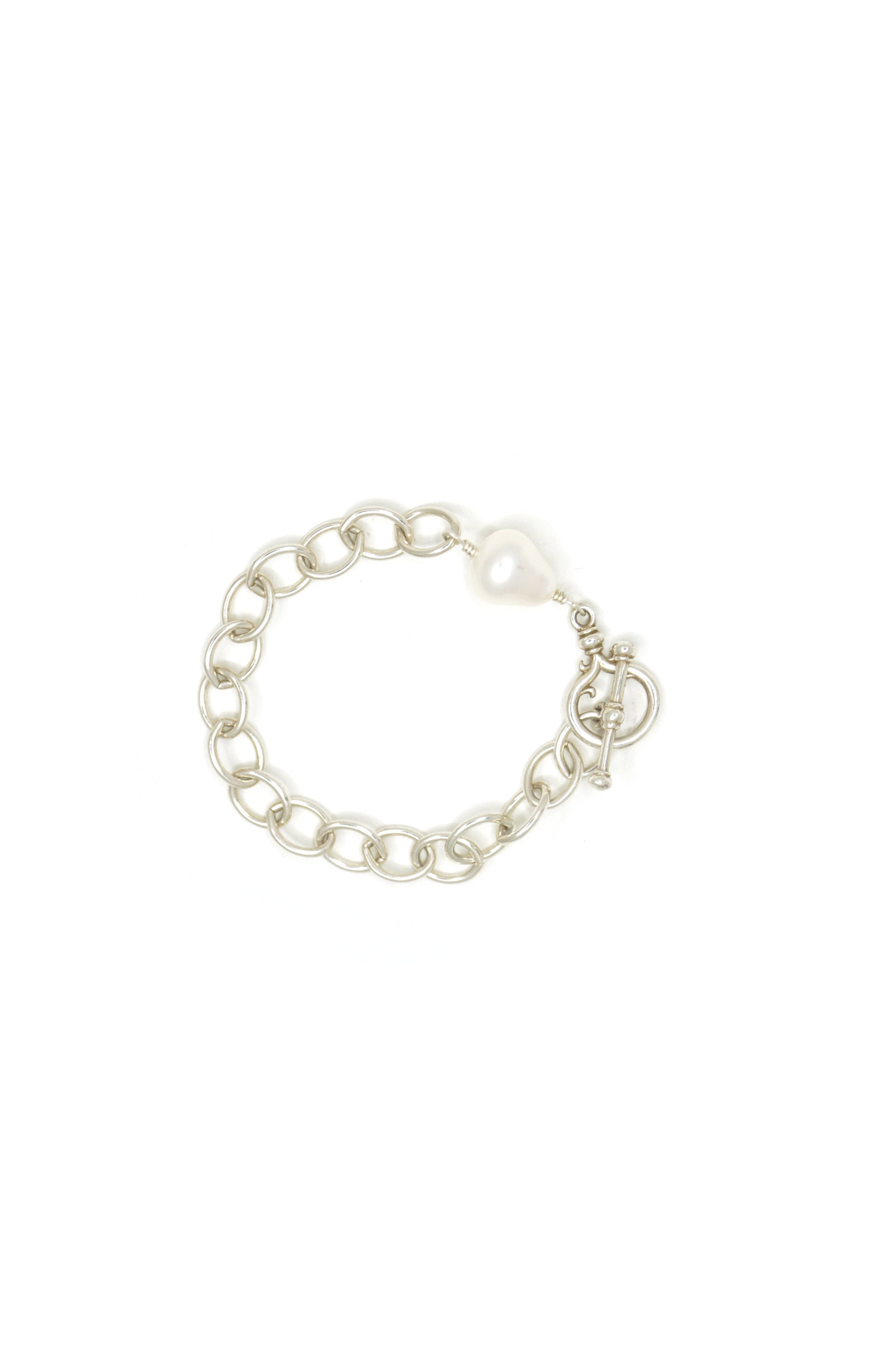 - 8" Classic bracelet in sterling silver featuring one baroque pearl