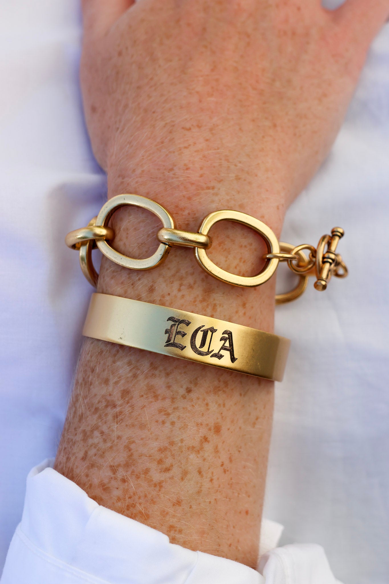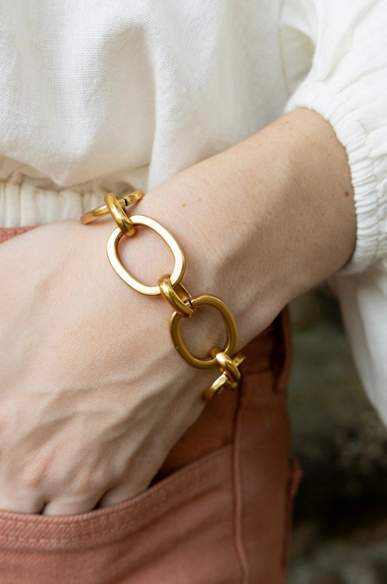 - 8” bracelet featuring vintage chain in our 18k gold plating and our exclusive ExVoto Vintage toggle closure.
