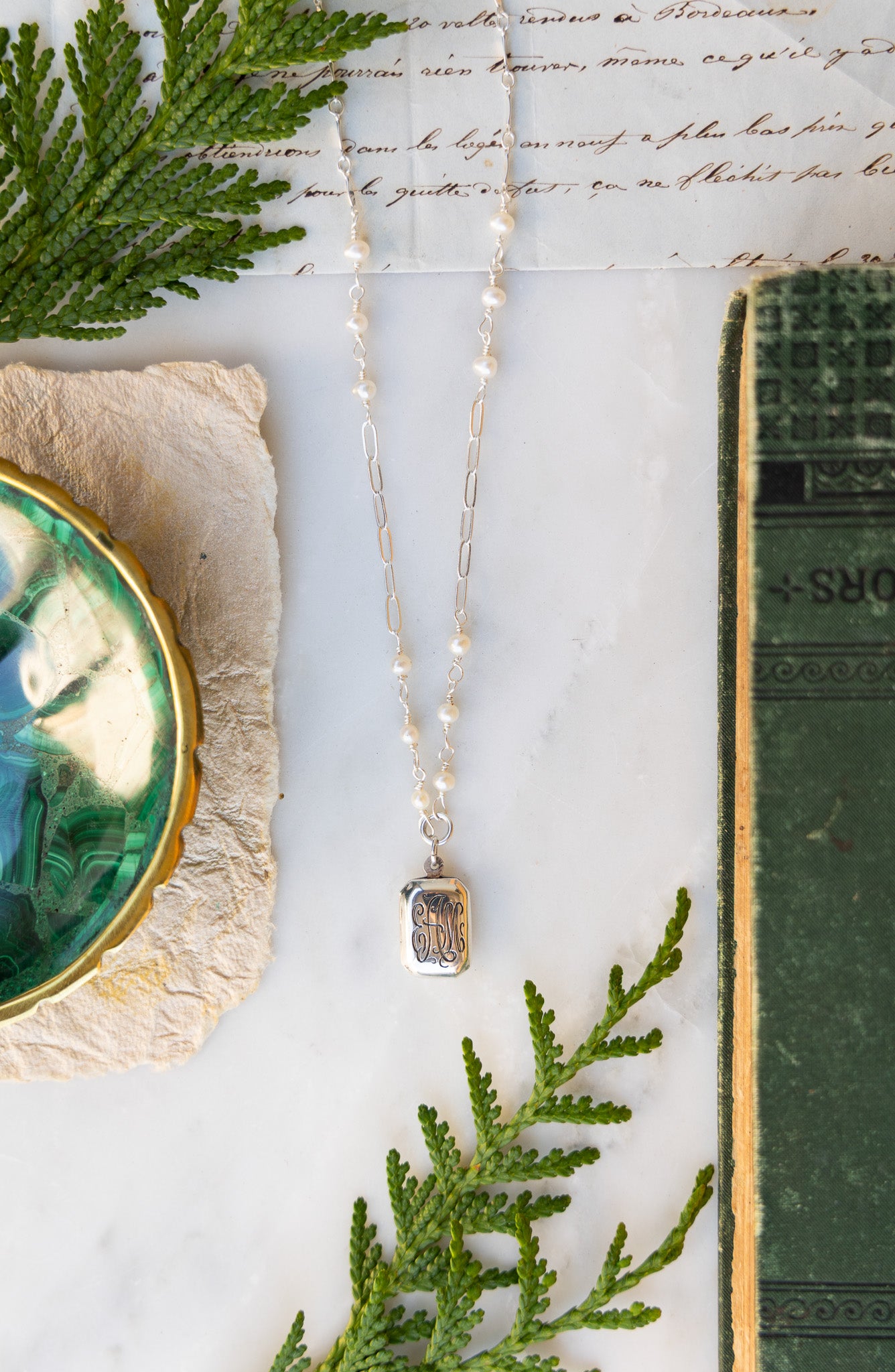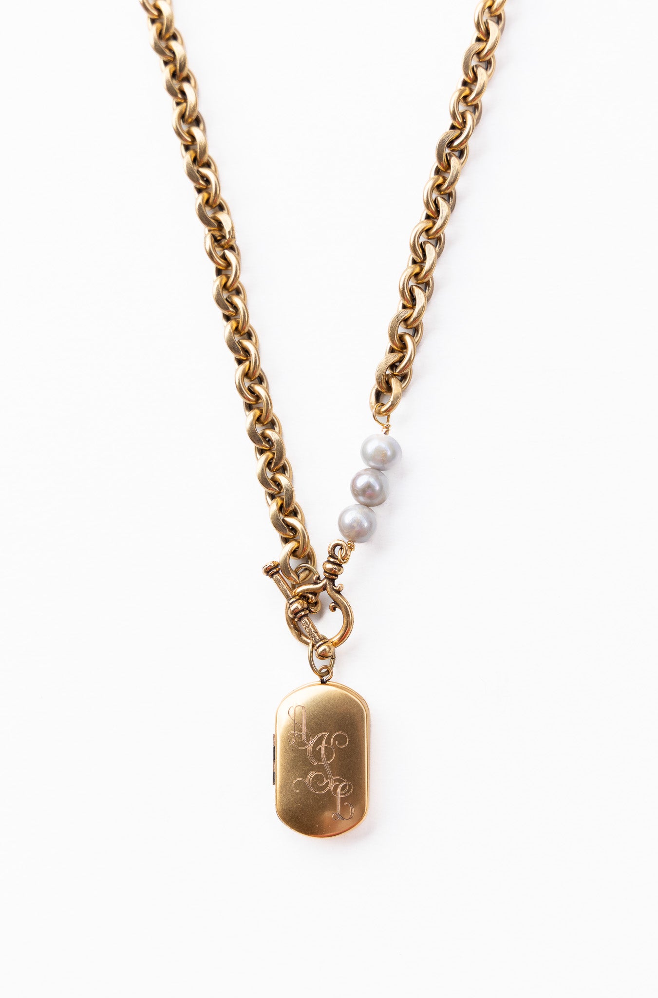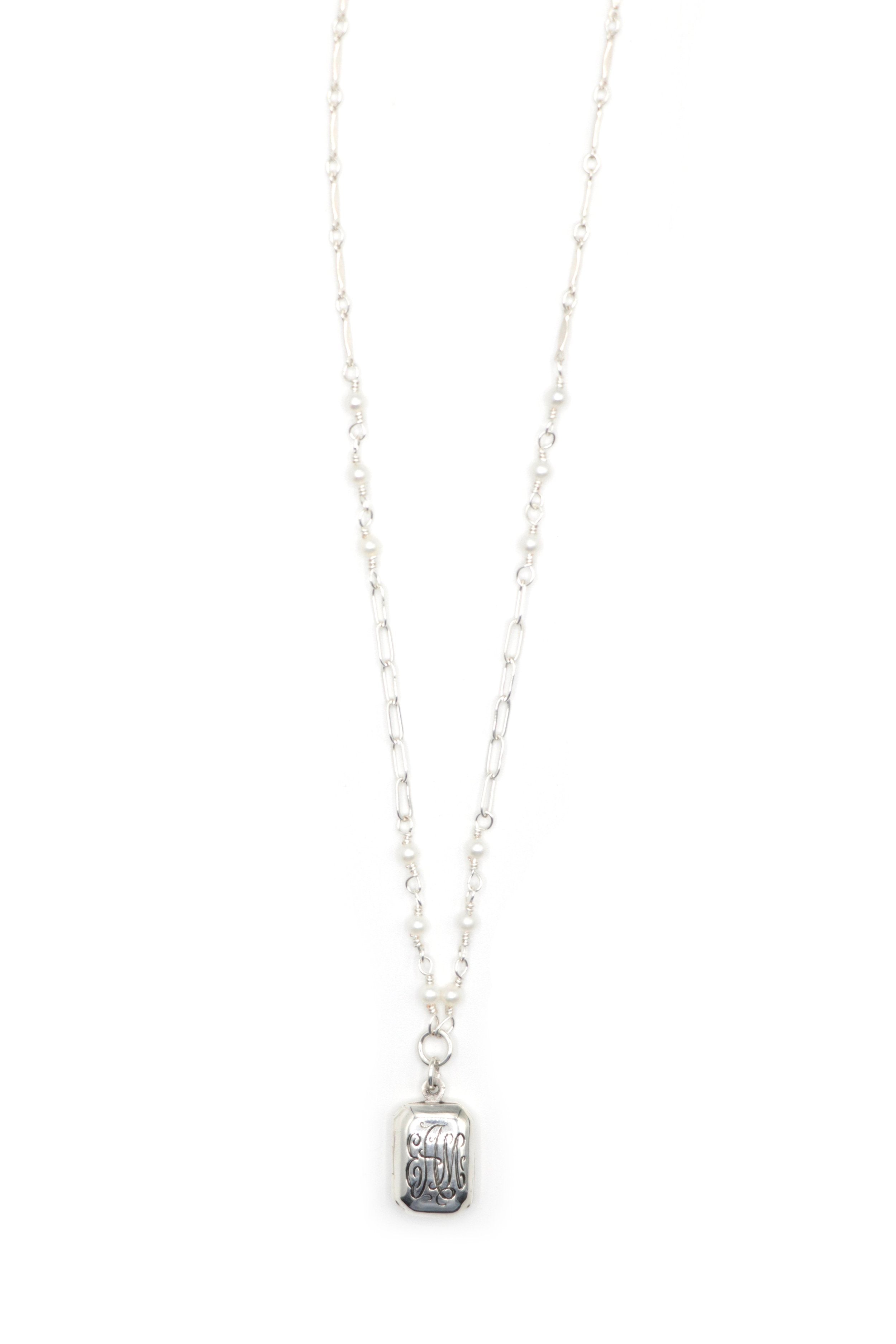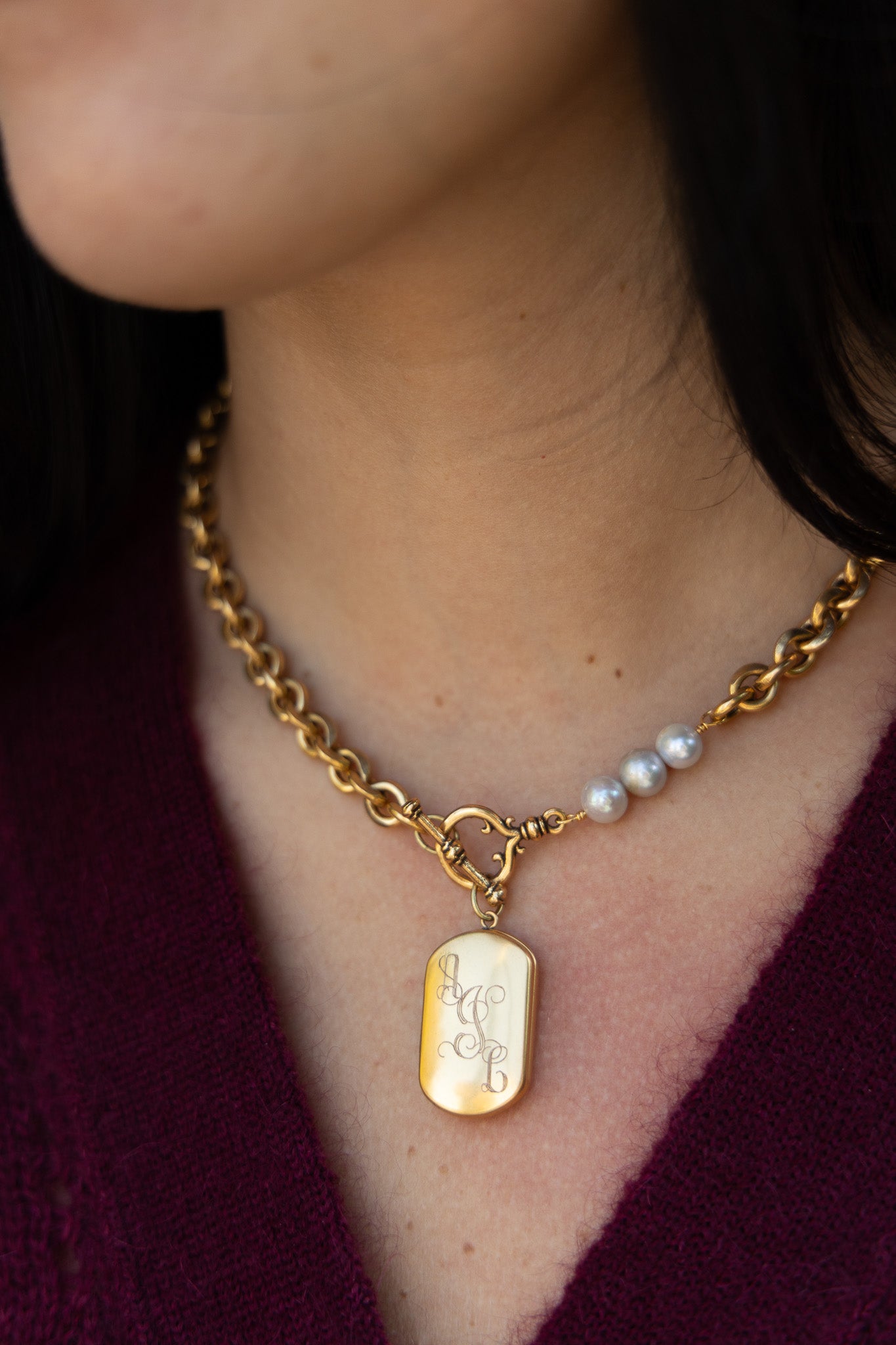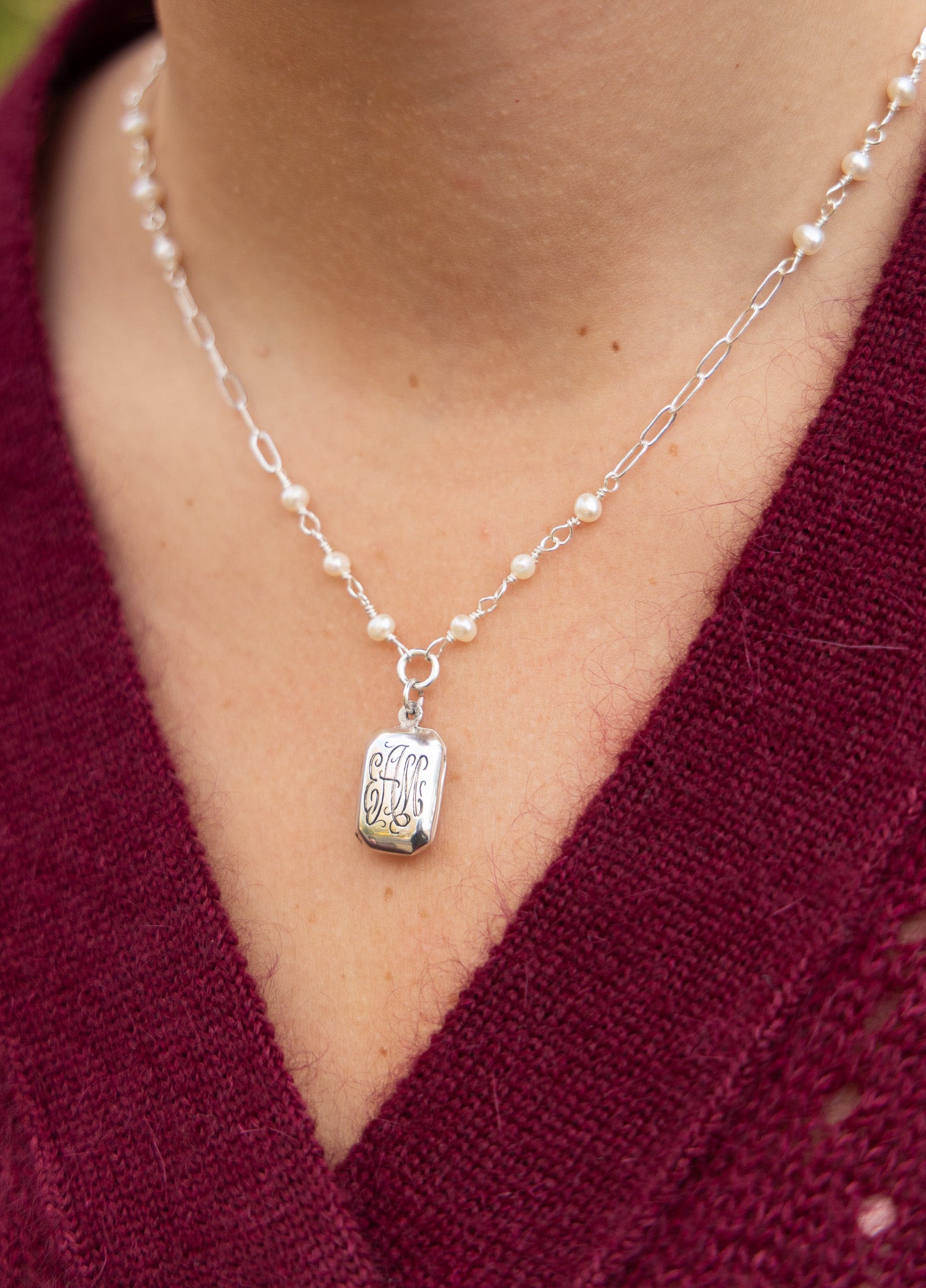 Custom Machine Engraved 18" Katherine Necklace with Natural Pearl and Frances Locket