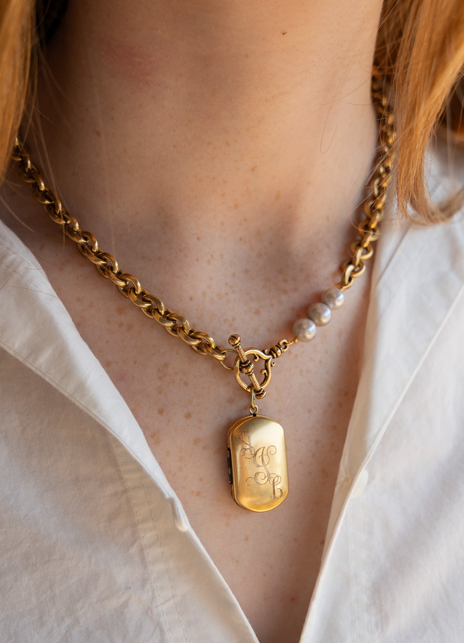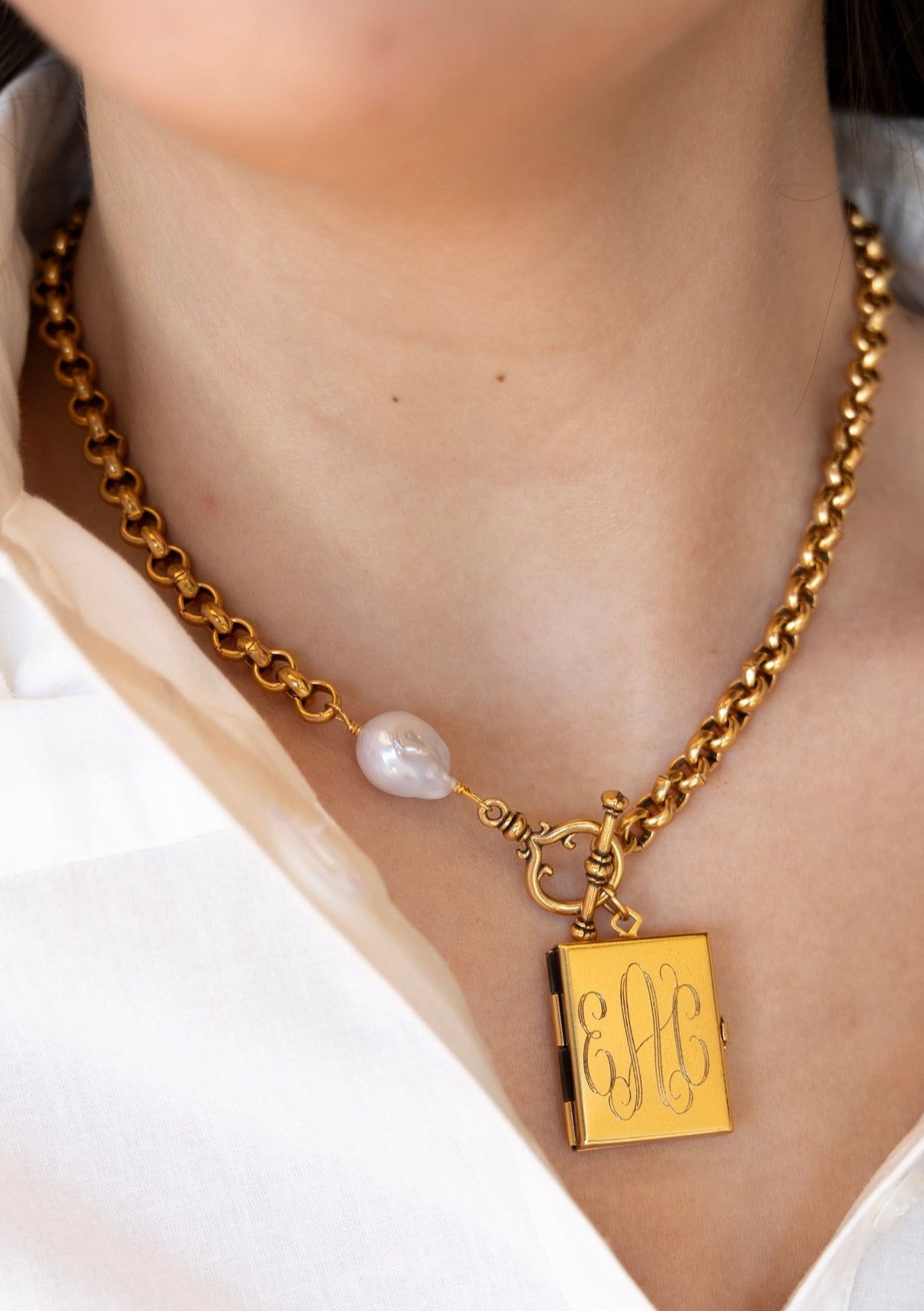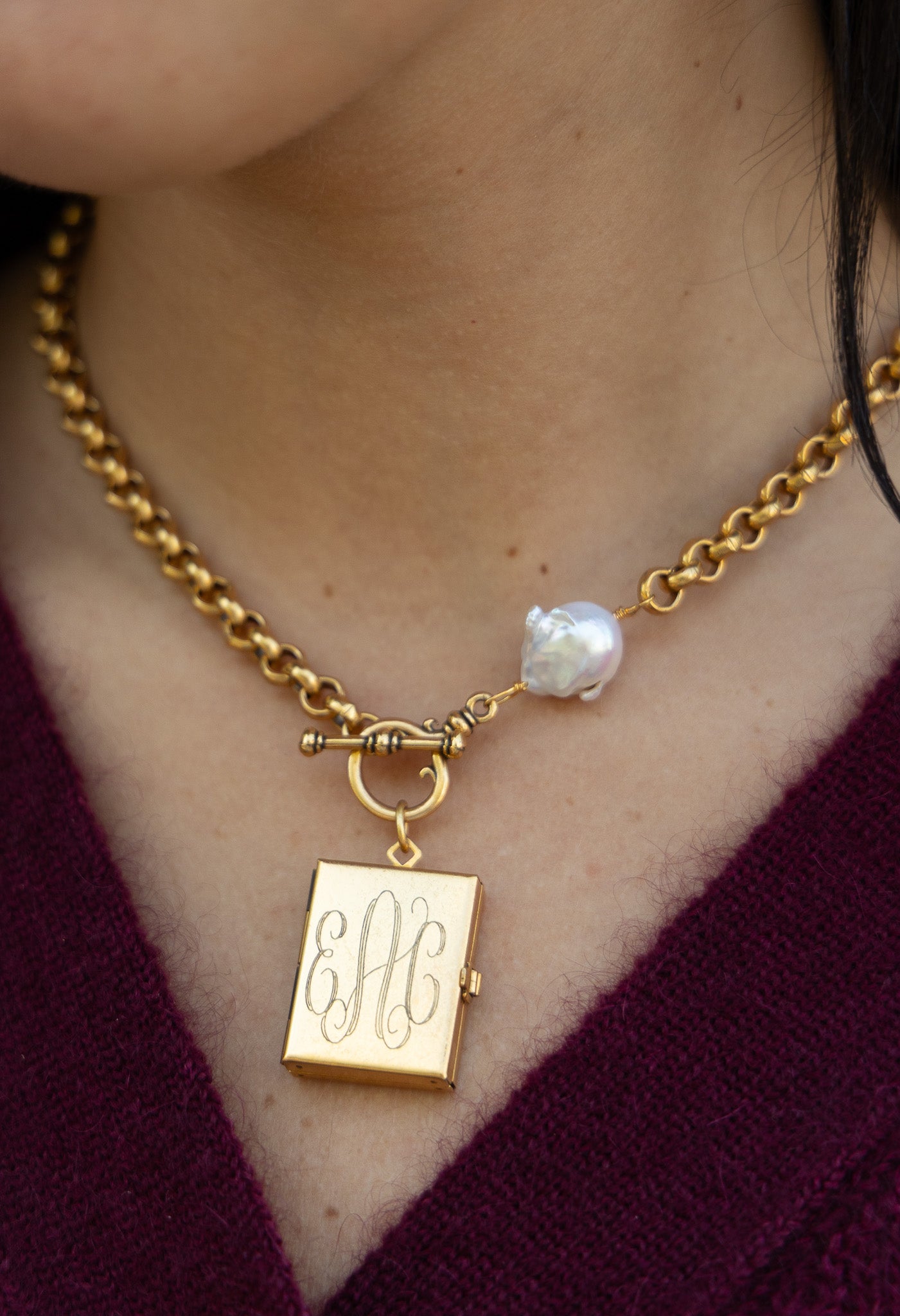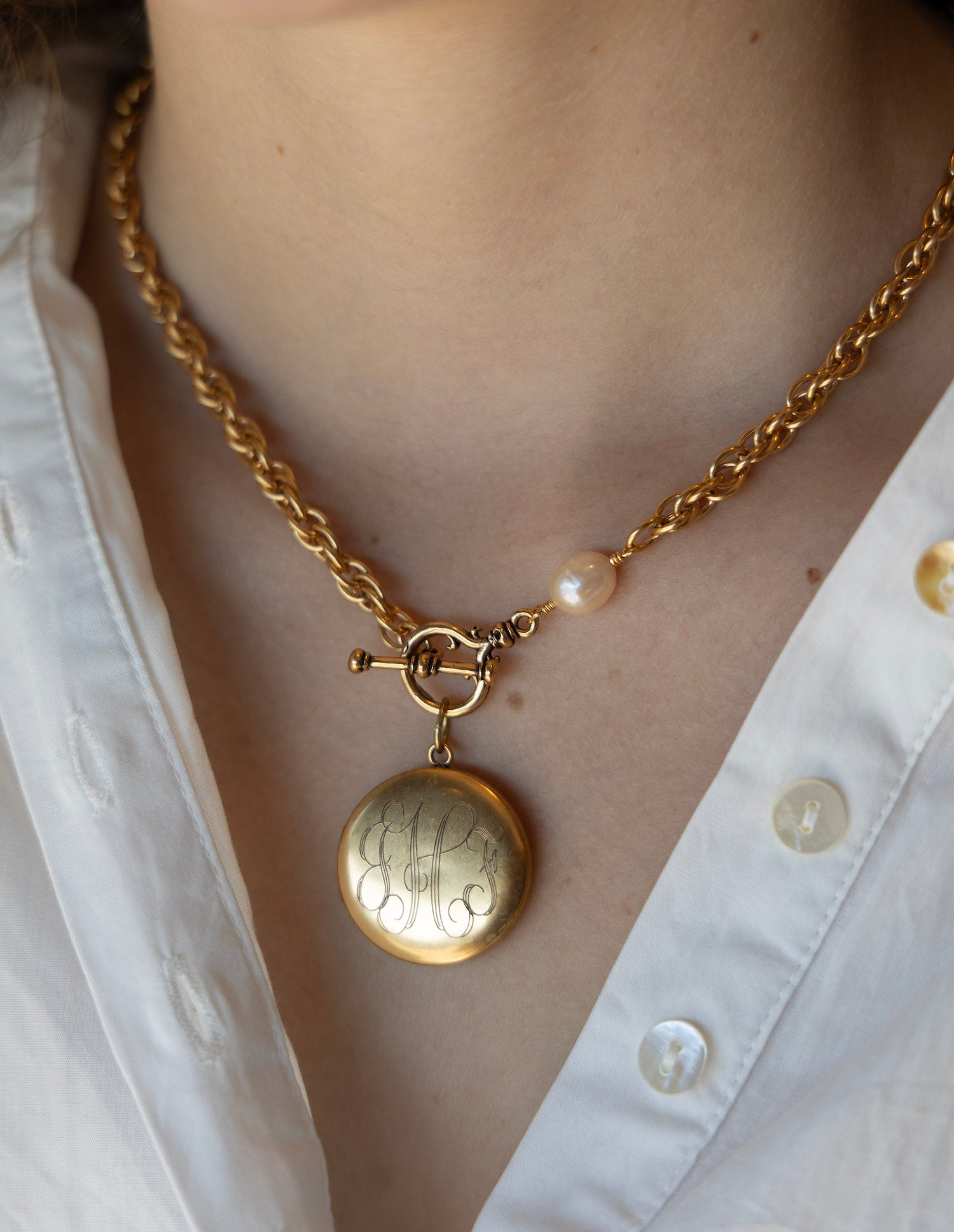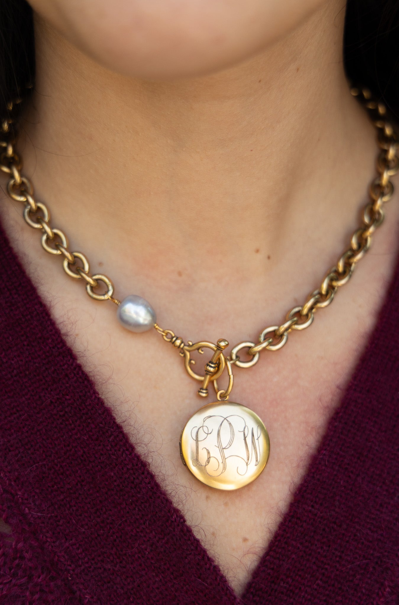 Custom Machine Engraved 18" Katherine Necklace with Natural Pearl and Frances Locket