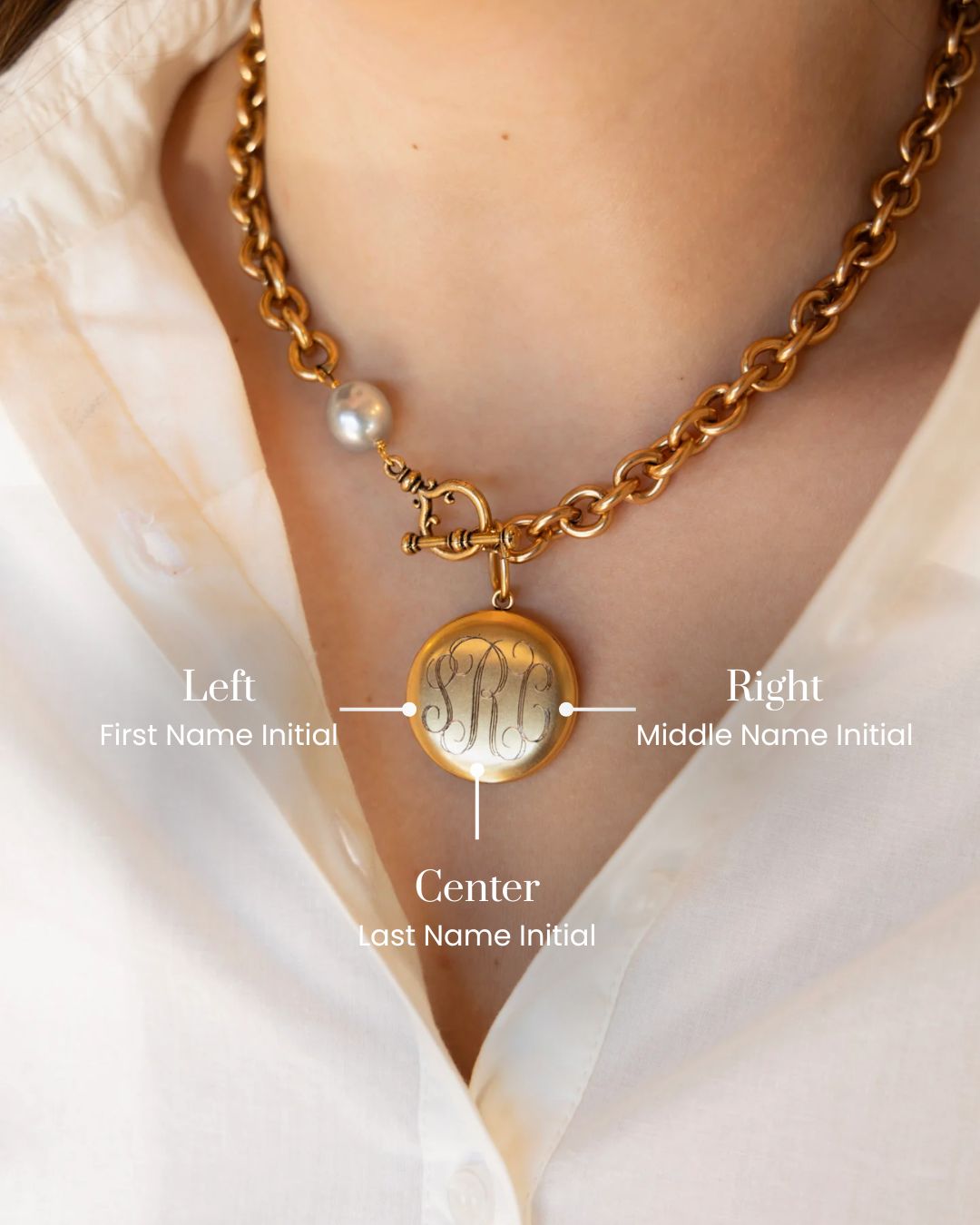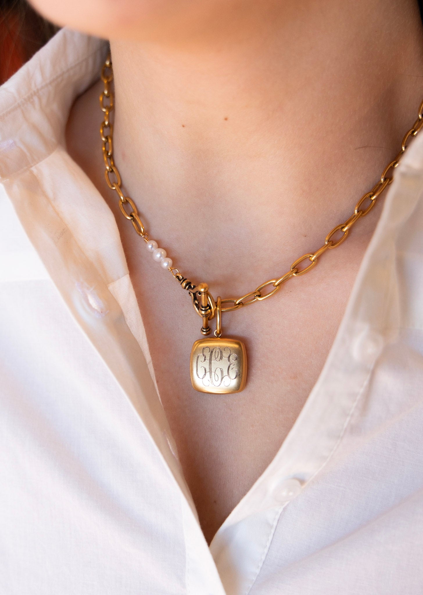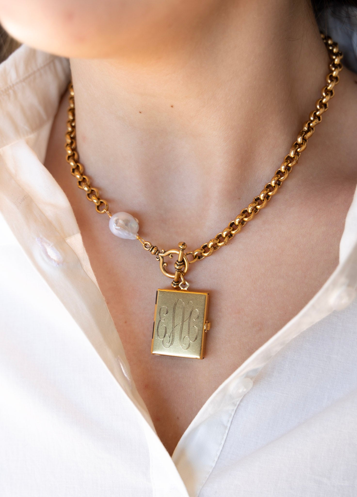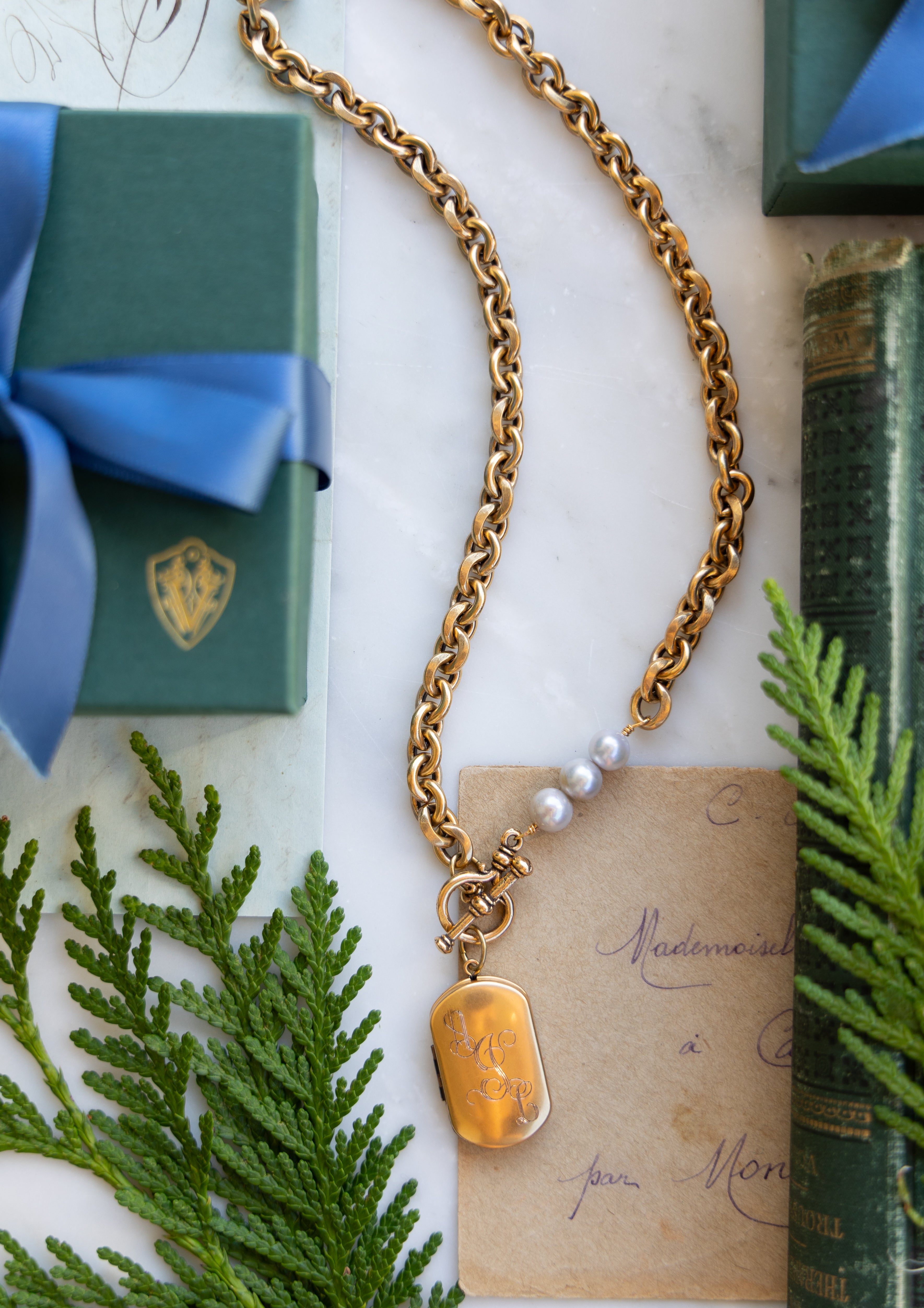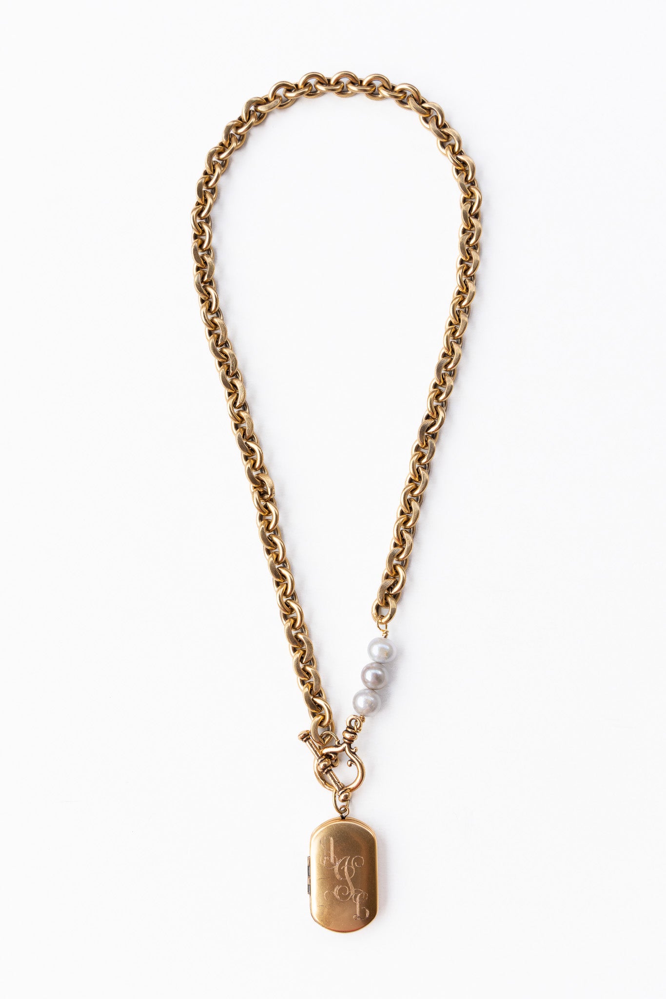 Custom Machine Engraved 18" Katherine Necklace with Natural Pearl and Frances Locket
