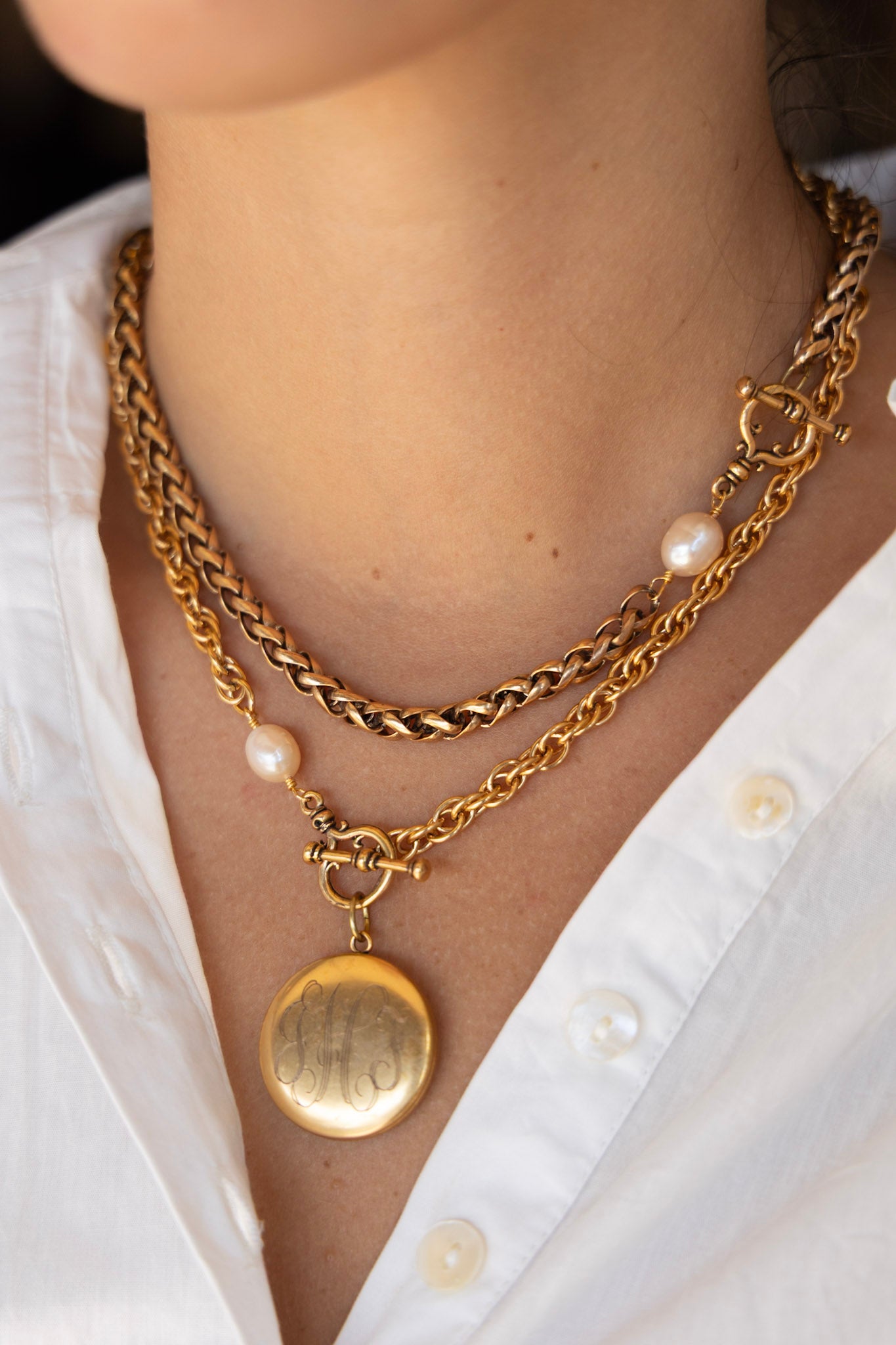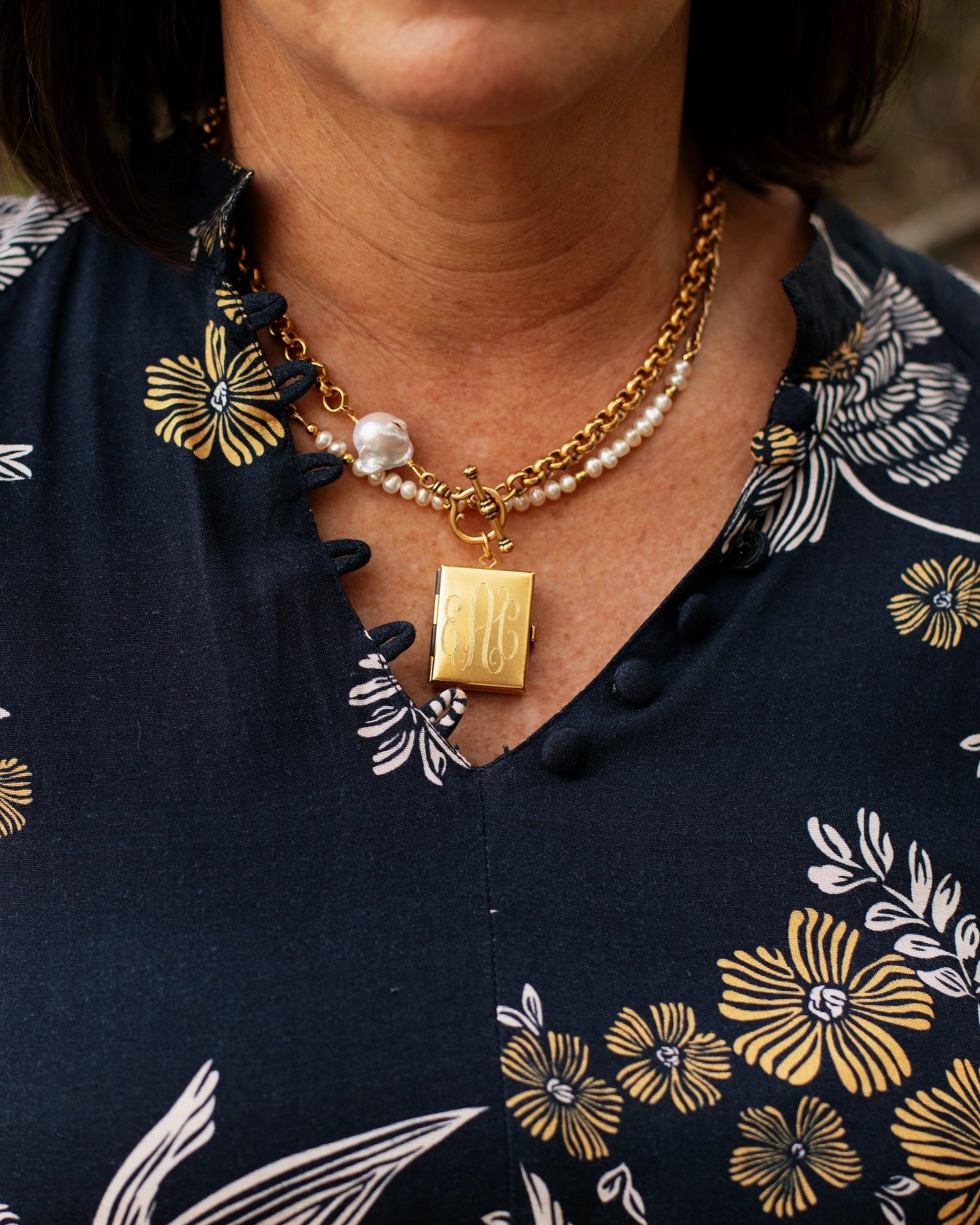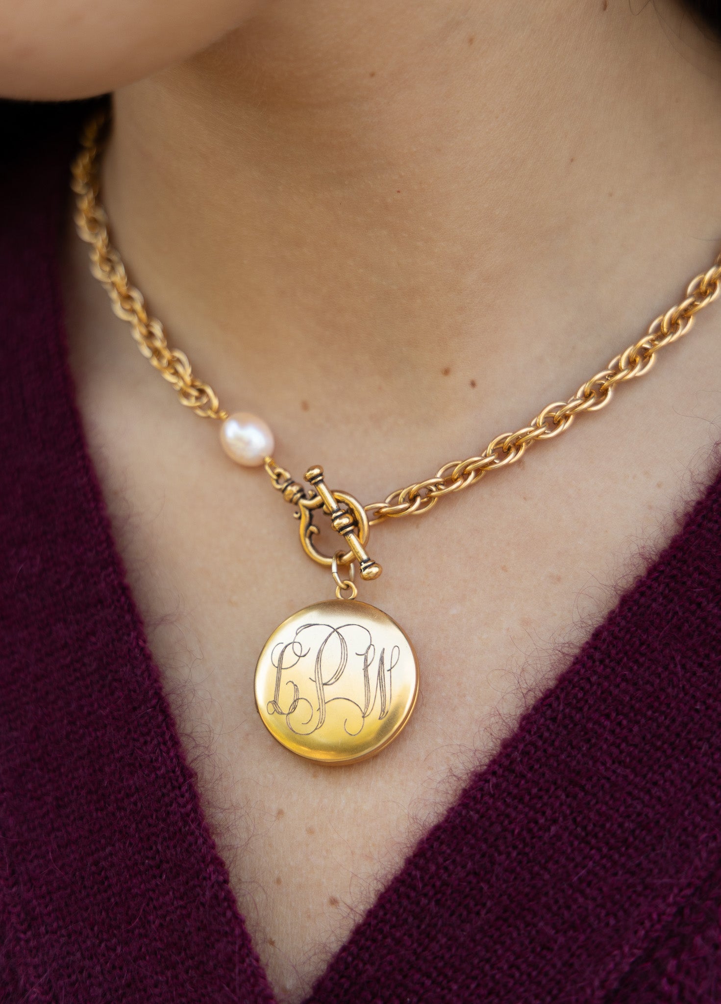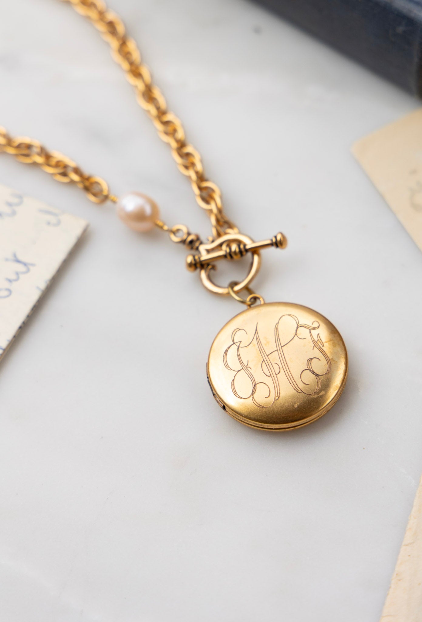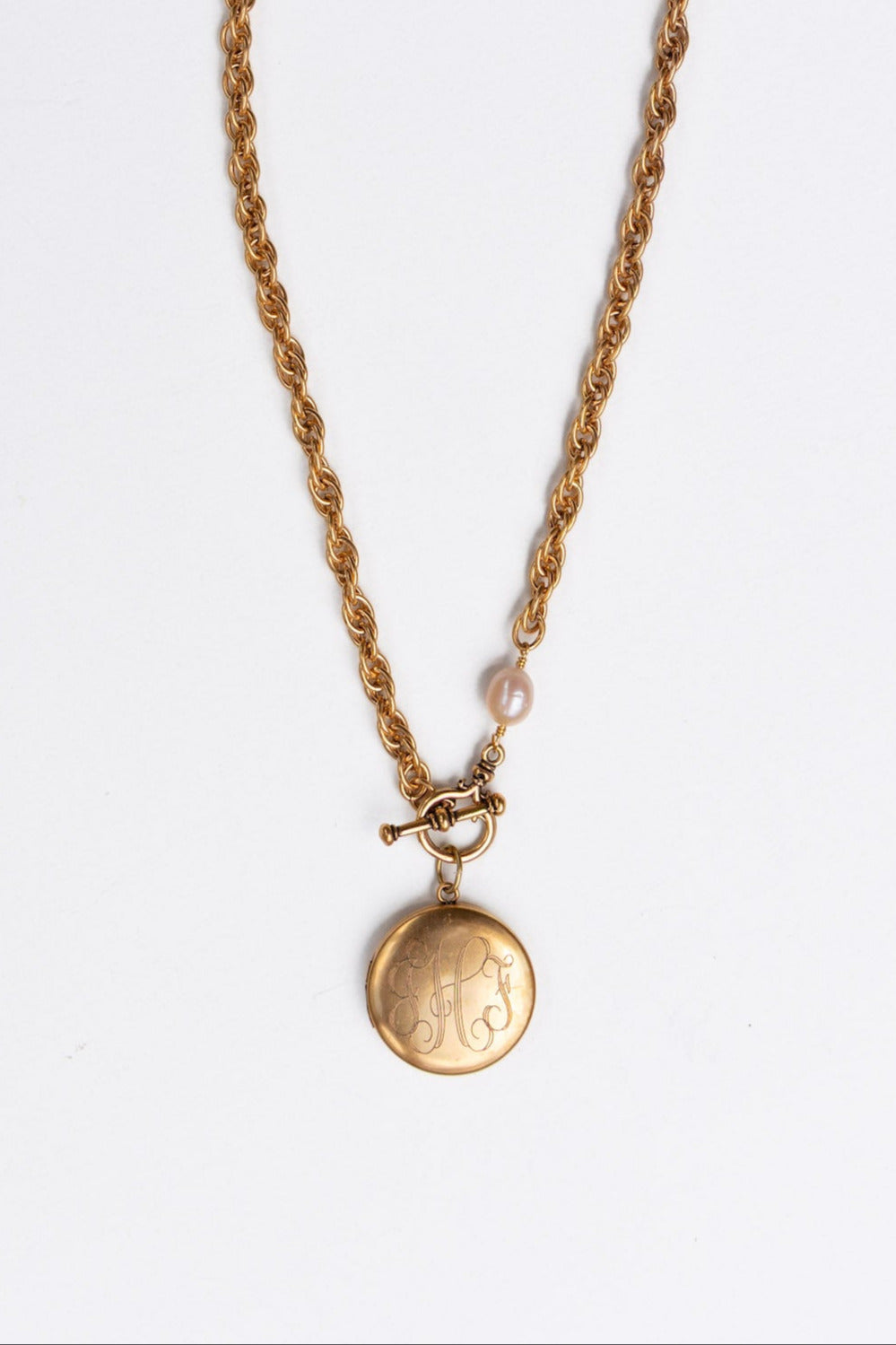 Custom Machine Engraved 18" Katherine Necklace with Natural Pearl and Frances Locket