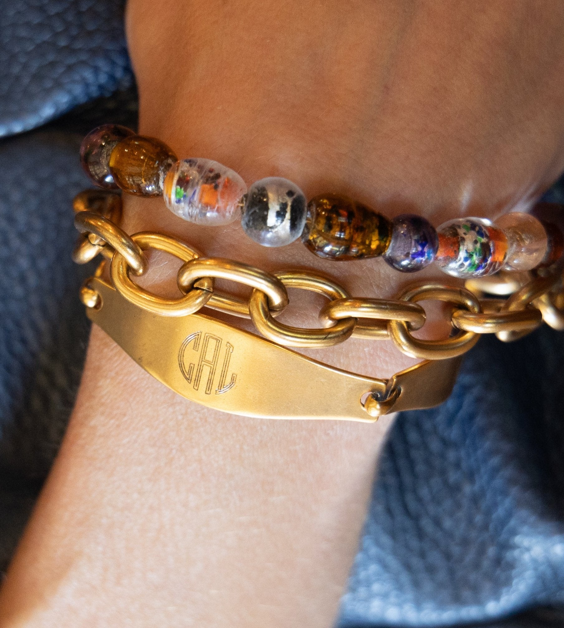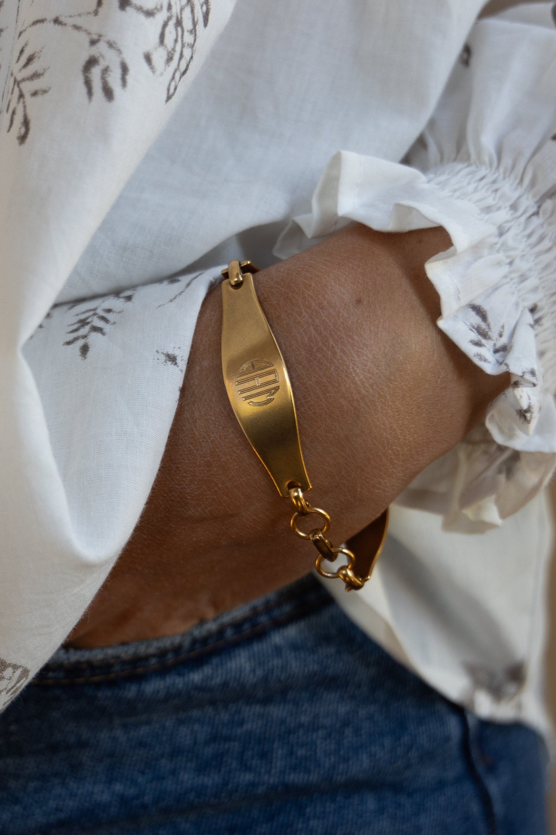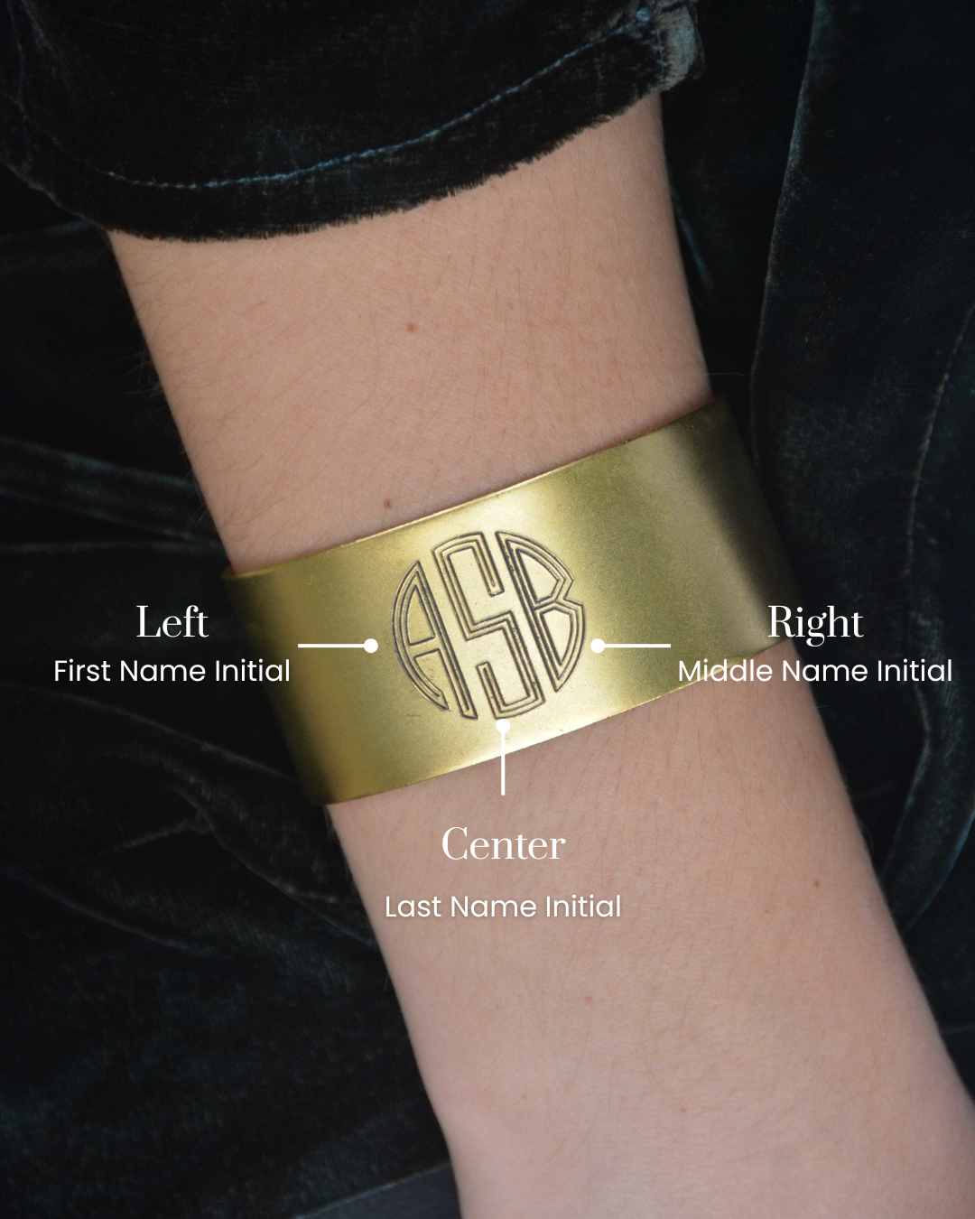 Custom Machine Engraved Wide Monogram Cuff Bracelet