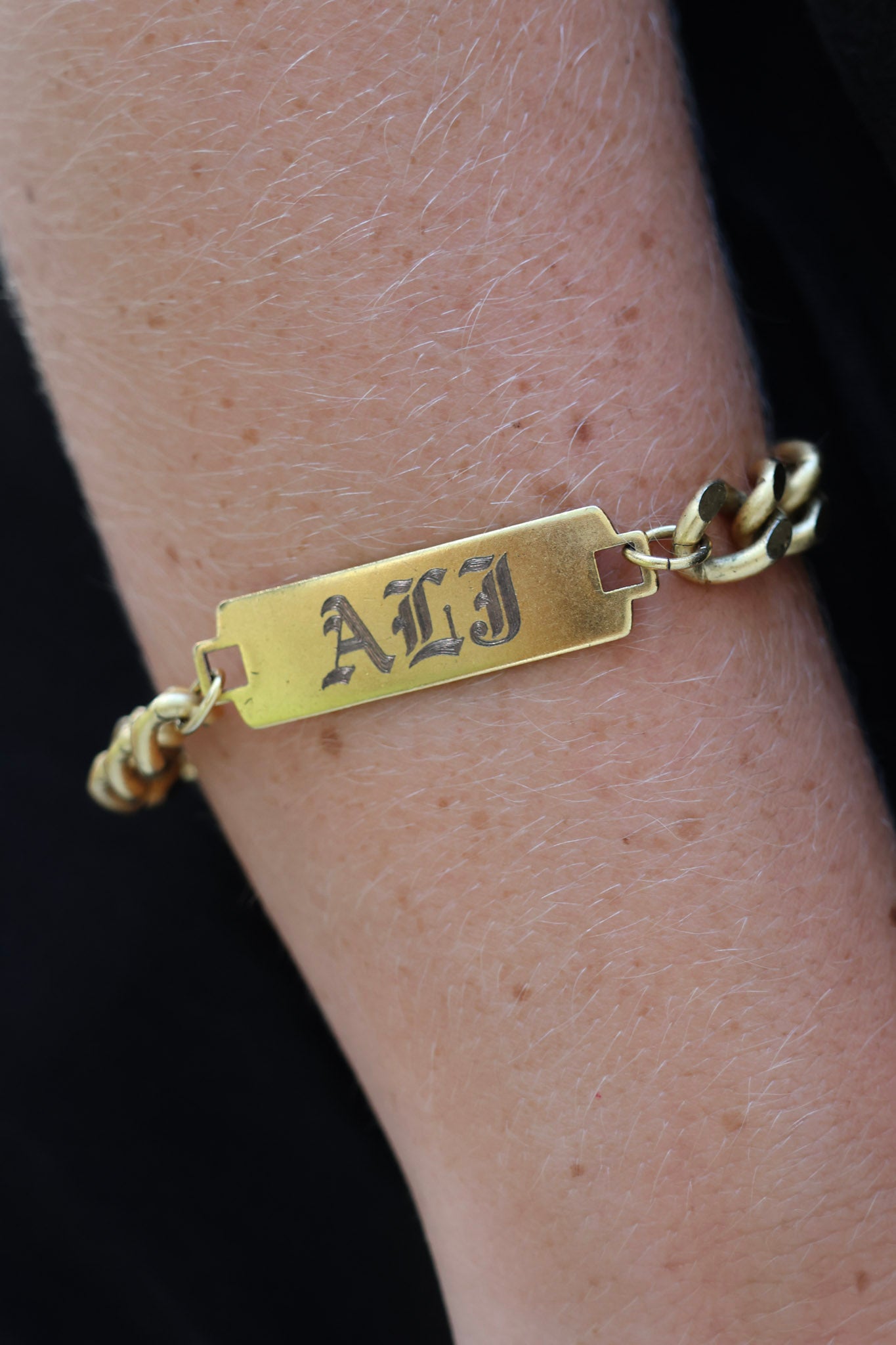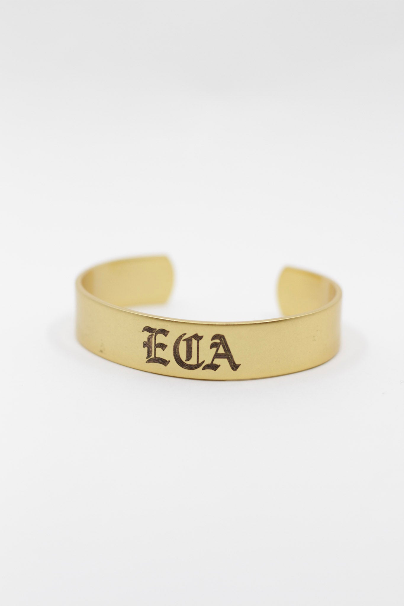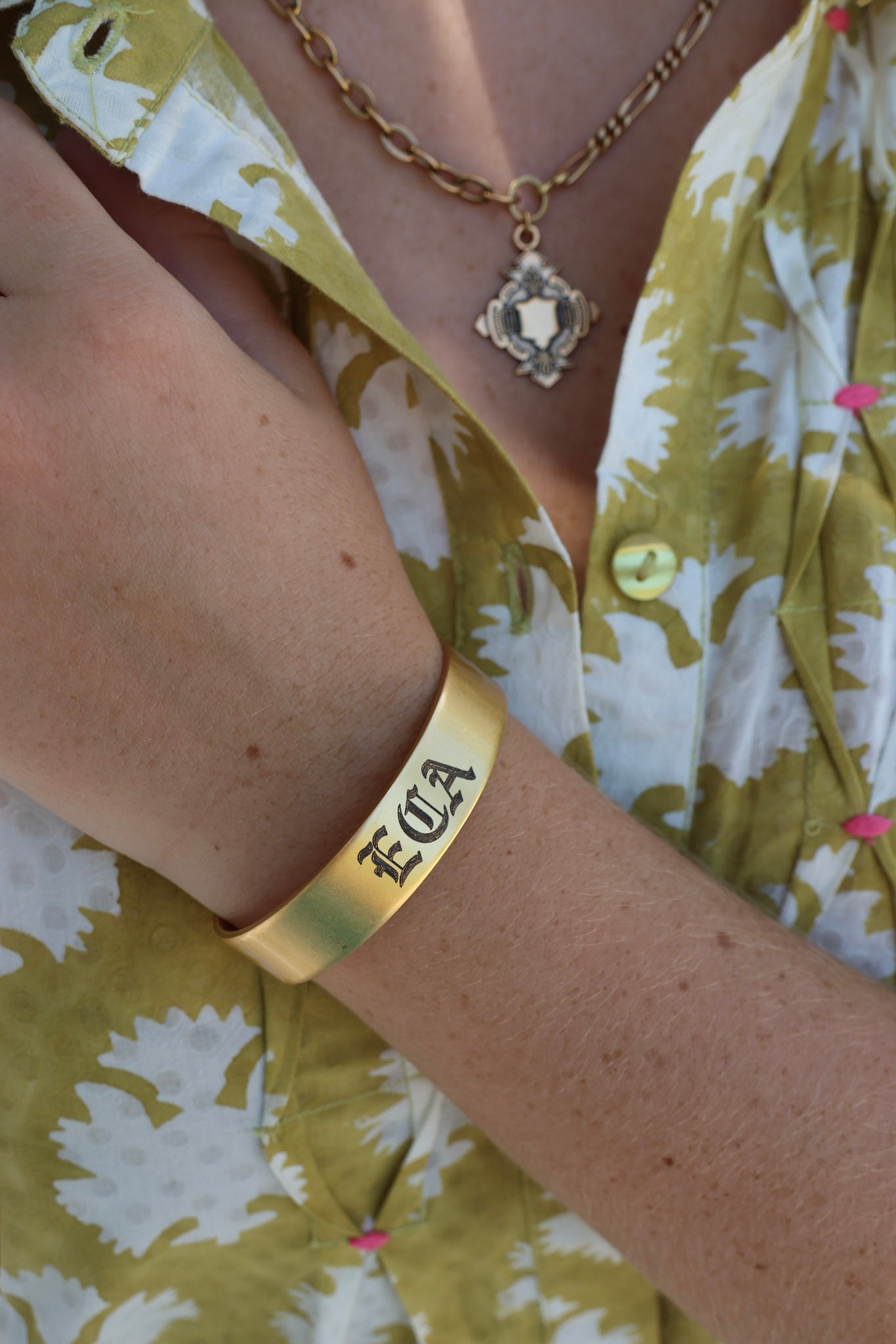 Custom Machine Engraved Initial Cuff Bracelet in Gothic Font