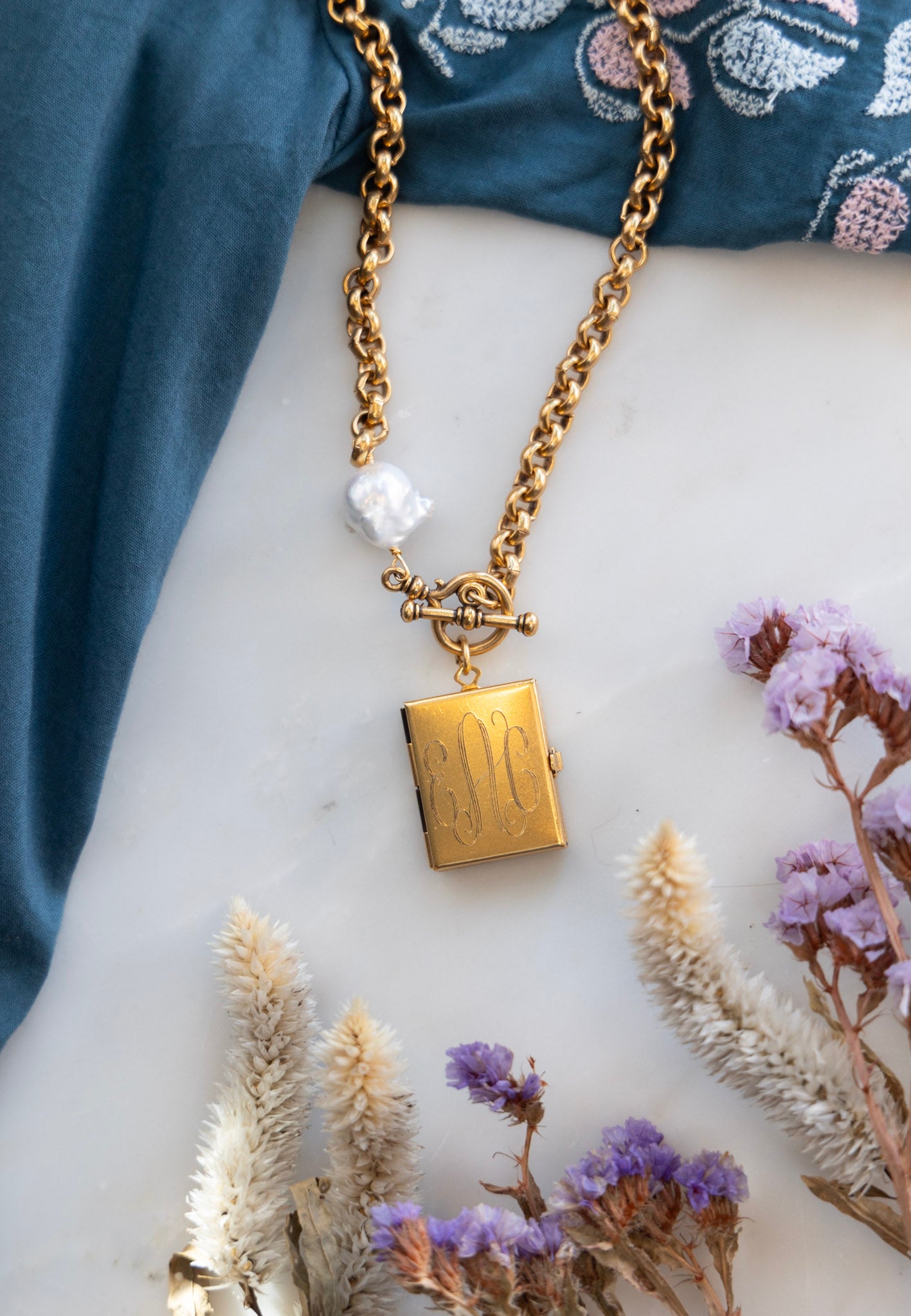 Custom Machine Engraved 18" Liz Necklace with Book Locket