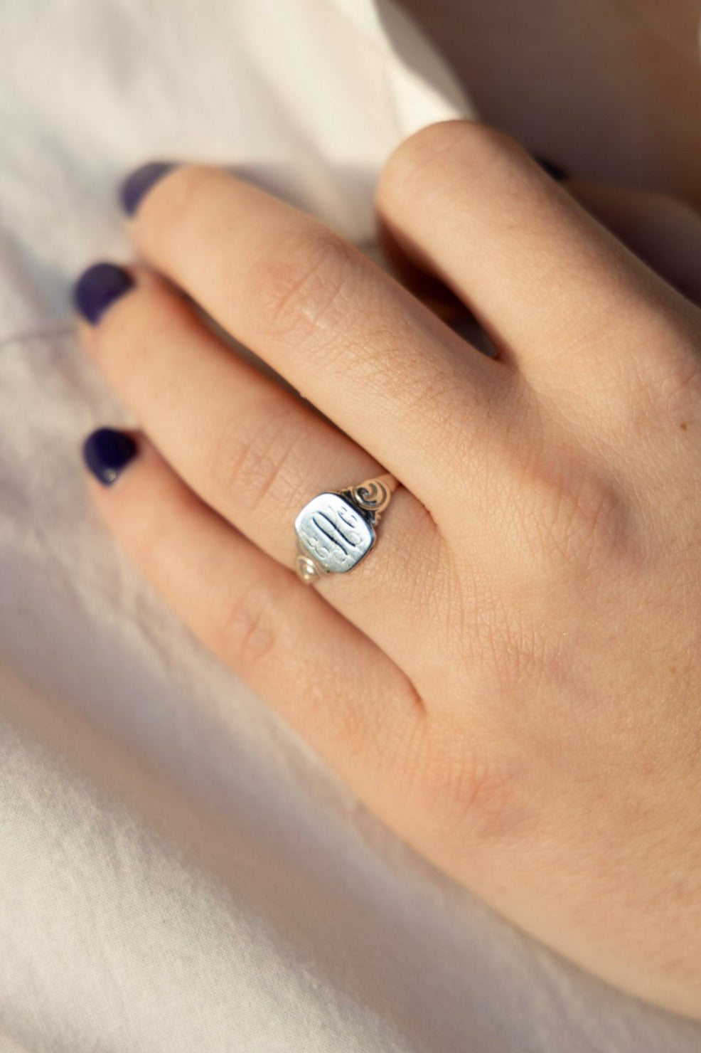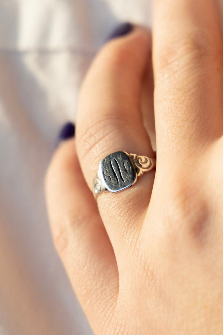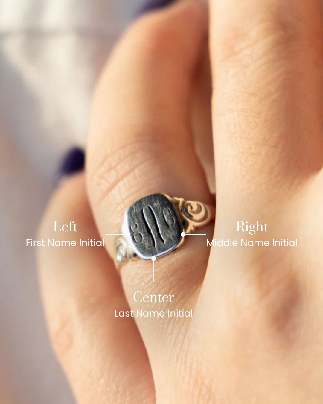 Custom Hand Engraved Hallie Ring in Sterling Silver