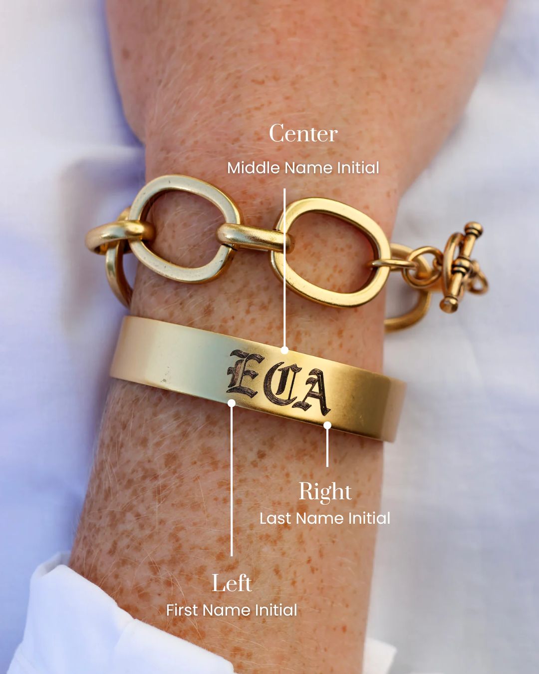 Custom Machine Engraved Classic Initial Cuff Bracelet