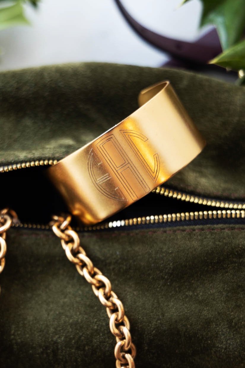 Custom Hand Engraved Wide Monogram Cuff Bracelet