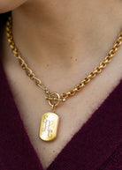 - 18" necklace featuring plated 18k gold chain with protective matte finish.